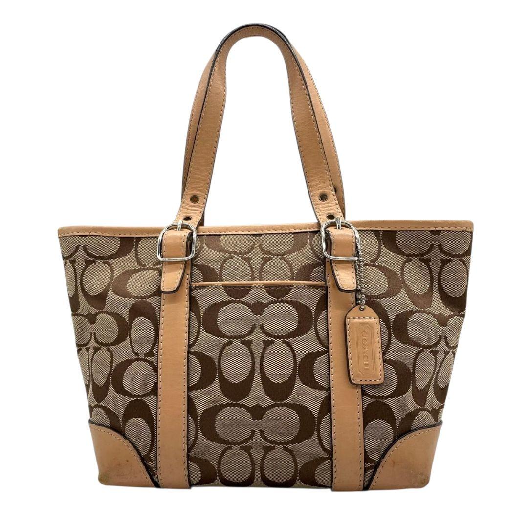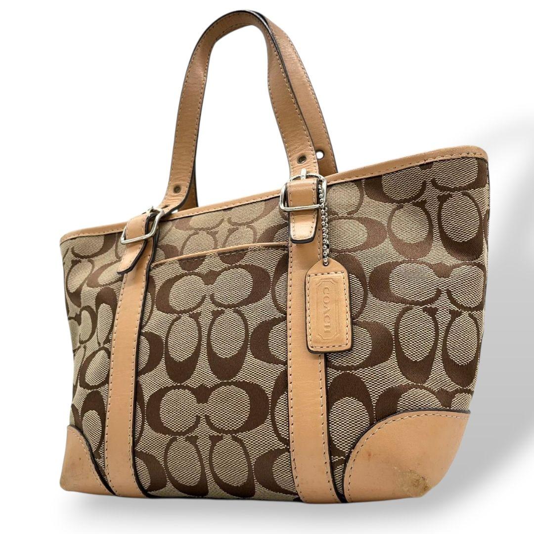 コーチ ハンドバッグ 茶 シグネチャー s6 キャンバス レザー 本革 トートバッグ ブラウン シルバー金具 ロゴタグ COACH 6043