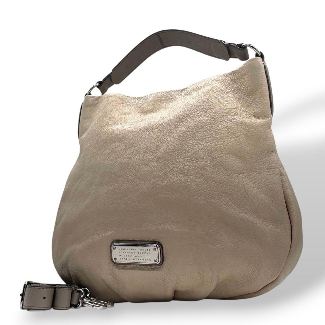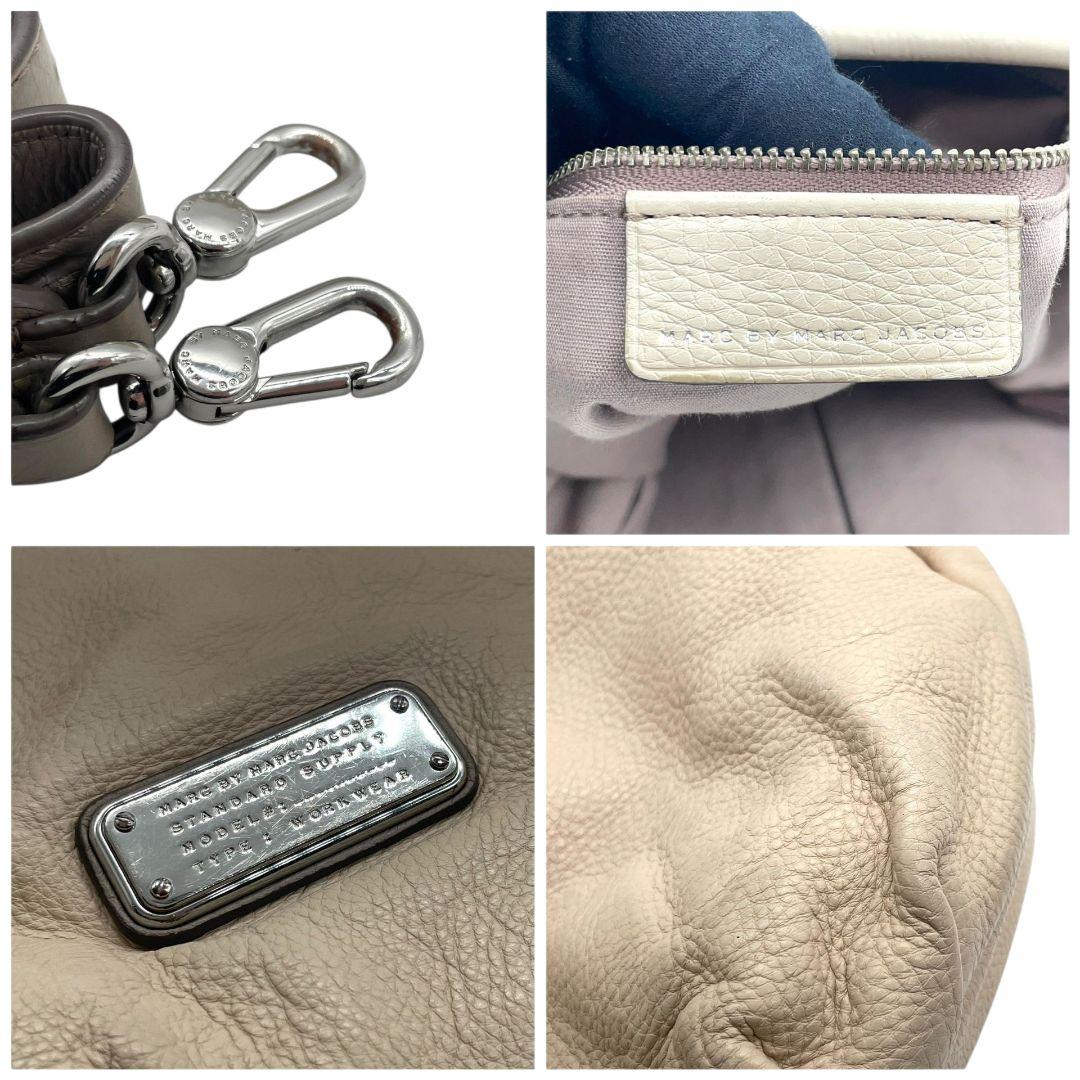 マークバイマークジェイコブス ショルダーバッグ アイボリー ホーボー 2way 斜め掛け可 ハンドバッグ トートバッグ レザー 本革 ロゴプレート シルバー金具 おしゃれ 通勤 通学