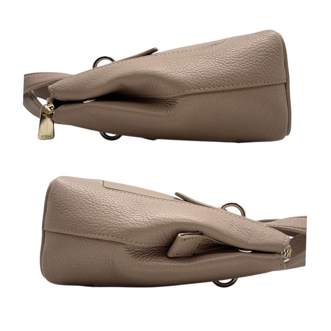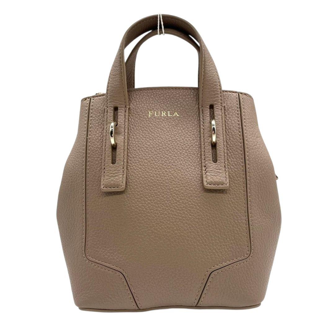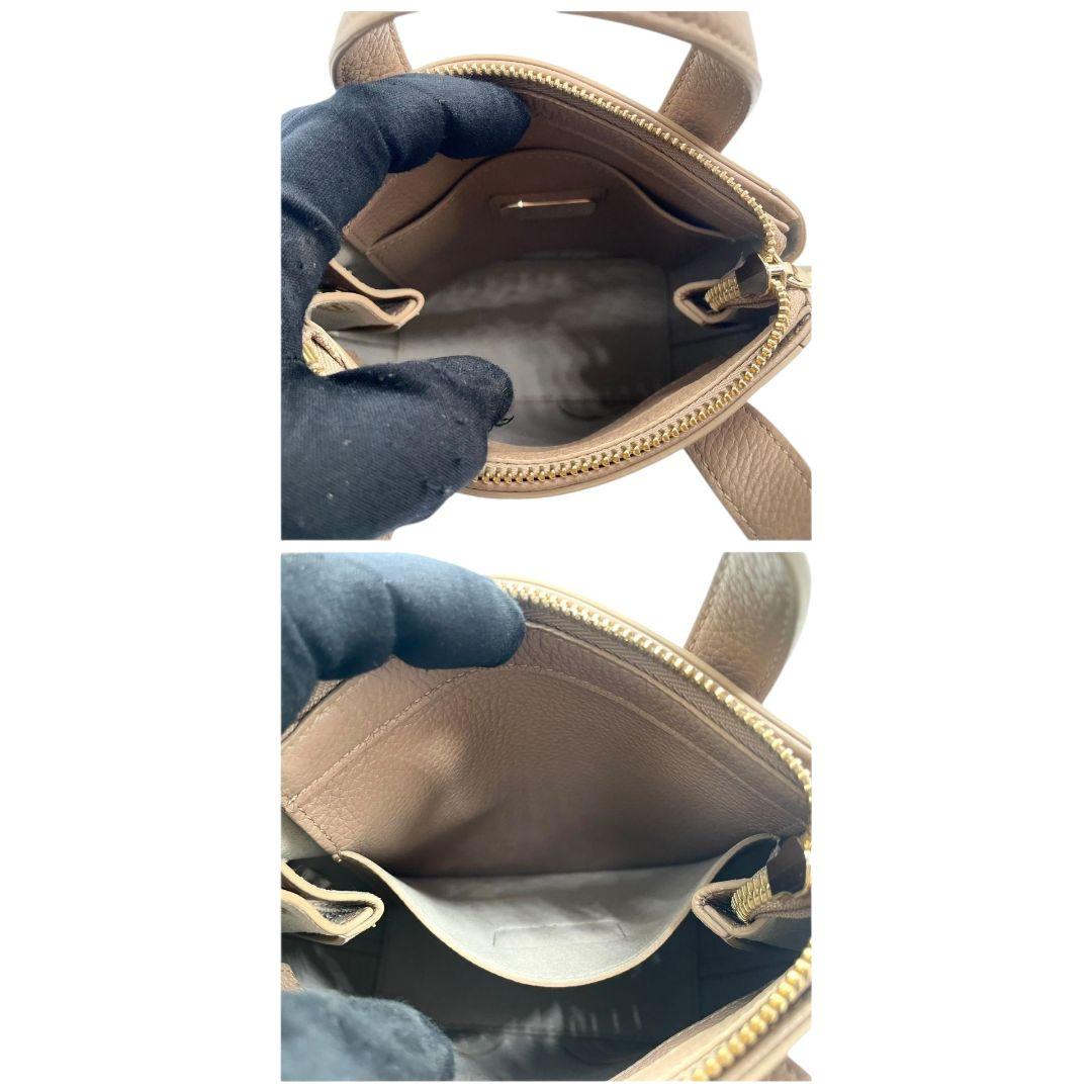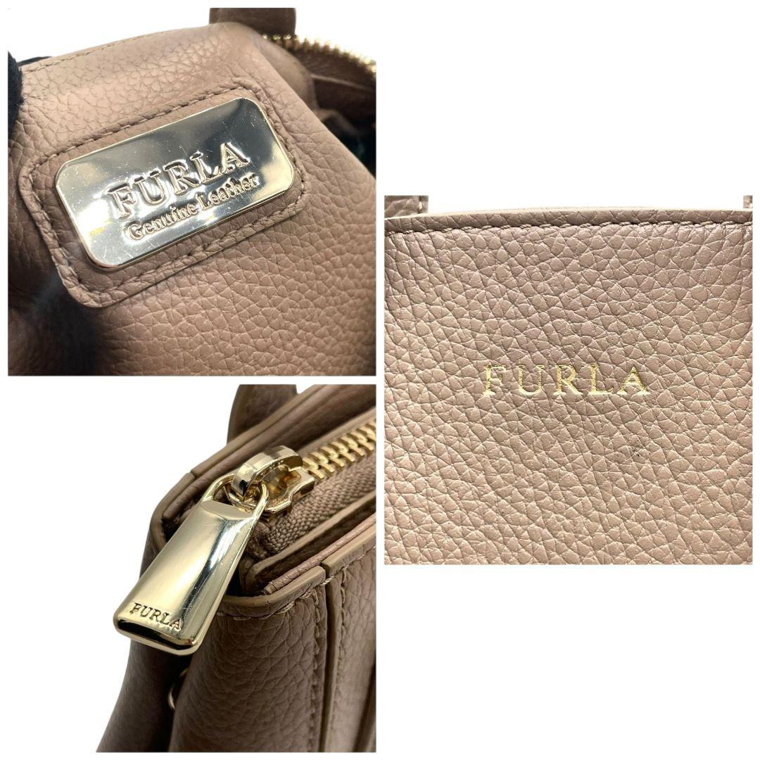 フルラ 2way レザー ハンドバッグ グレージュ ショルダーバッグ トートバッグ 斜め掛け可 ゴールド金具 ロゴプレート 本革
