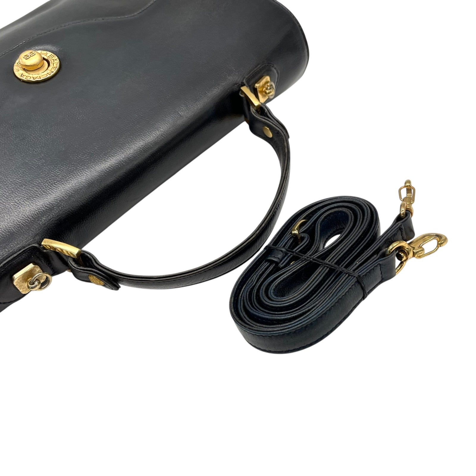 BALENCIAGA バレンシアガ ハンドバッグ ショルダー 2WAY レザー 黒 ブラック ビジネスバッグ ゴールド金具 ヴィンテージ ブリーフケース C