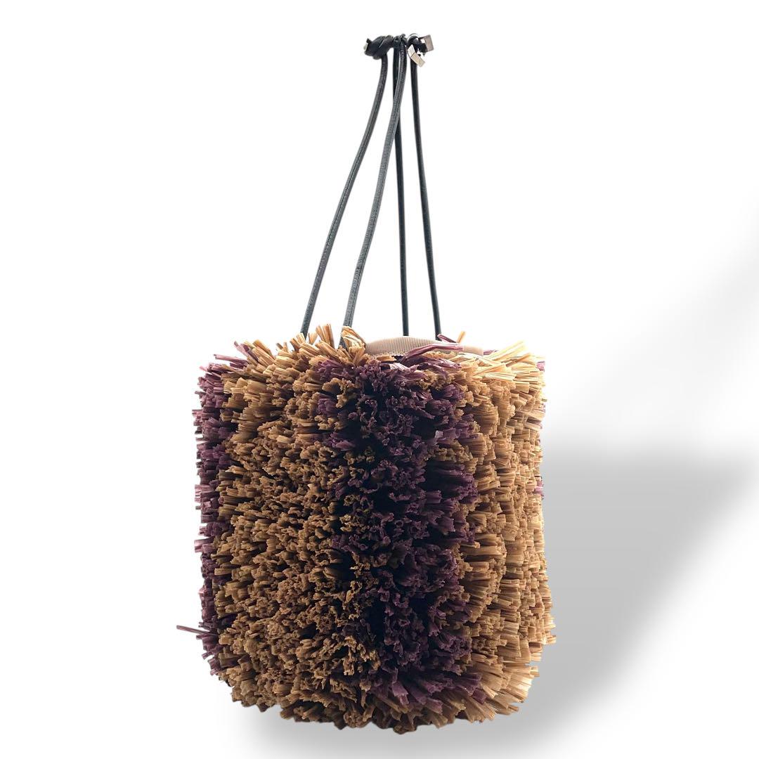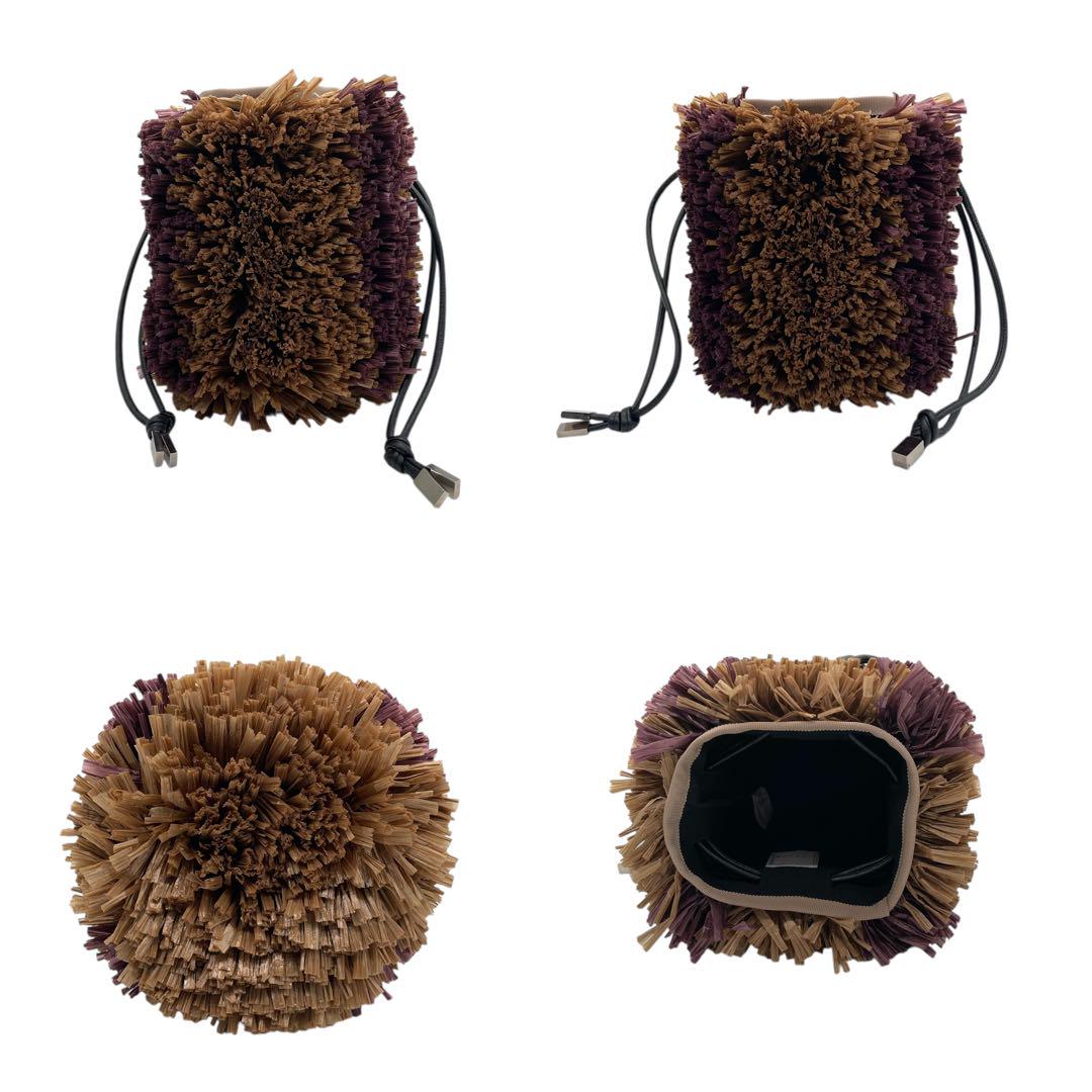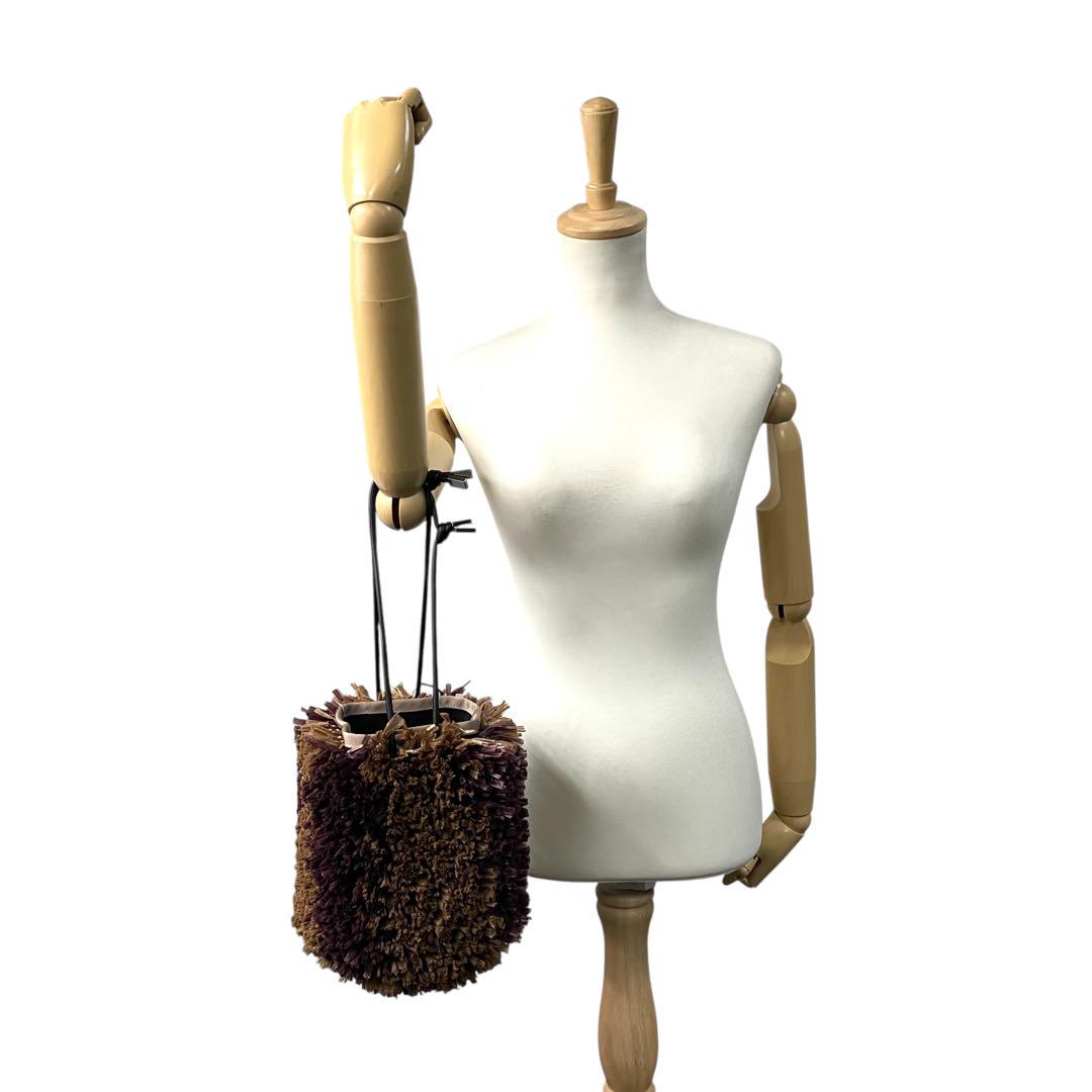 極美品 LUDLOW ラドロー E ウニバッグ 巾着 ハンドバッグ ベージュ パープル ブラウン ビニール キャンバス レザー シルバー金具 個性派 Y2K s