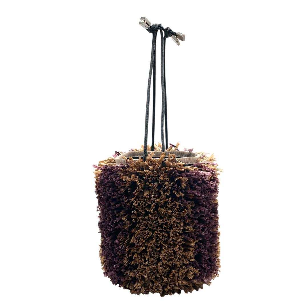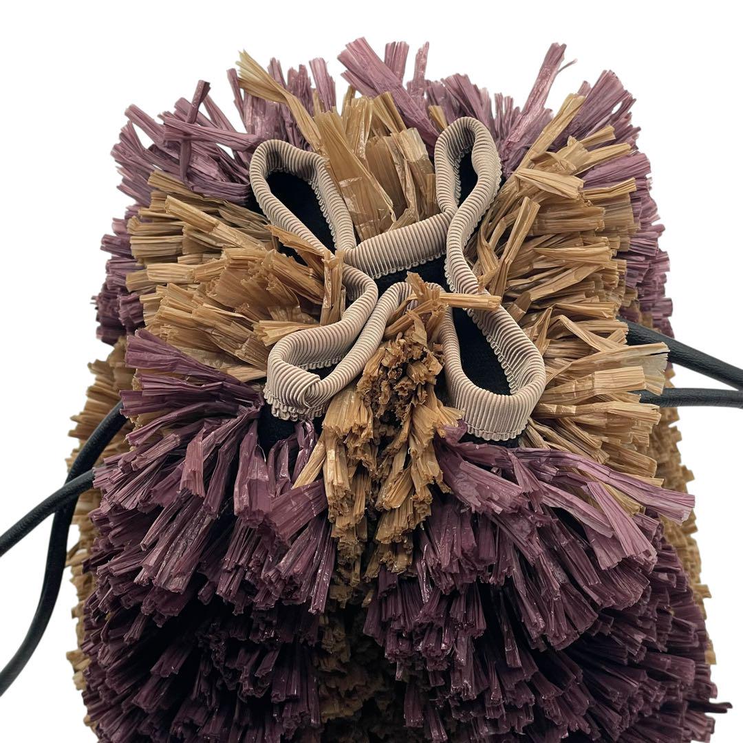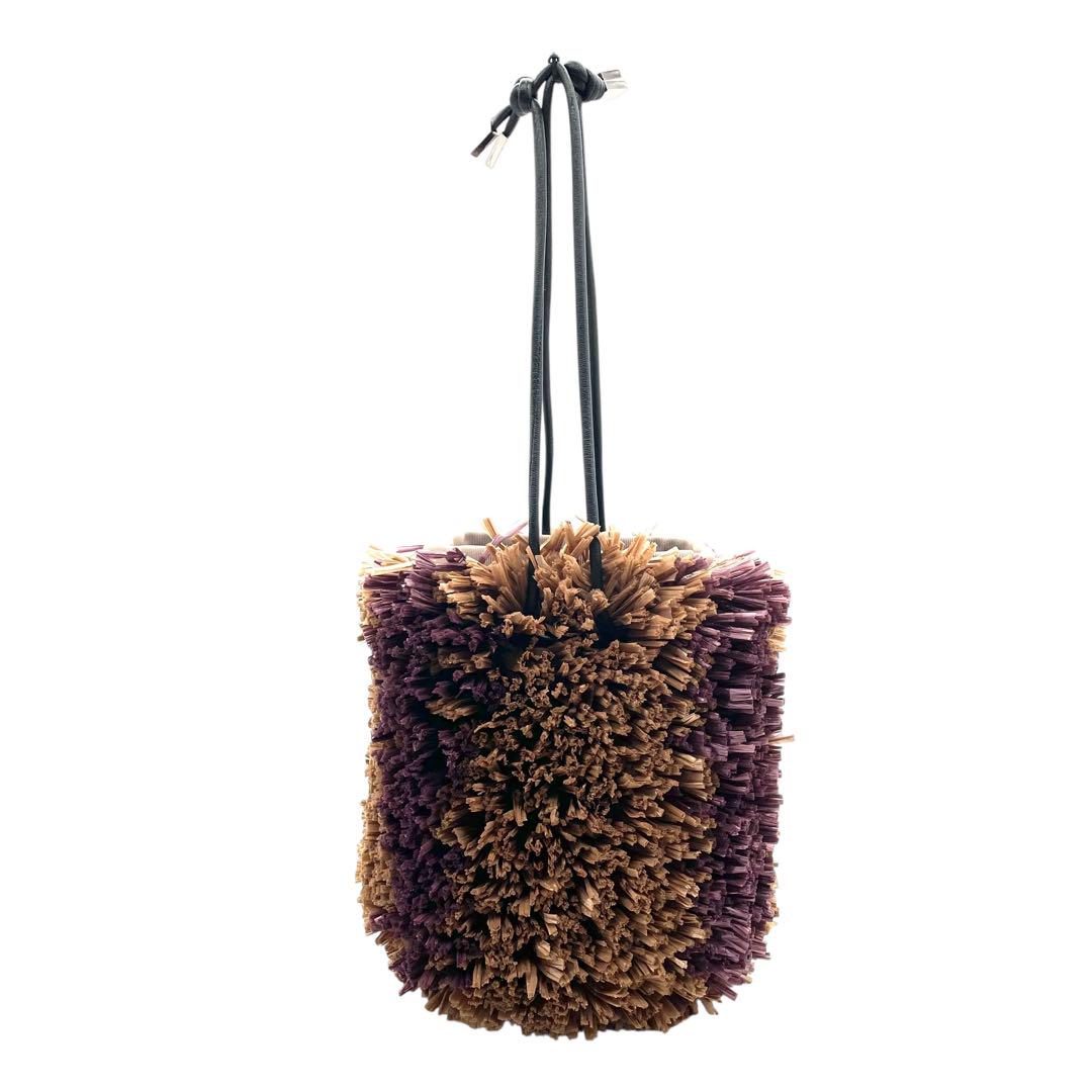極美品 LUDLOW ラドロー E ウニバッグ 巾着 ハンドバッグ ベージュ パープル ブラウン ビニール キャンバス レザー シルバー金具 個性派 Y2K s