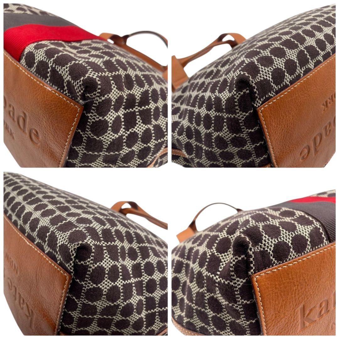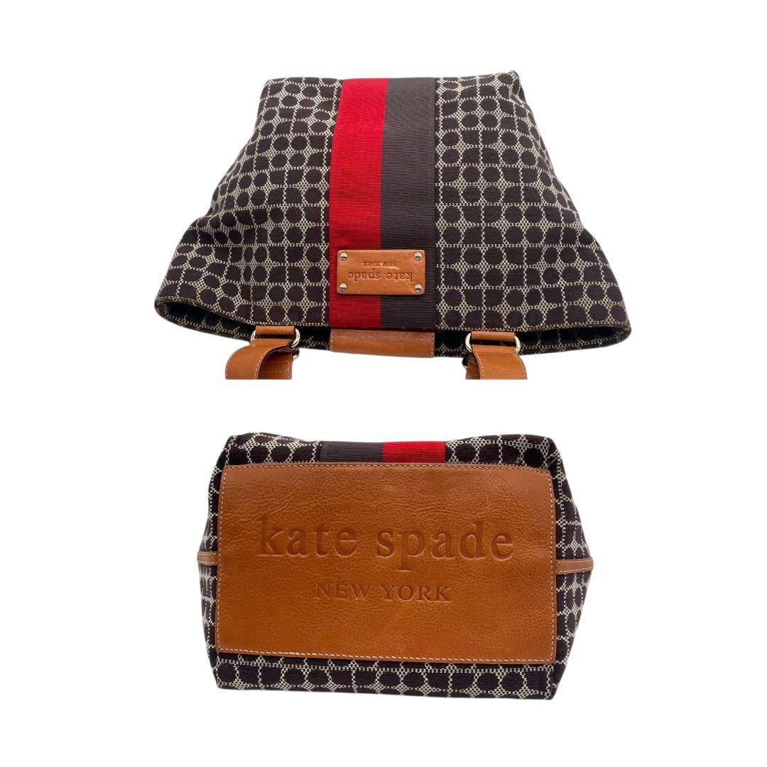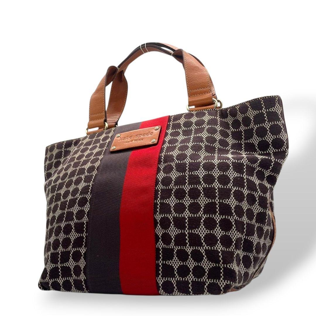 ケイトスペード トートバッグ 茶 ブラウン 赤 レッド ドット柄 ハンドバッグ A4収納可 キャンバス レザー 本革 ゴールド金具 ロゴプレート kate spade おしゃれ 通勤 通学