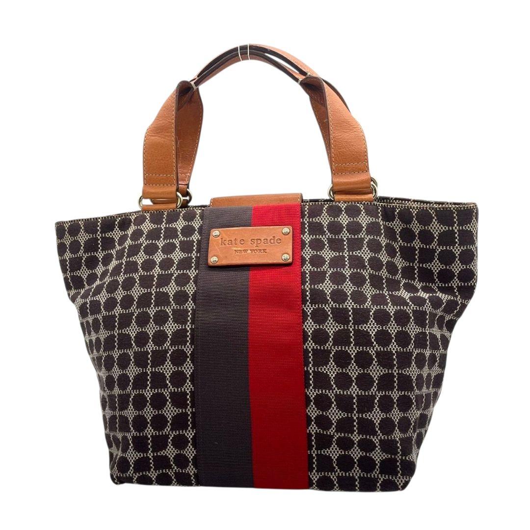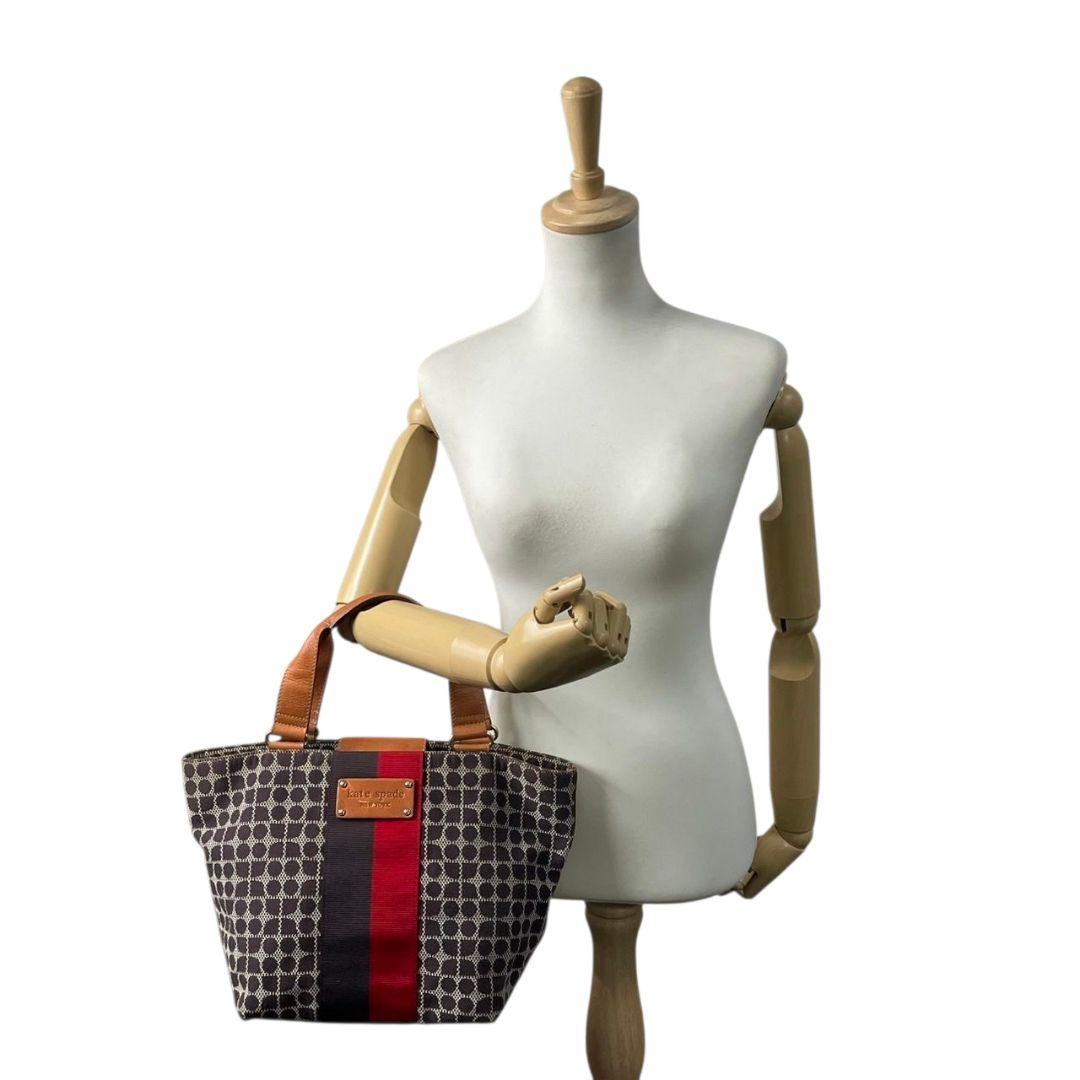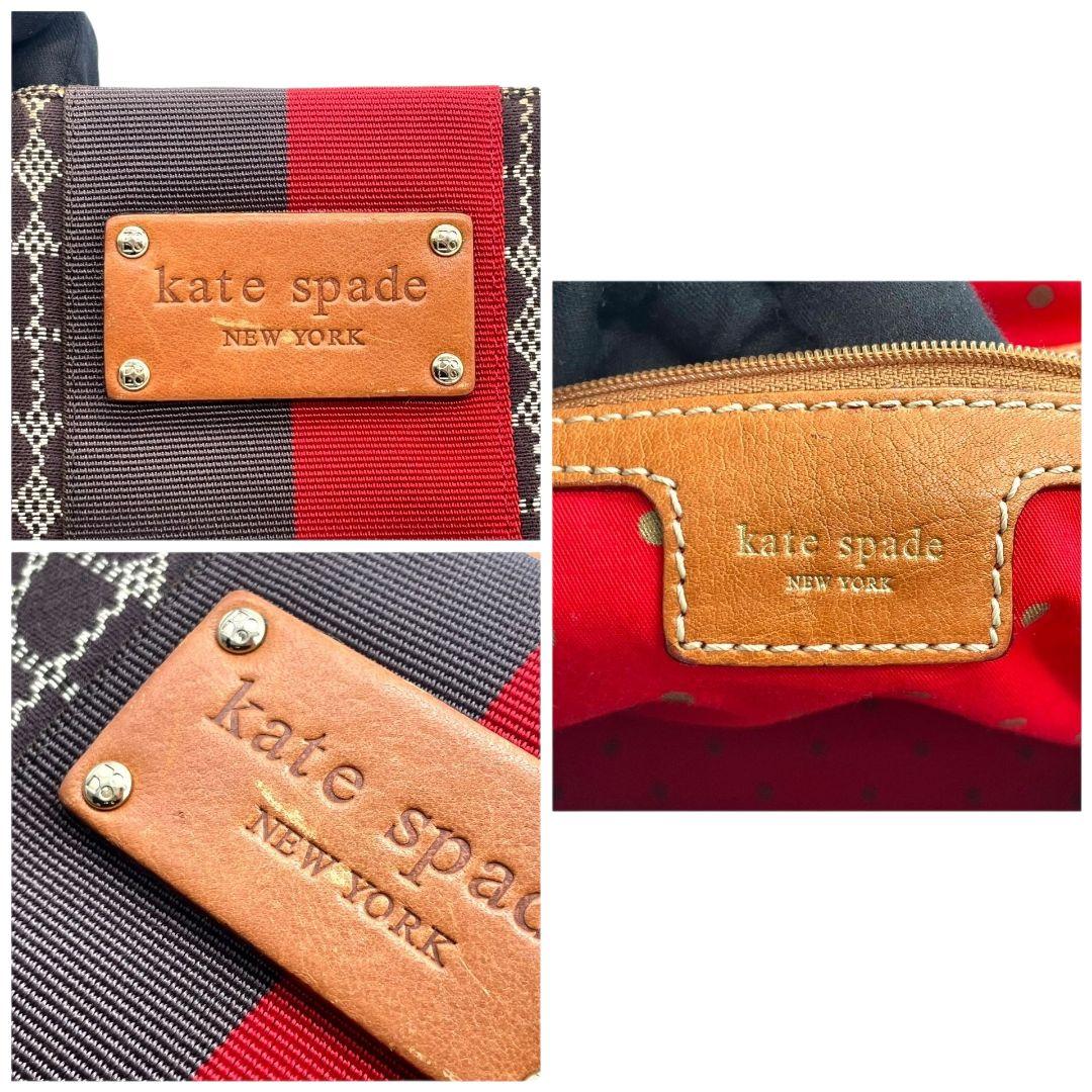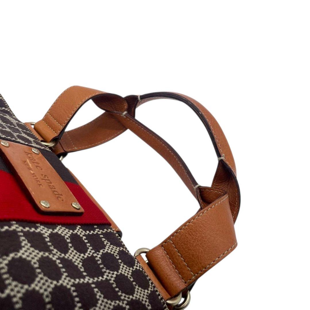 ケイトスペード トートバッグ 茶 ブラウン 赤 レッド ドット柄 ハンドバッグ A4収納可 キャンバス レザー 本革 ゴールド金具 ロゴプレート kate spade おしゃれ 通勤 通学