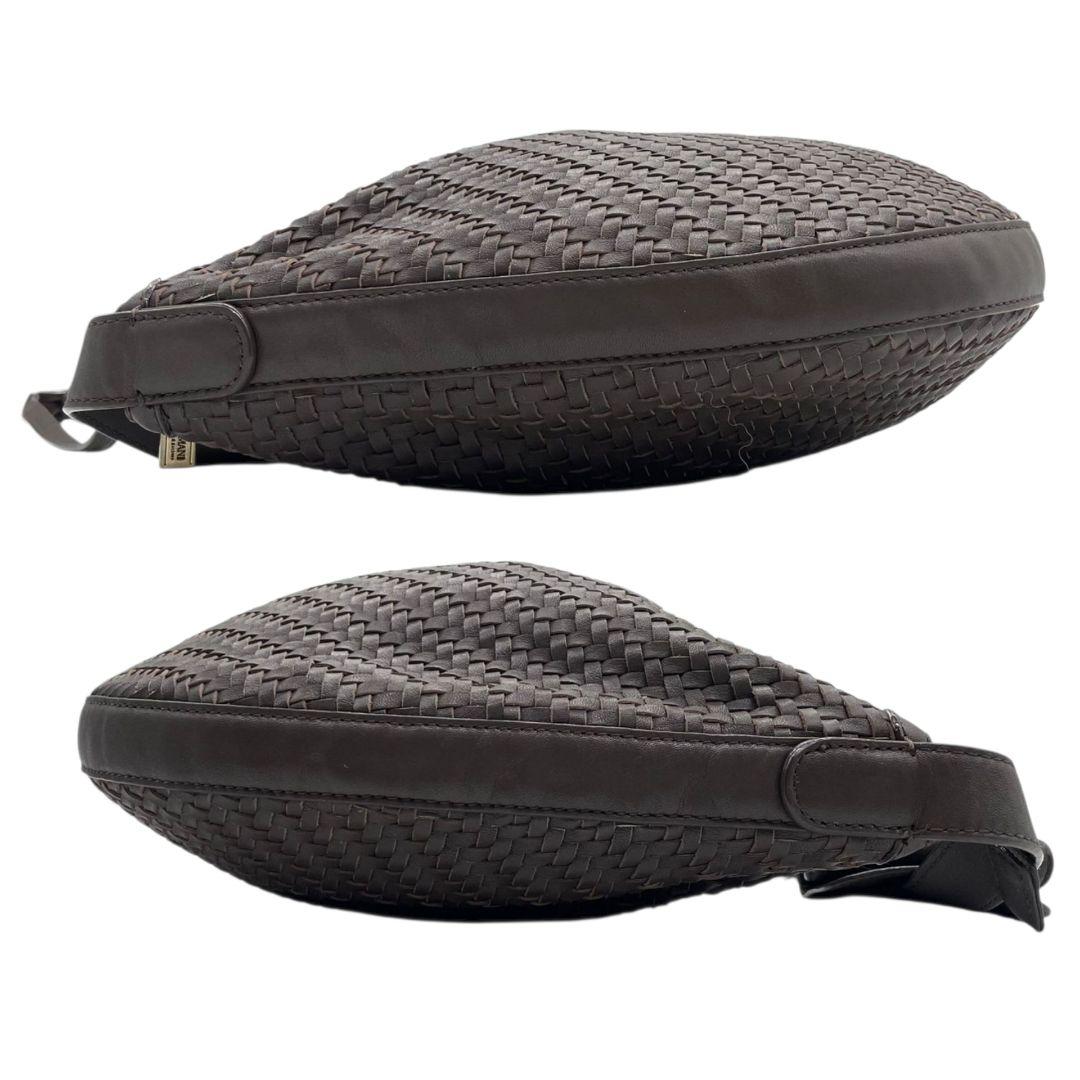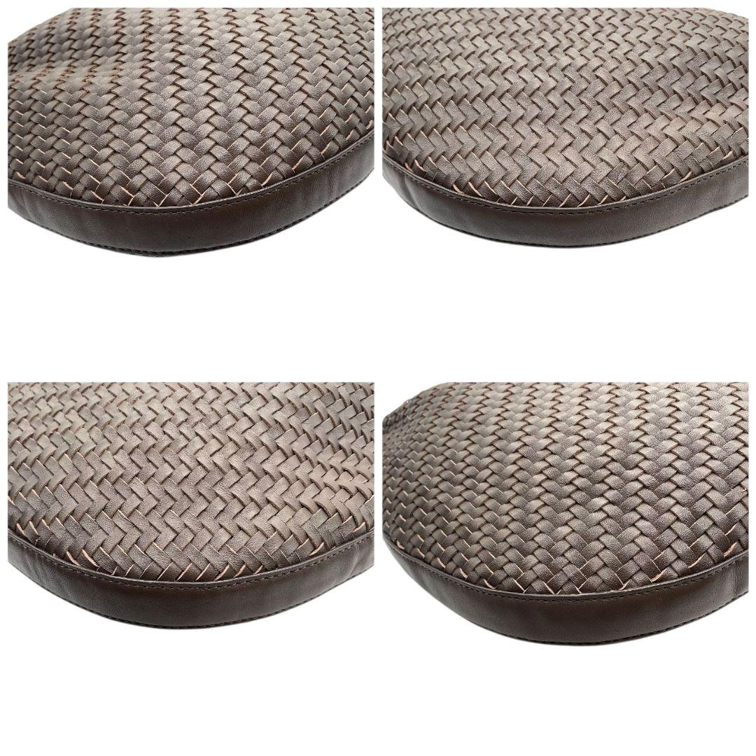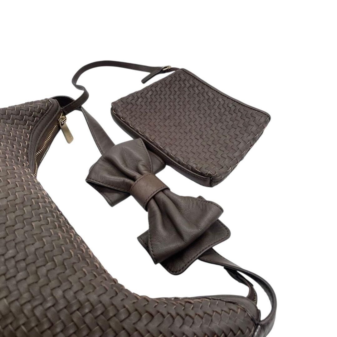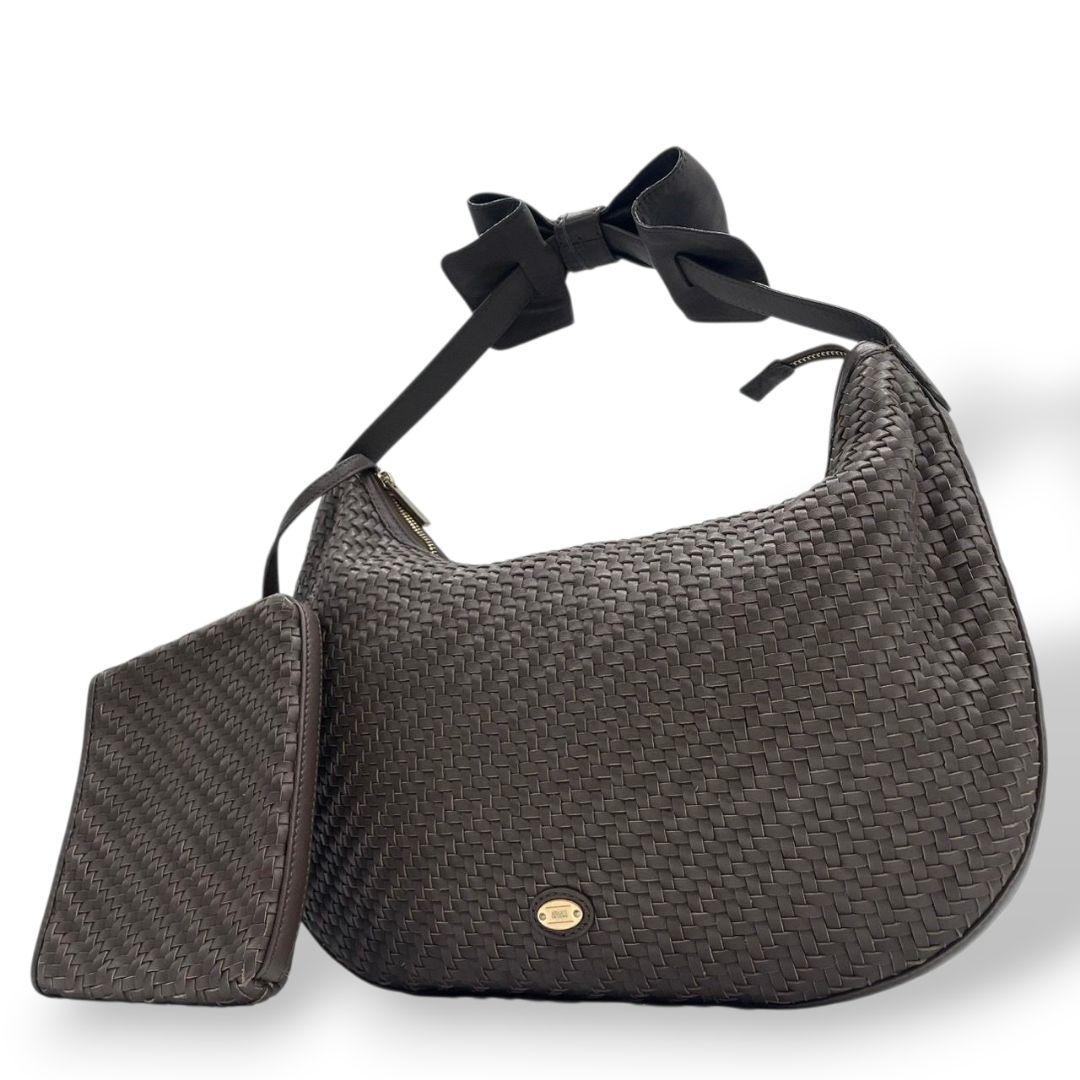 美品 アルマーニコレツィオーニ ショルダーバッグ 茶 s23 編み込み ワンショルダー 肩掛け可 レザー 本革 ブラウン ポーチ付き リボン ロゴプレート ゴールド金具 ARMANI COLLEZIONI