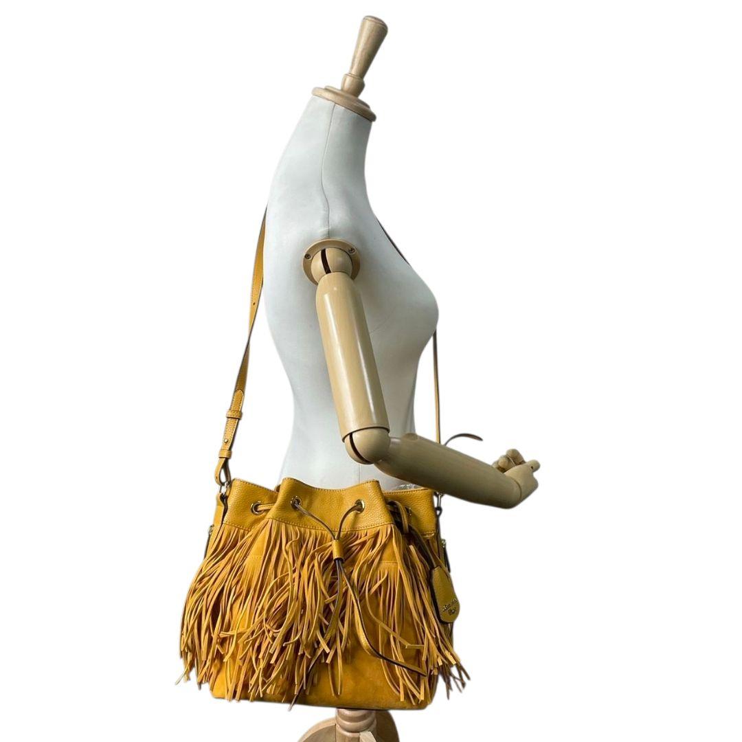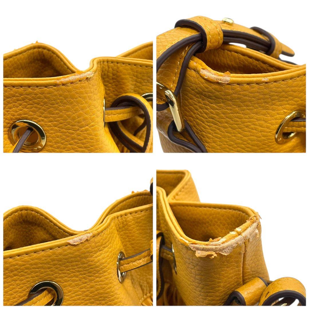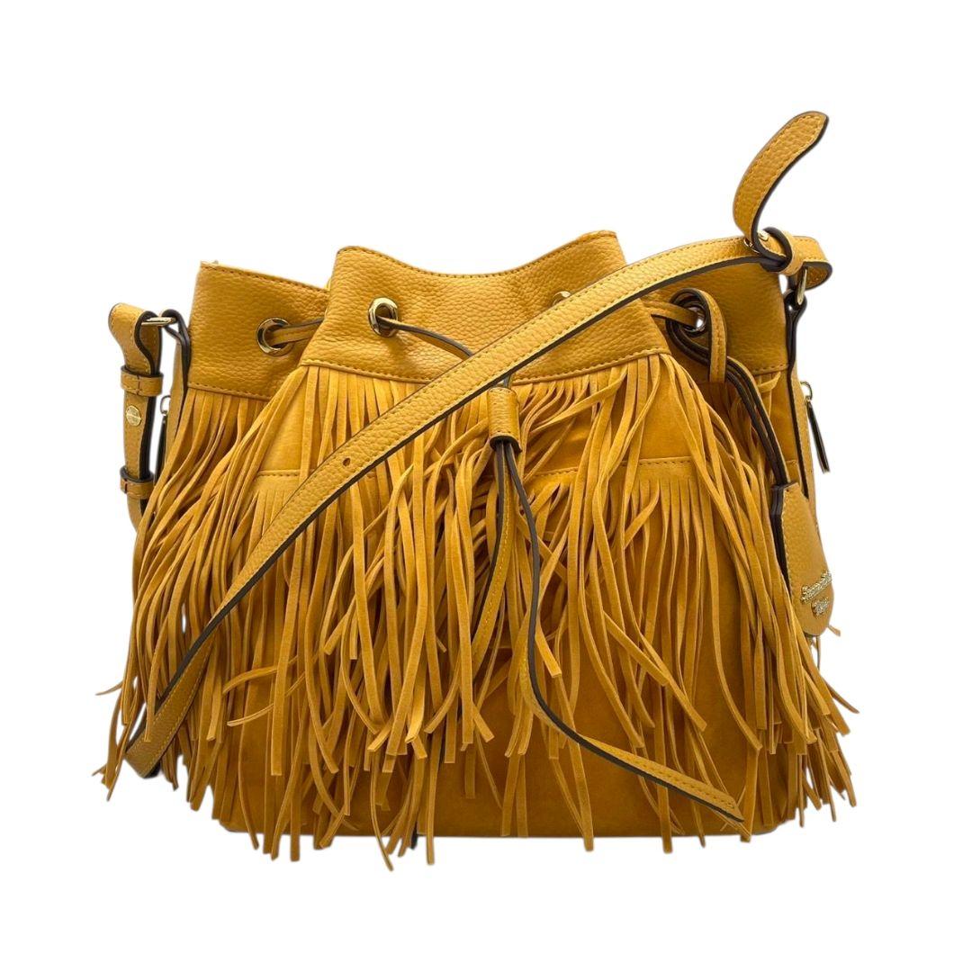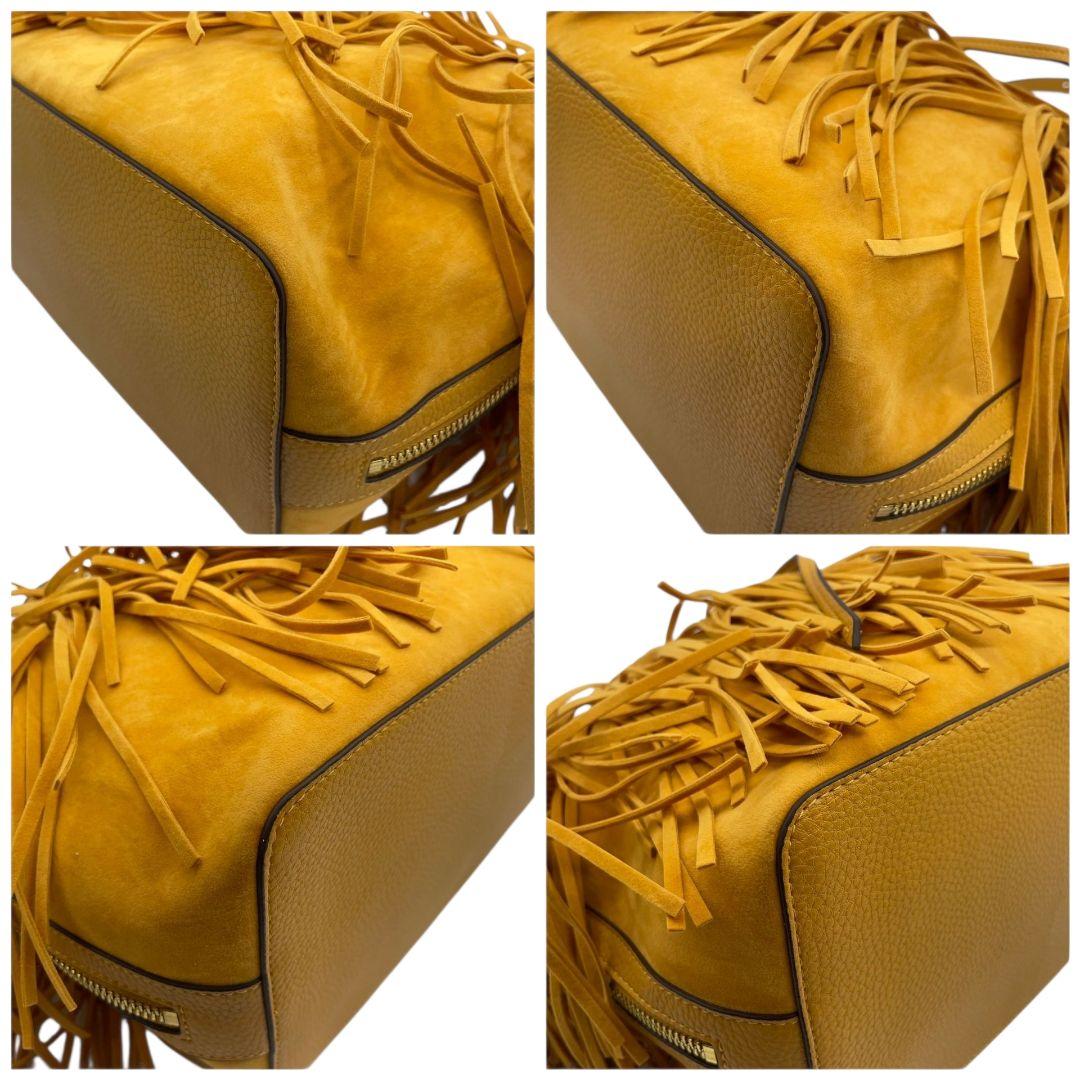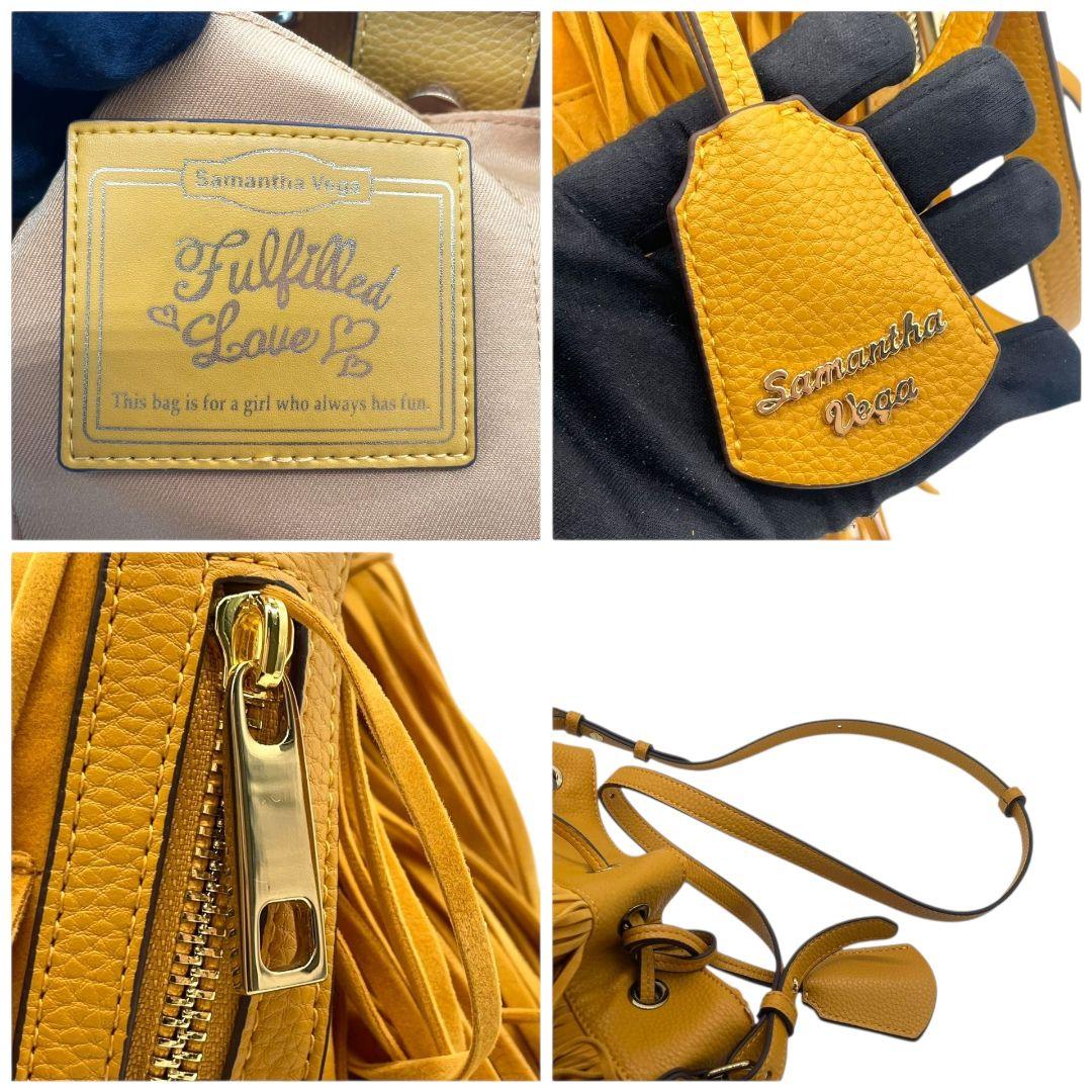 サマンサベガ ショルダーバッグ 黄 イエロー フリンジ 巾着 斜め掛け可 スウェード レザー 本革 ゴールド金具 チャーム付き ロゴ s16 Samantha Vega