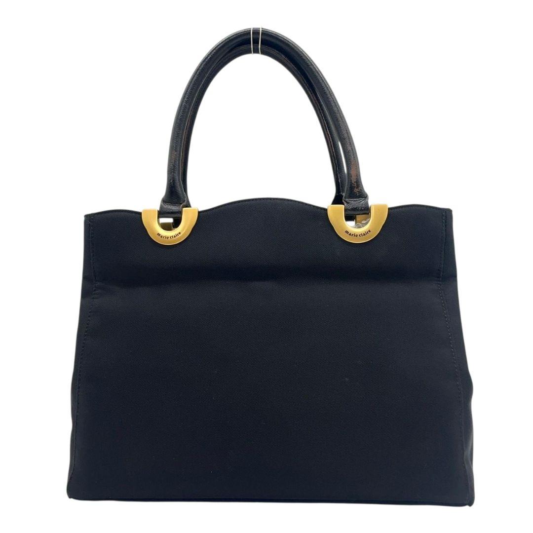 マリクレール ハンドバッグ 黒 ロゴ キャンバス レザー ゴールド金具 s23 トートバッグ ブラック 本革 marie claire