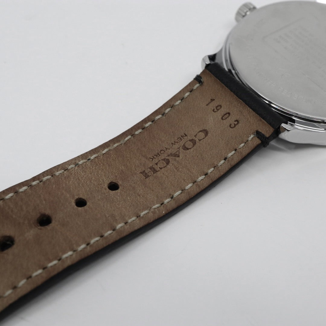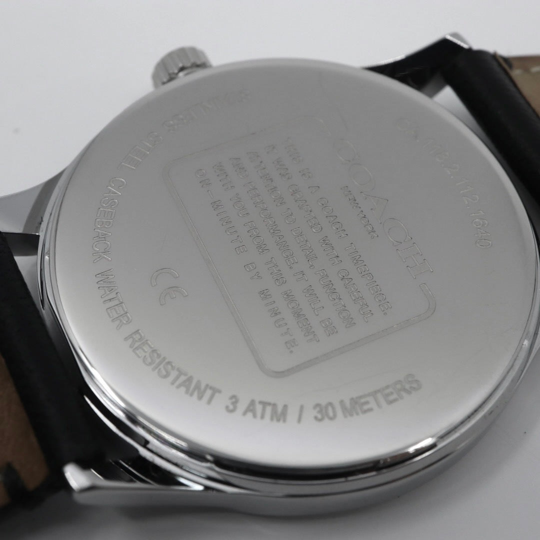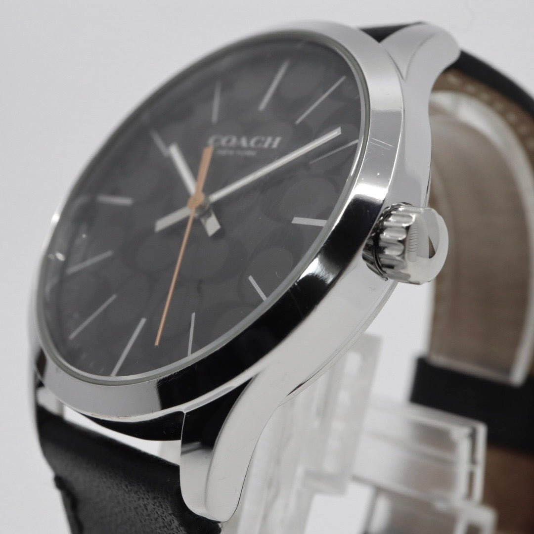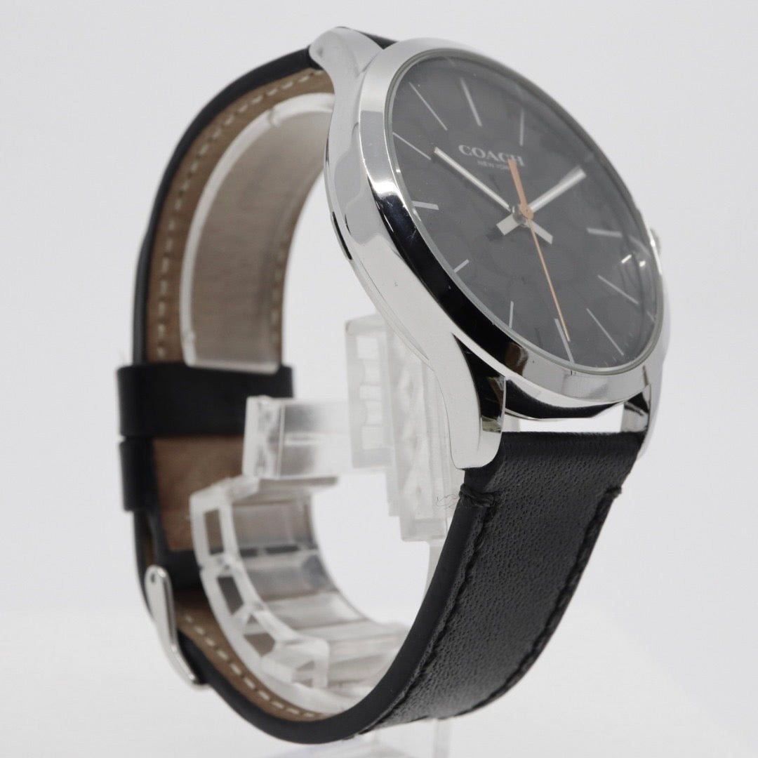 美品 コーチ COACH 腕時計 バクスターウォッチ シグネチャー 黒文字盤 レザーベルト クォーツ アナログ メンズ レディース ブラック 3気圧防水 稼働品 電池交換済 CA.118.2.112.1640 G1