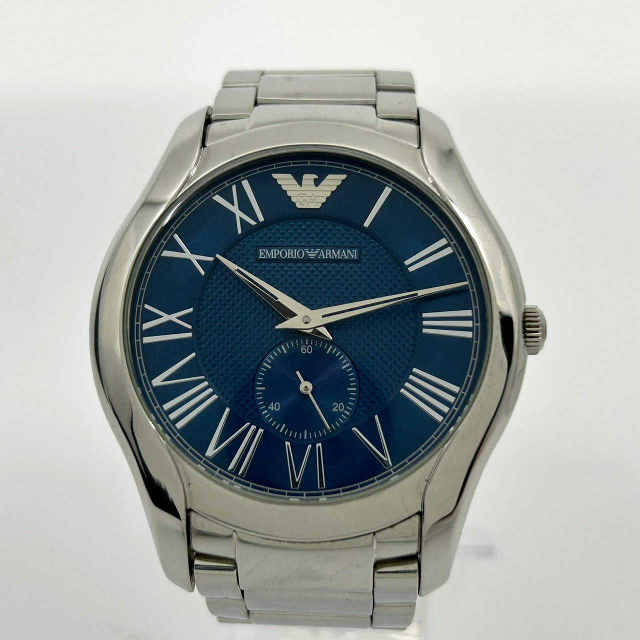 【電池交換済/稼働品】エンポリオ アルマーニ 腕時計 メンズ AR-11085 ブルー文字盤 アナログ クオーツ ローマンインデックス スモールセコンド ステンレス エレガント クラシック ビジネスウォッチ クリーニング済 G