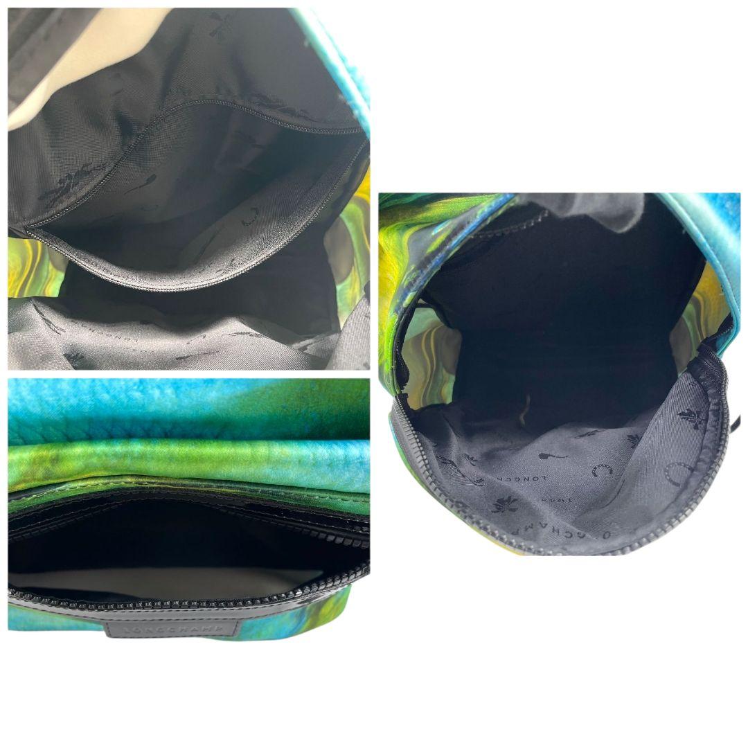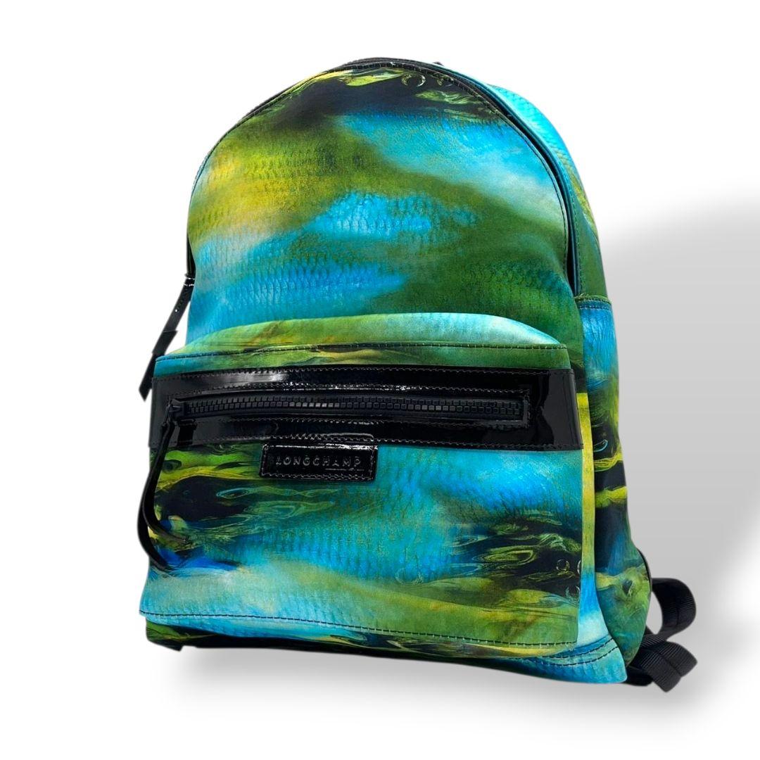 美品 ロンシャン バックパック 緑 青 総柄 ナイロン u15 ル プリアージュ パテント グリーン ブルー イエロー ネオ ファンテジー アーバンネイチャー LONGCHAMP 本物保証 鑑定済