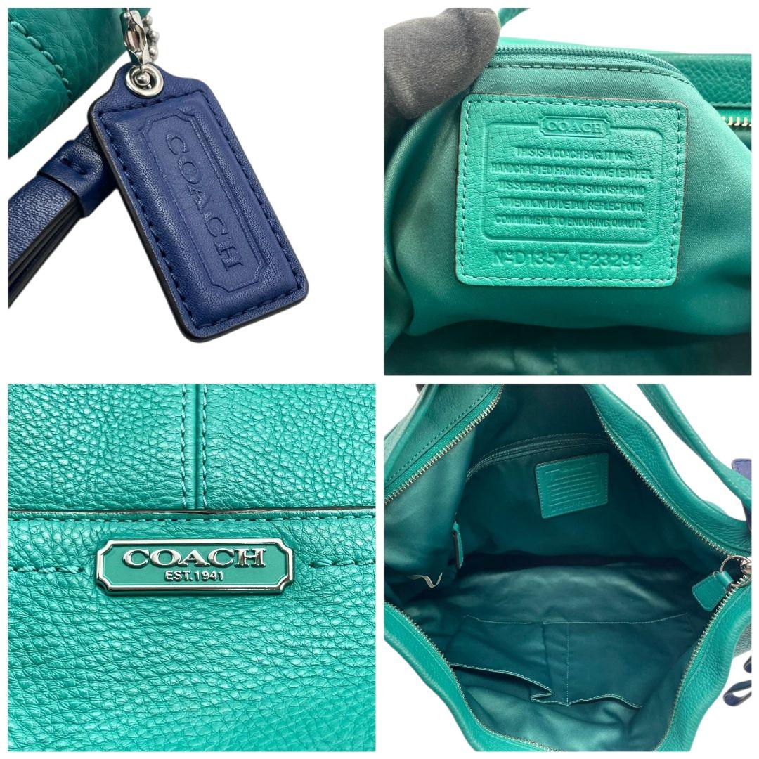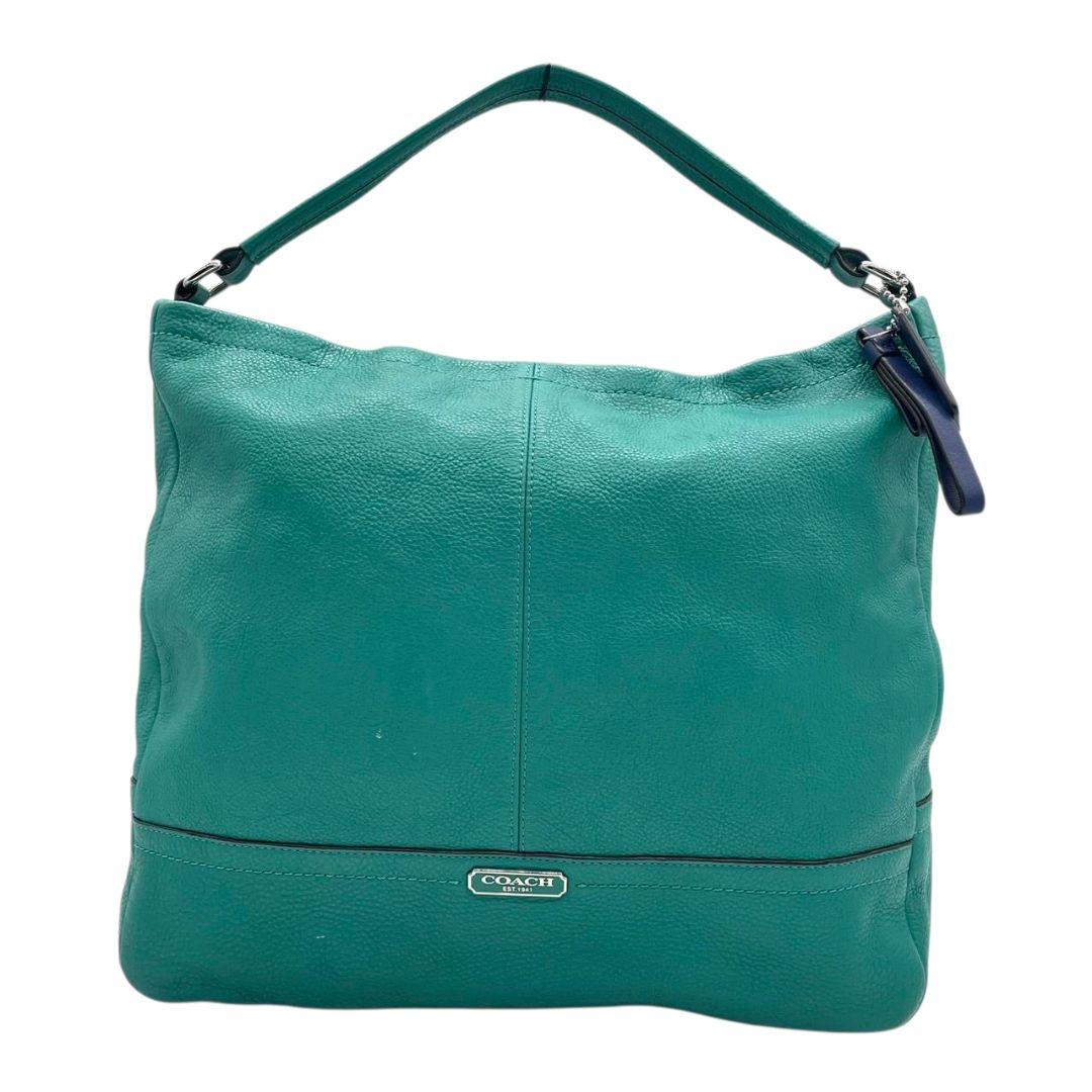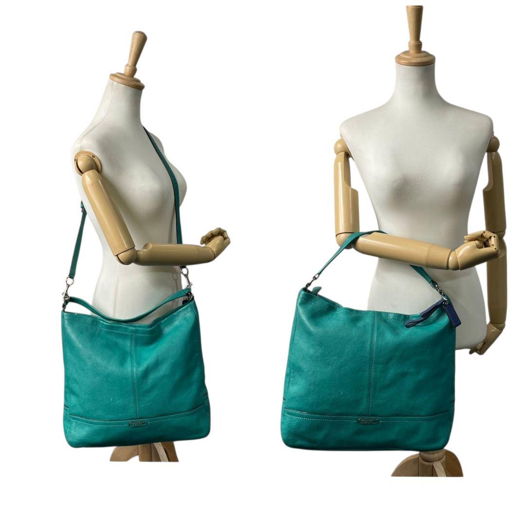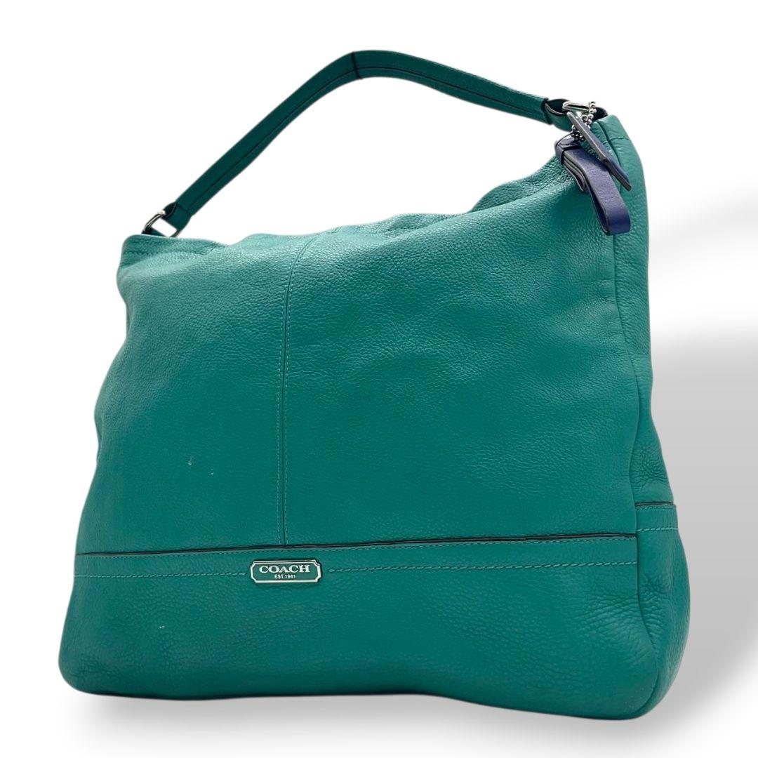 コーチ ハンドバッグ 緑 2way レザー 本革 パークレザー ホーボー s96 ショルダーバッグ エメラルドグリーン トートバッグ 斜め掛け可 ロゴプレート ロゴタグ シルバー金具 COACH D1357-F23293