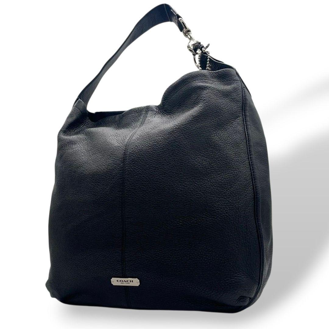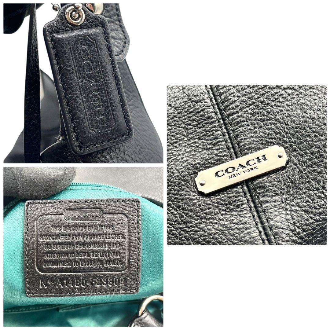 美品 コーチ ハンドバッグ 黒 ワンショルダー レザー 本革 アベリー トートバッグ A4収納 ロゴタグ ロゴプレート シルバー金具 肩掛け可 肩かけ可 COACH A1480-F23309 スモール ホーボー s96 ブラック 上品 高級感