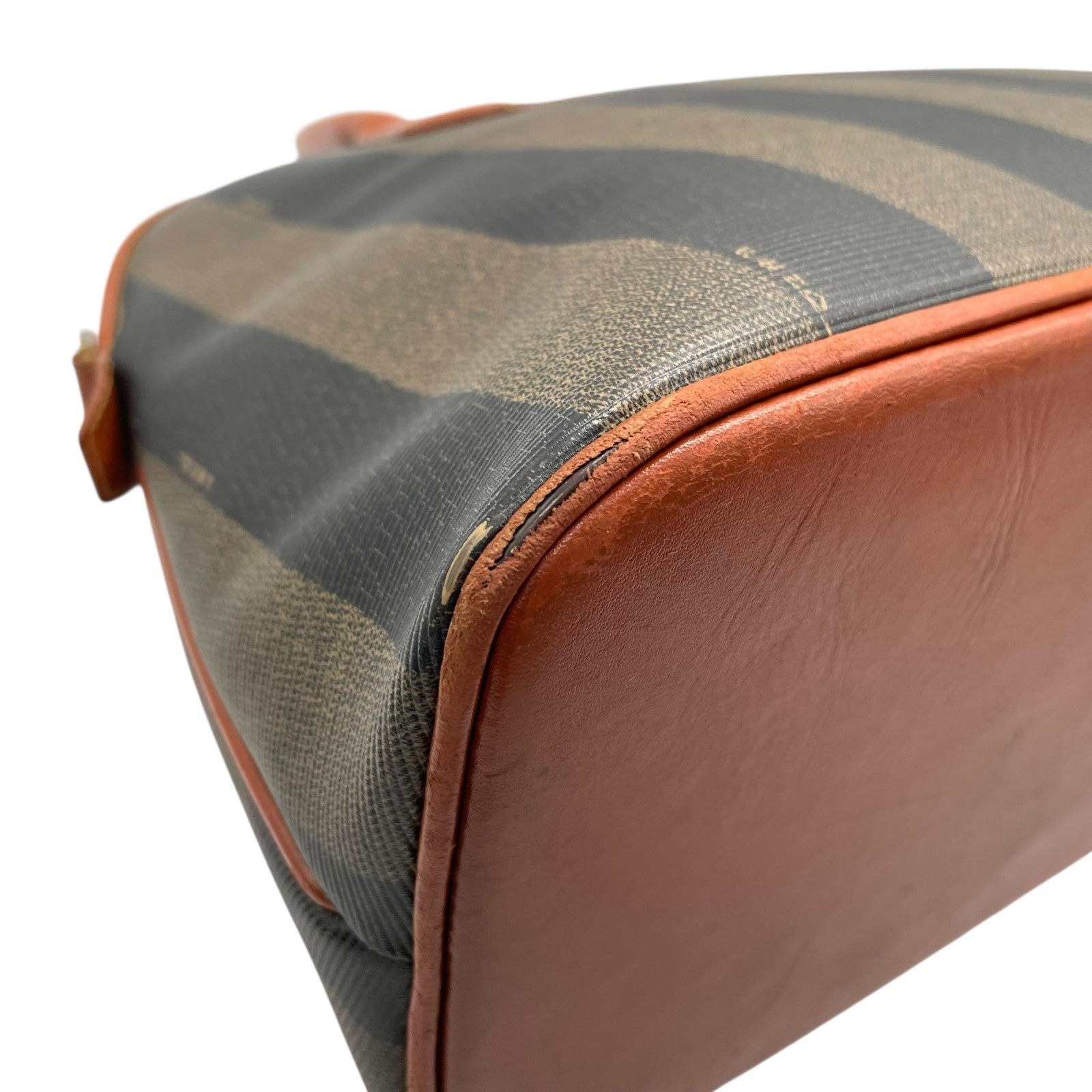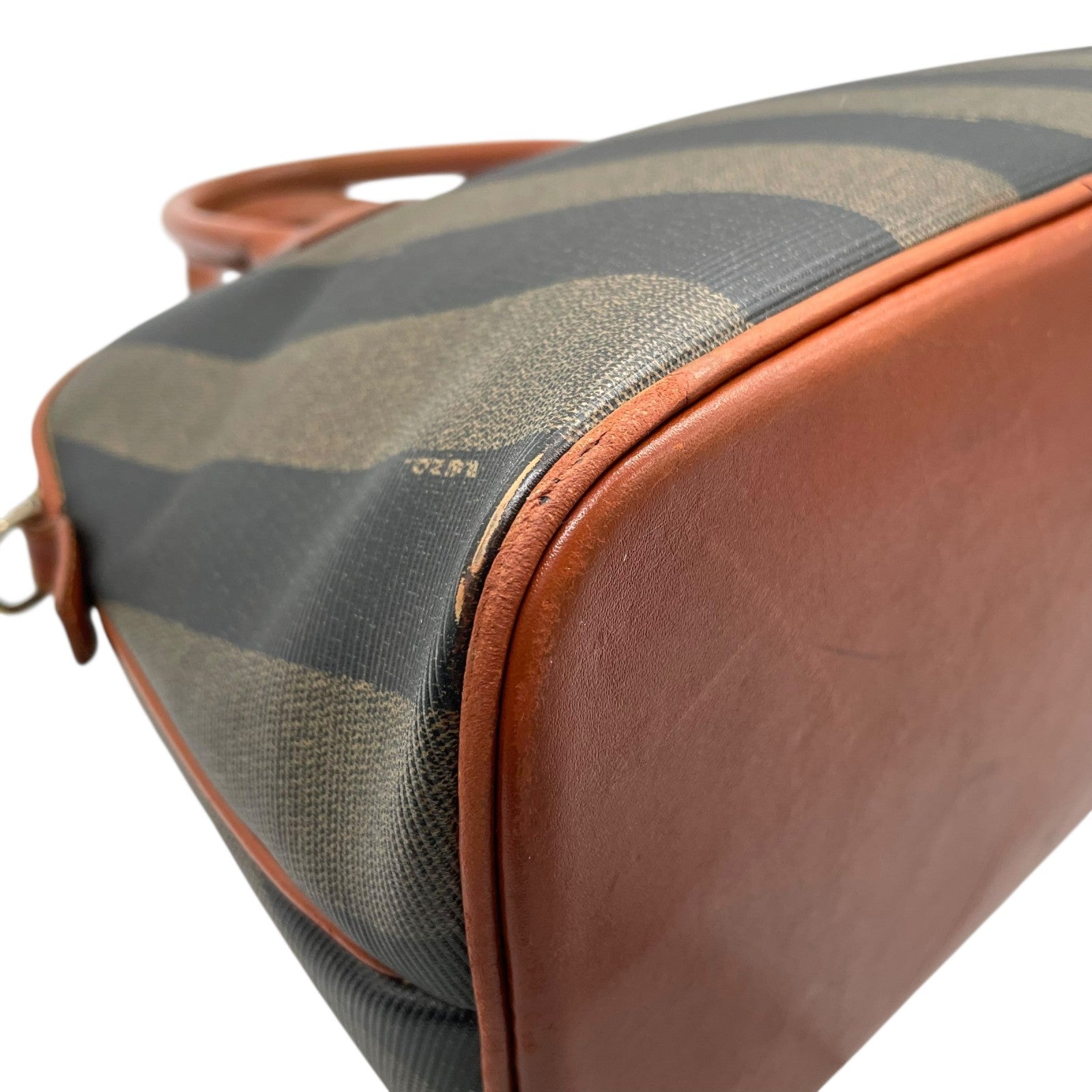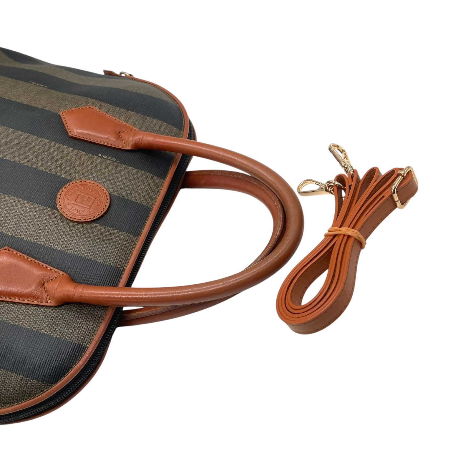 フェンディ FENDI ペカン柄 ボストンバッグ PVC レザー 茶色 カーキ ブラウン ストライプ ハンドバッグ ヴィンテージ B