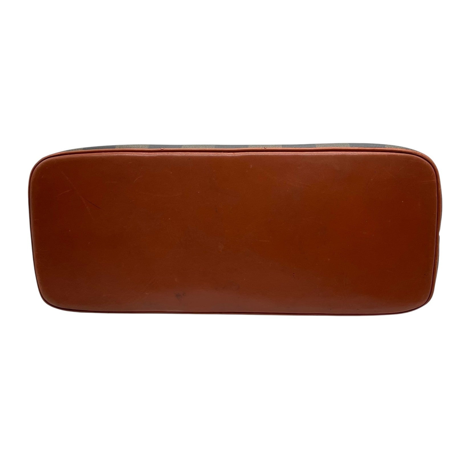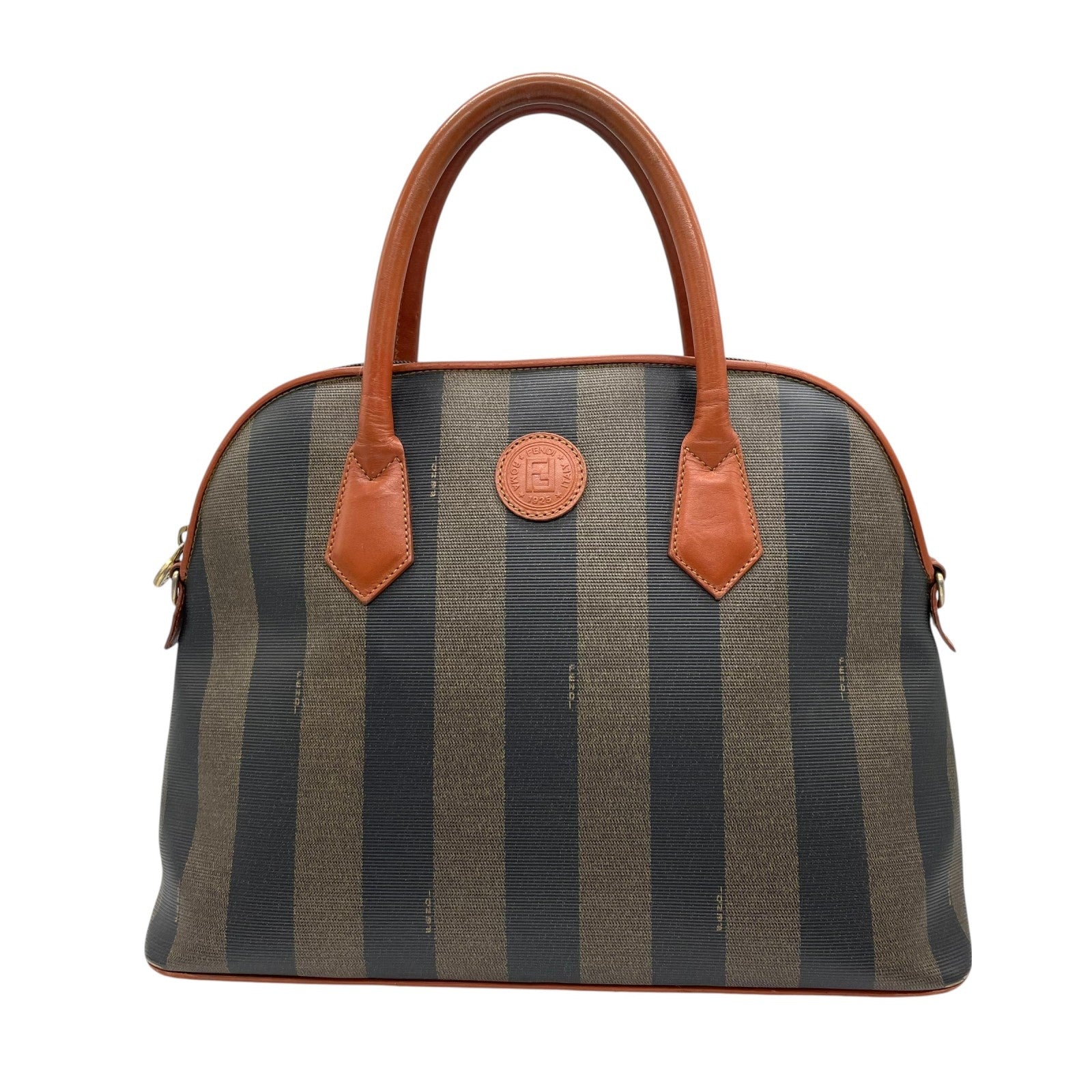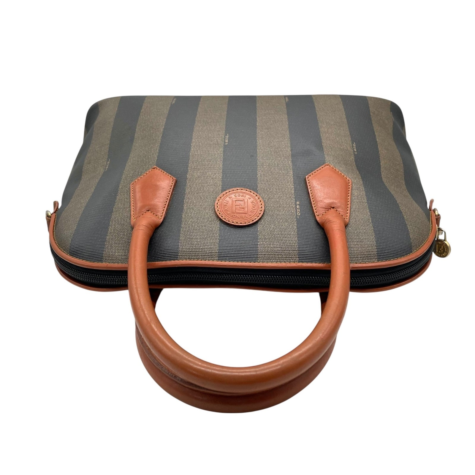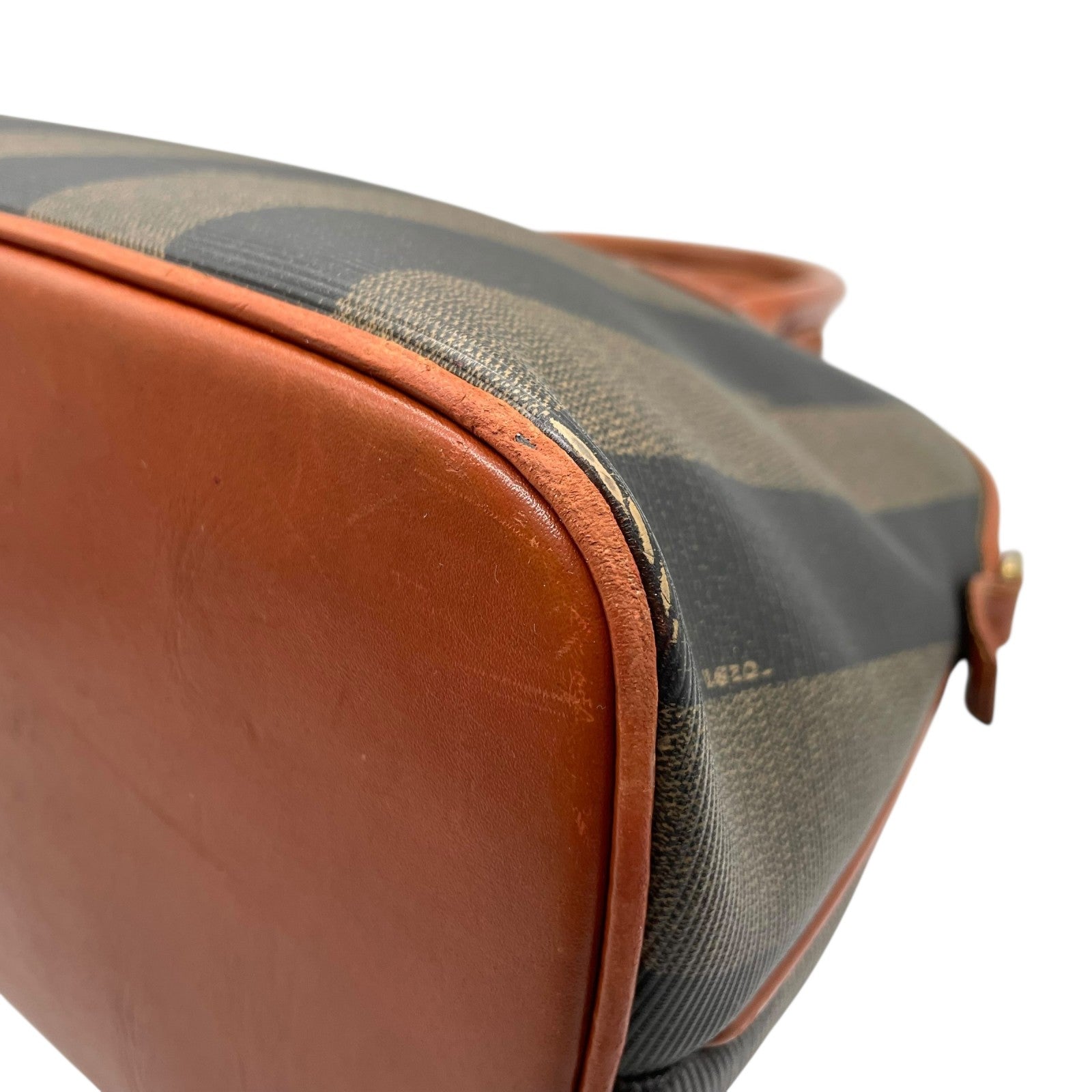フェンディ FENDI ペカン柄 ボストンバッグ PVC レザー 茶色 カーキ ブラウン ストライプ ハンドバッグ ヴィンテージ B