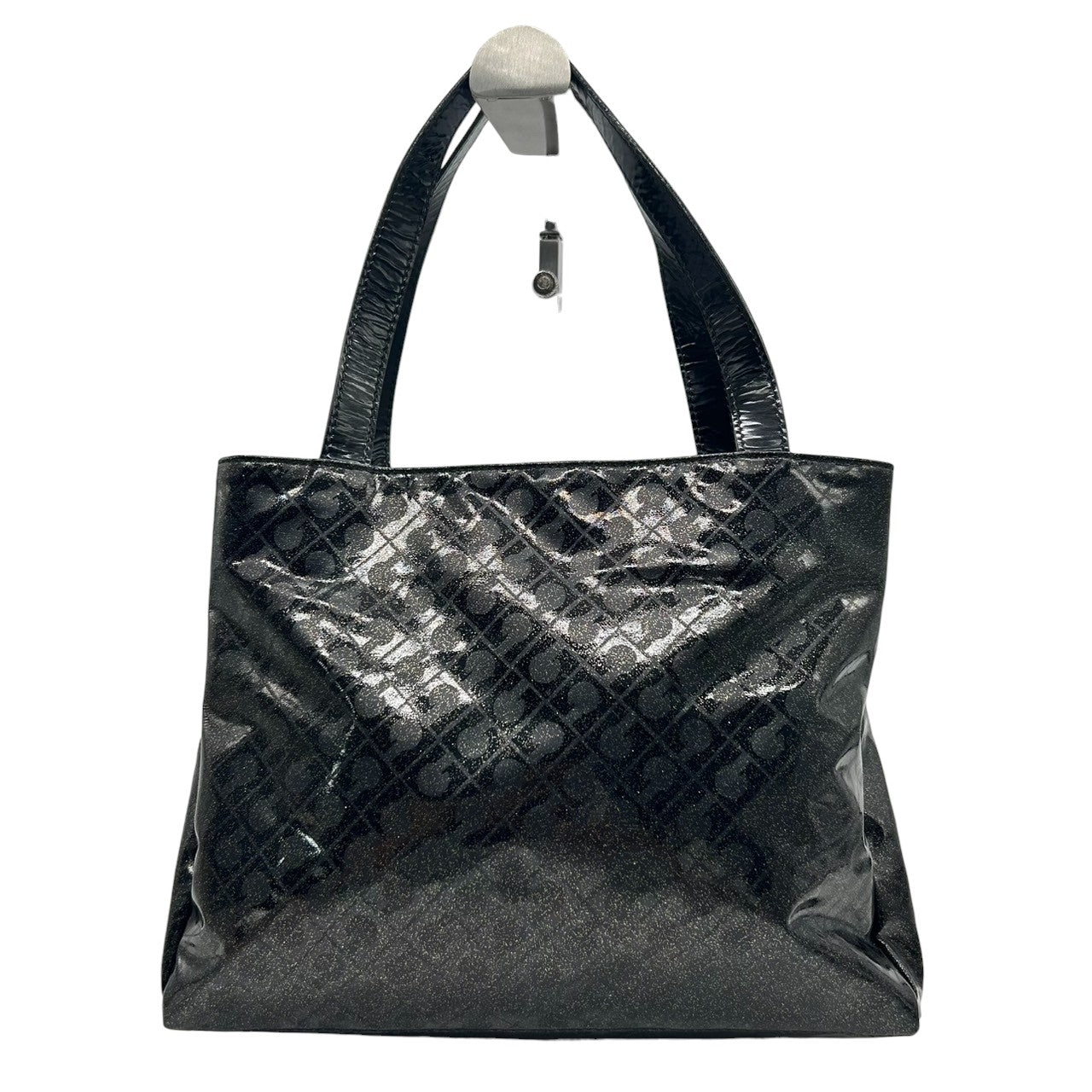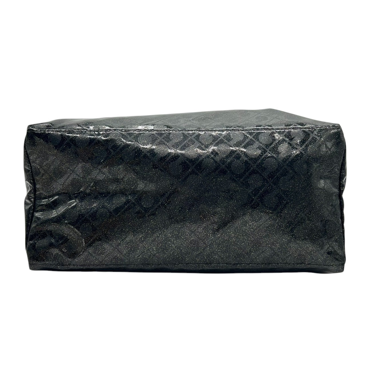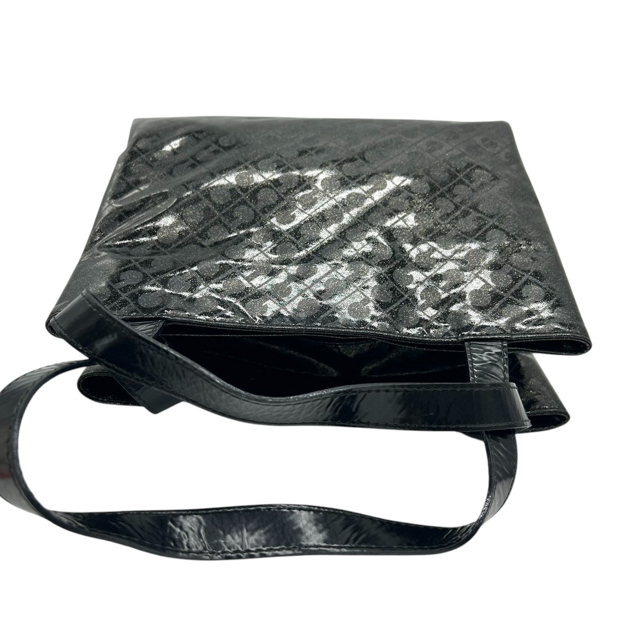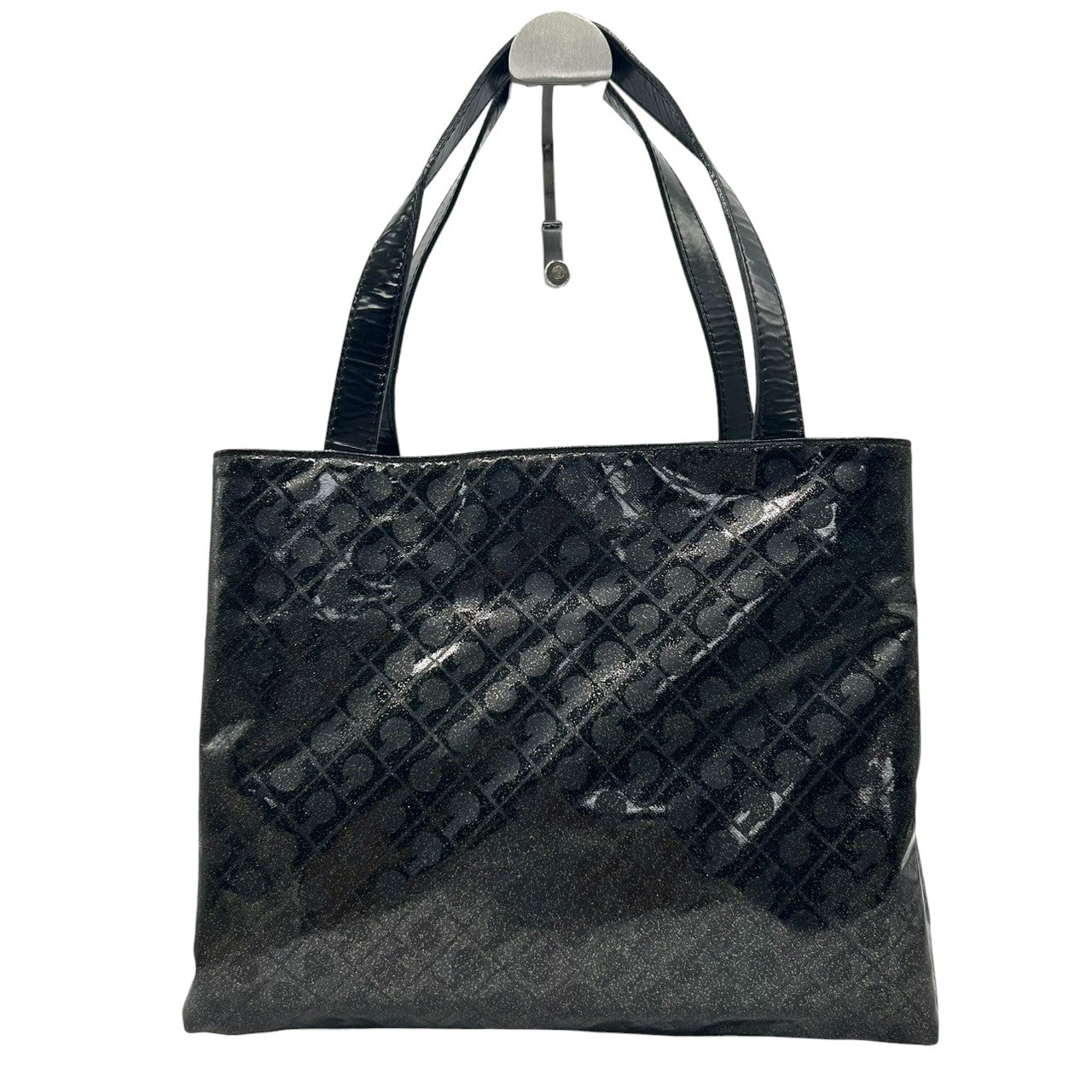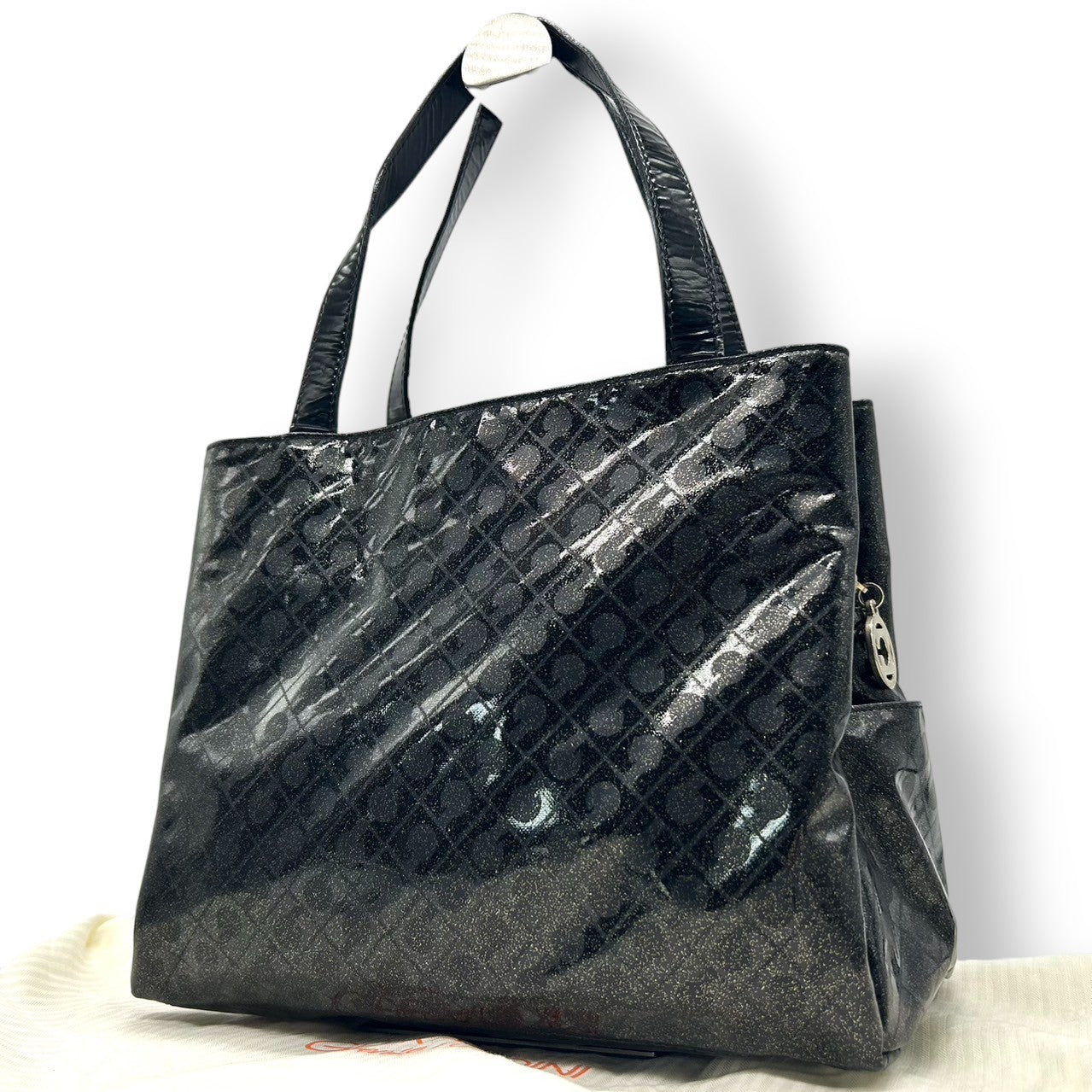 【未使用に近い】 ゲラルディーニ GHERARDINI トートバッグ ハンドバッグ ソフティ モノグラム エナメル パテント PVC ブラック ラメ Gロゴチャーム レディース ワンショルダー A4収納可 軽量 自立可 保存袋付き E5