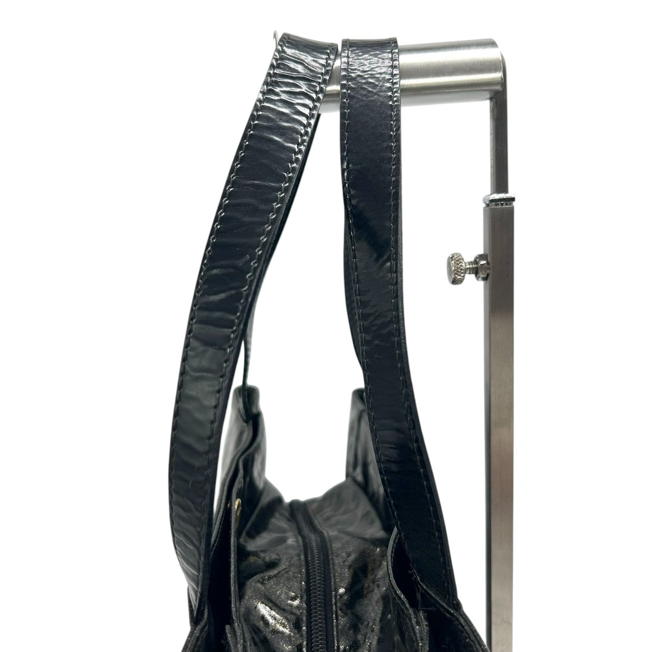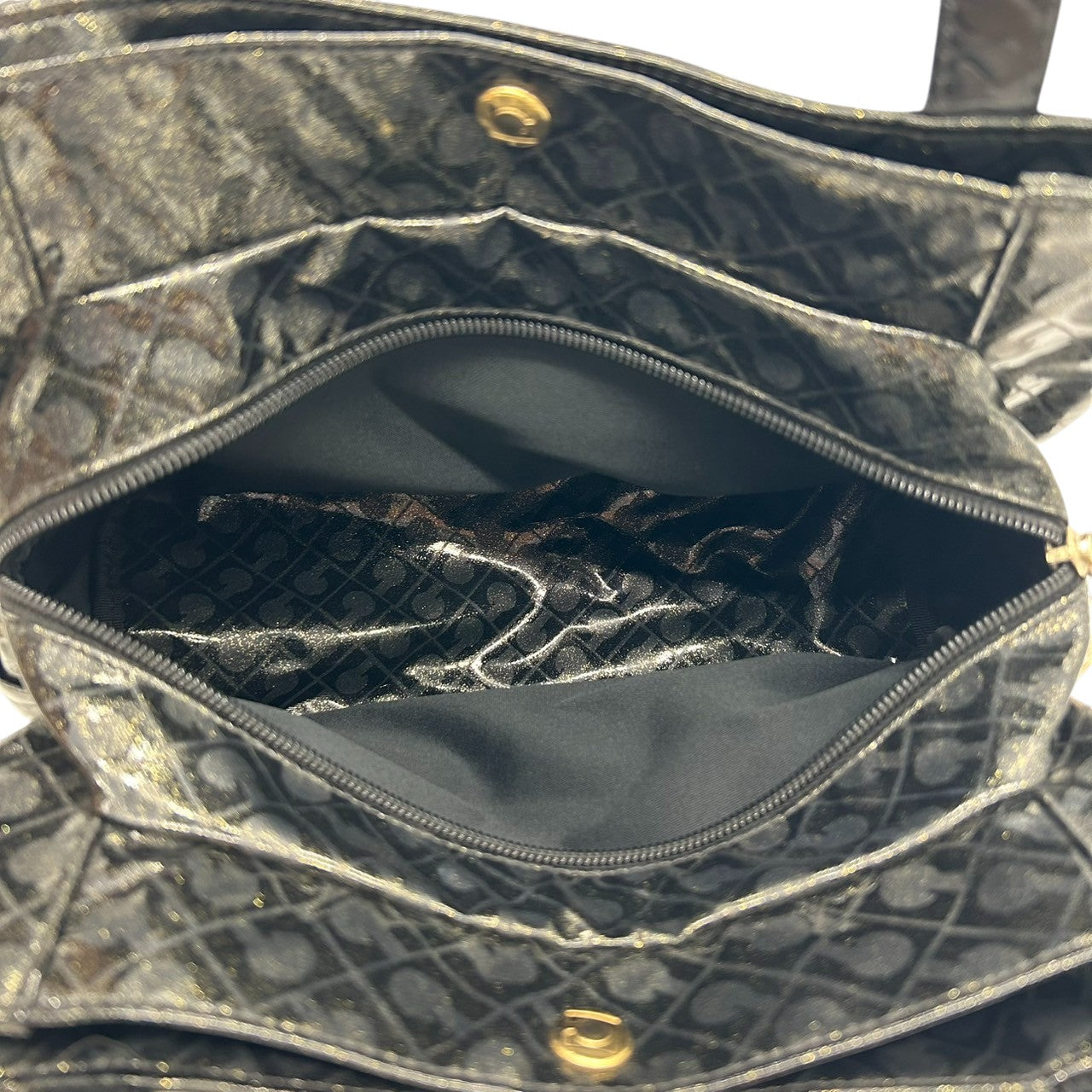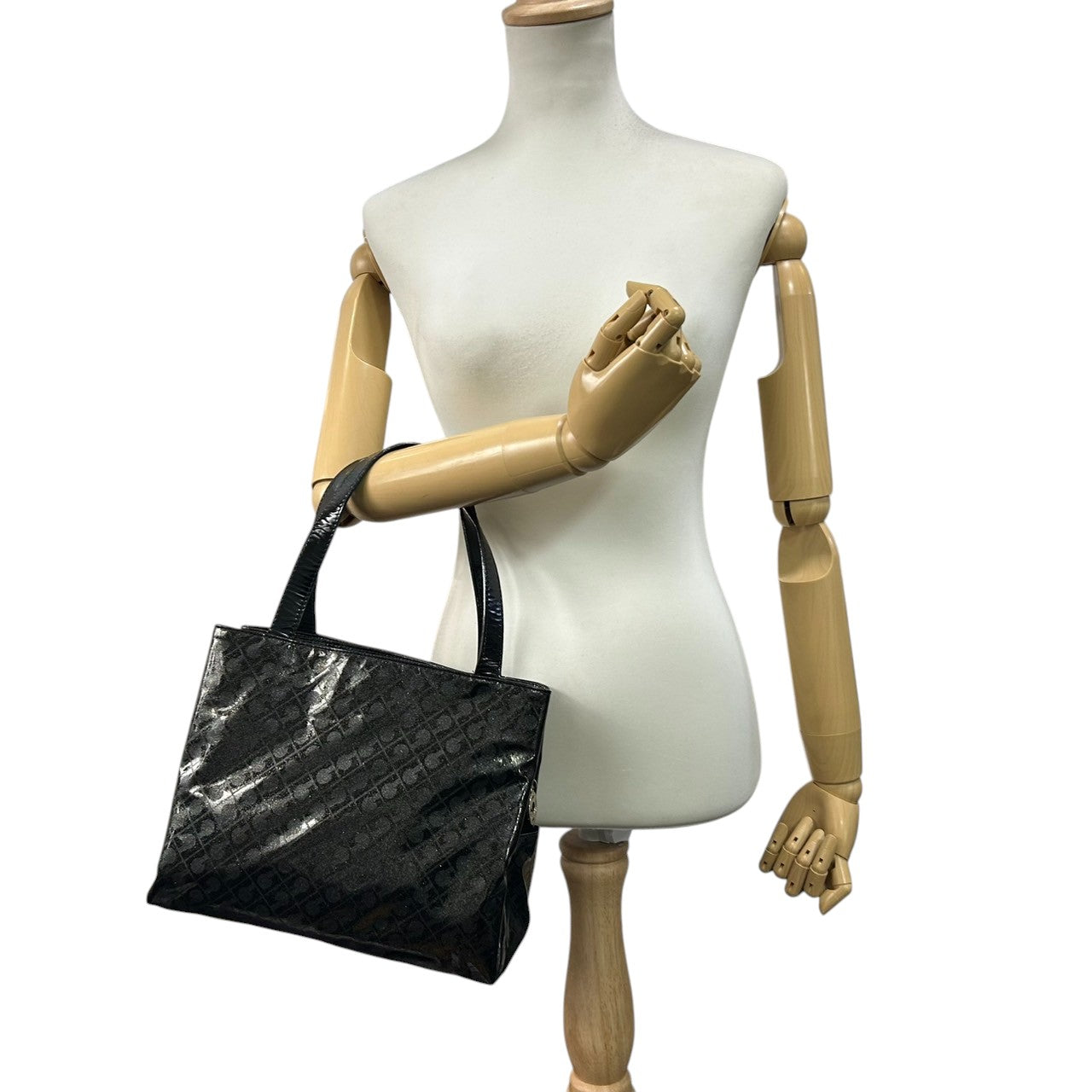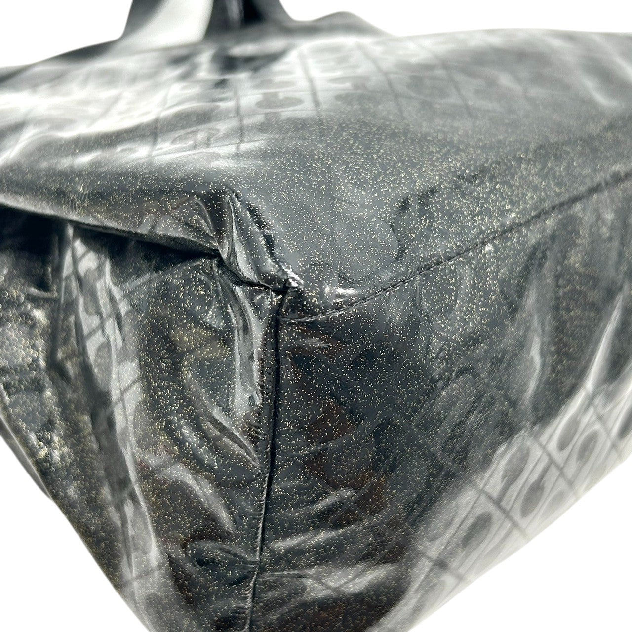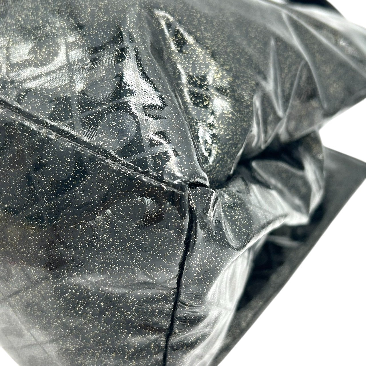 【未使用に近い】 ゲラルディーニ GHERARDINI トートバッグ ハンドバッグ ソフティ モノグラム エナメル パテント PVC ブラック ラメ Gロゴチャーム レディース ワンショルダー A4収納可 軽量 自立可 保存袋付き E5