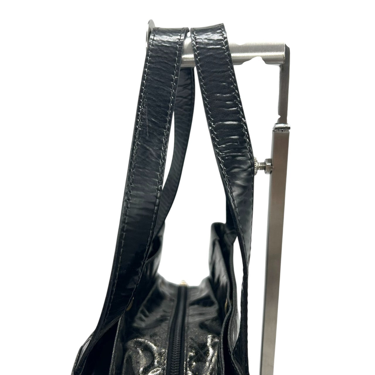 | 商品説明 | 【未使用級/クリーニング済】本商品は、GHERARDINI(ゲラルディーニ)のトートバッグです。 艶やかなブラックのエナメル素材に、ブランドを象徴するソフティ(モノグラム)柄がデザインされています。全体に散りばめられたラメが光の角度でキラキラと輝き、エレガントで華やかな印象を与えます。 A4サイズも収納可能な実用的なサイズ感で、軽量なため普段使いにも最適です。ハンドルは肩掛けしやすい長さで、ワンショルダーバッグとしてもお使いいただけます。 特徴 ブランド:GHERARDINI(ゲラルディーニ) ライン:ソフティ タイプ:トートバッグ / ワンショルダーバッグ カラー:ブラック(ラメ入り) 素材:エナメル / PVC デザイン:ソフティ柄 / モノグラム / Gロゴチャーム 仕様:軽量 / A4収納可 / ファスナー開閉 状態:未使用級 / クリーニング済み デザイン性と機能性を兼ね備えた、ゲラルディーニらしい上品な逸品。通勤からお出かけまで、幅広いシーンで活躍します。 |