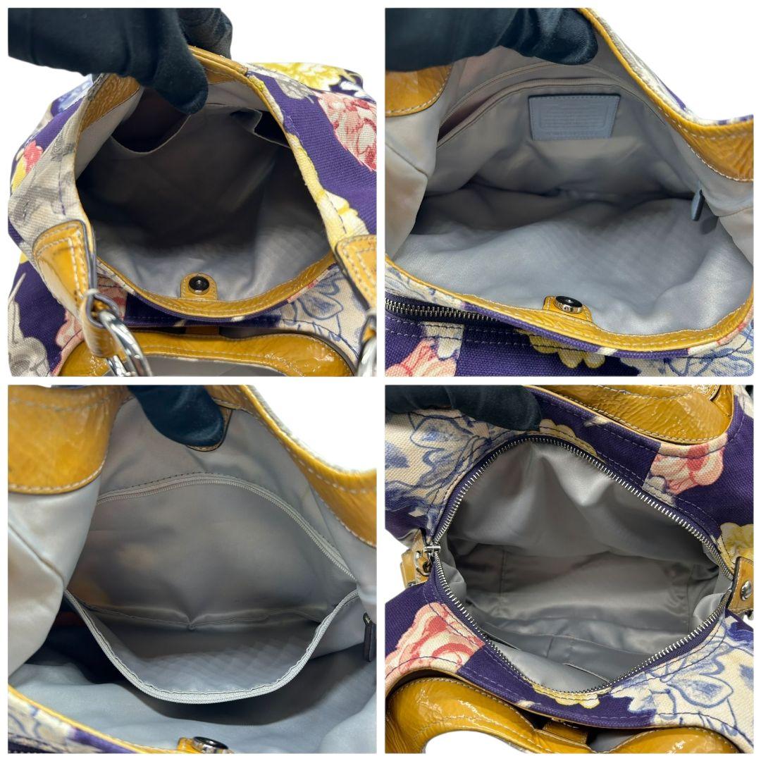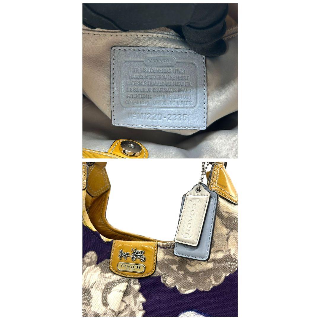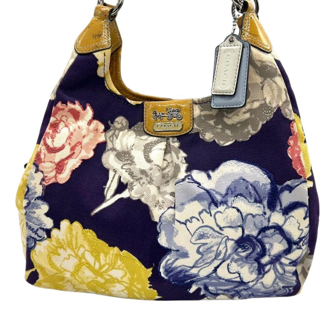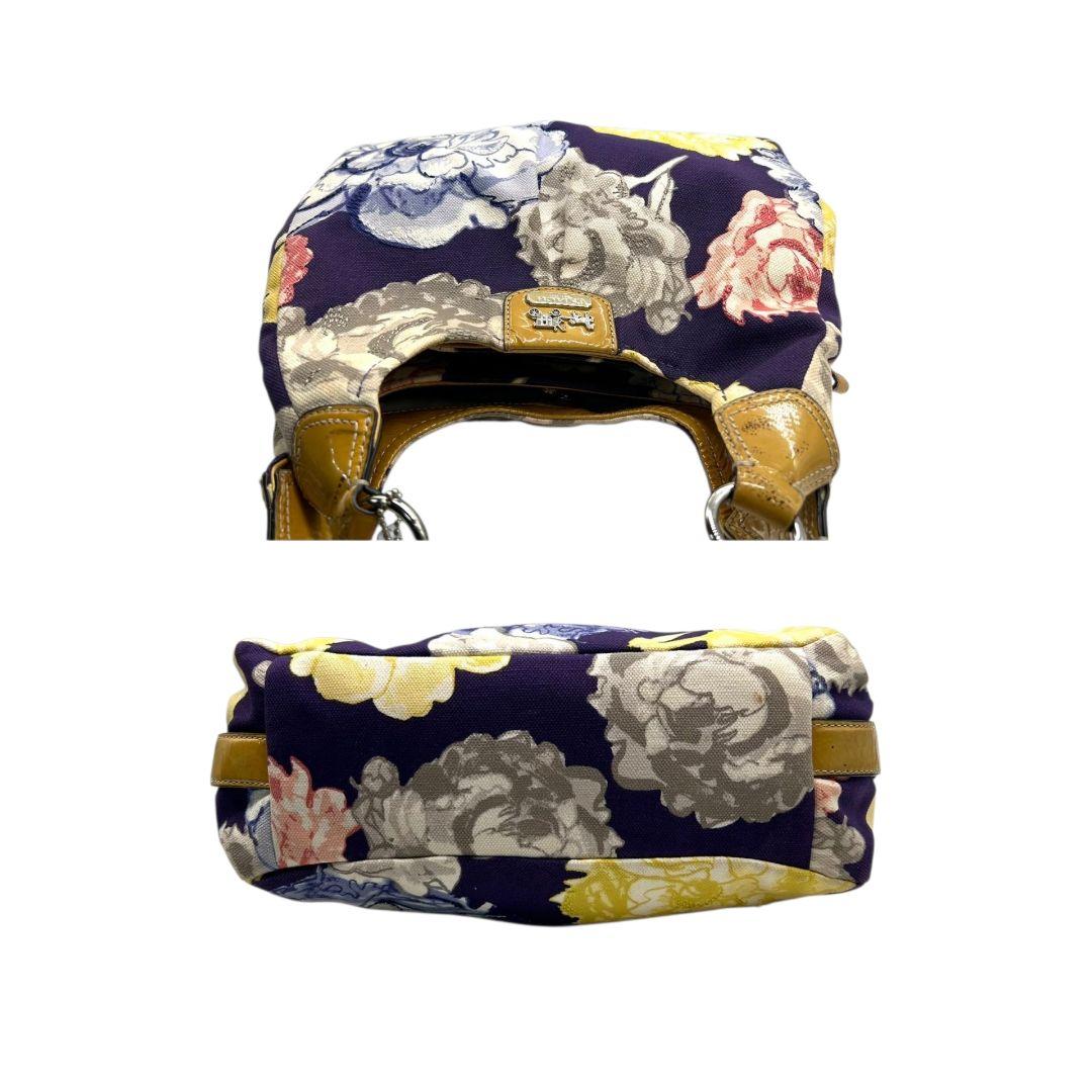コーチ ハンドバッグ 黄 ポピー フローラル キャンバス マディソン 本革 U9 23351 肩掛け可 肩かけ可 トートバッグ ショルダーバッグ パープル イエロー シルバー金具 パテントレザー ロゴタグ COACH マギー ワンショル