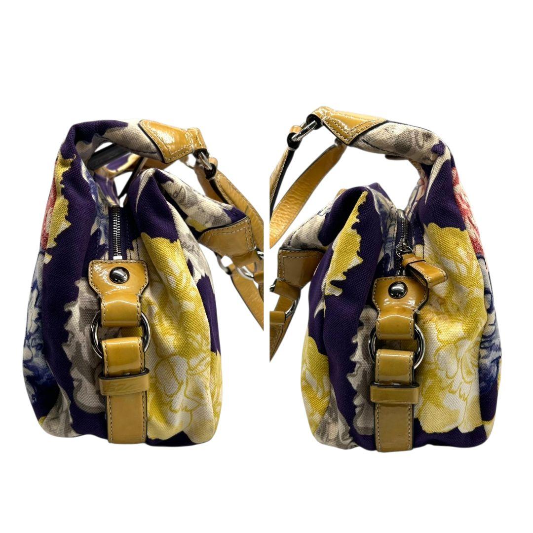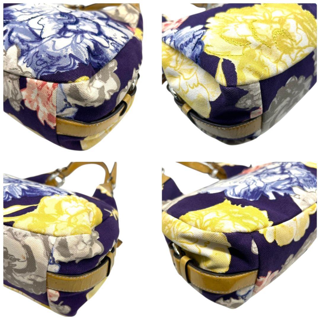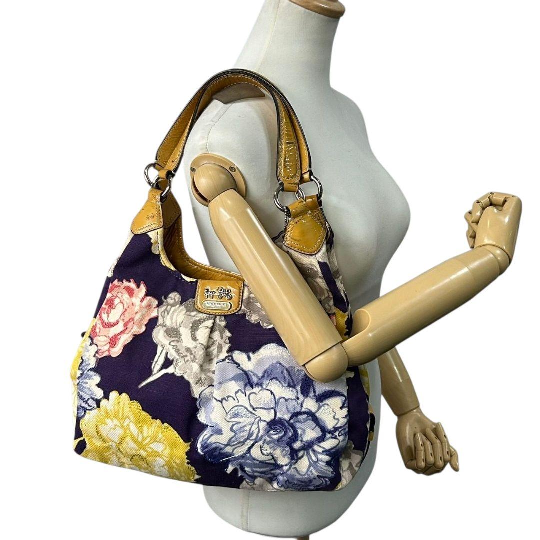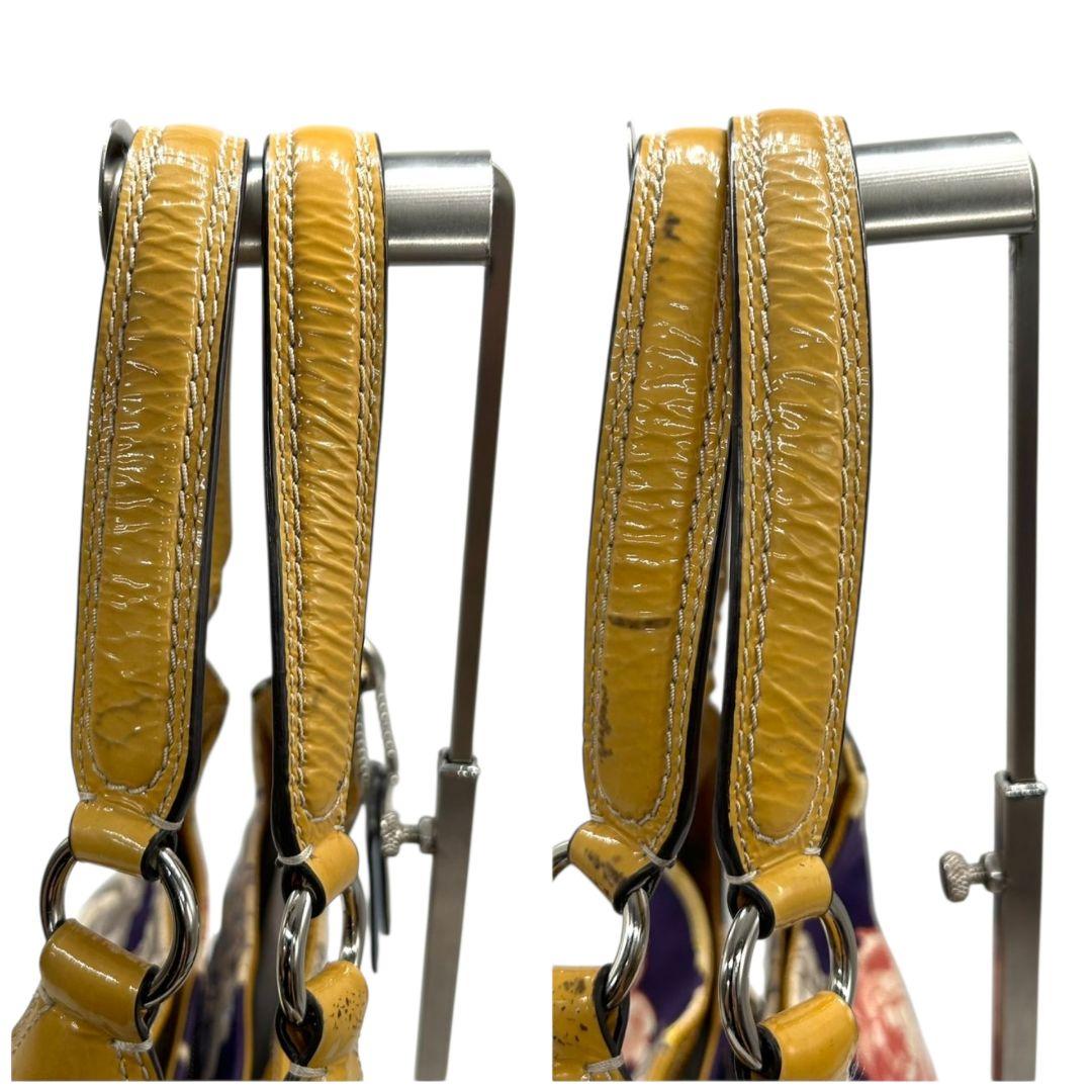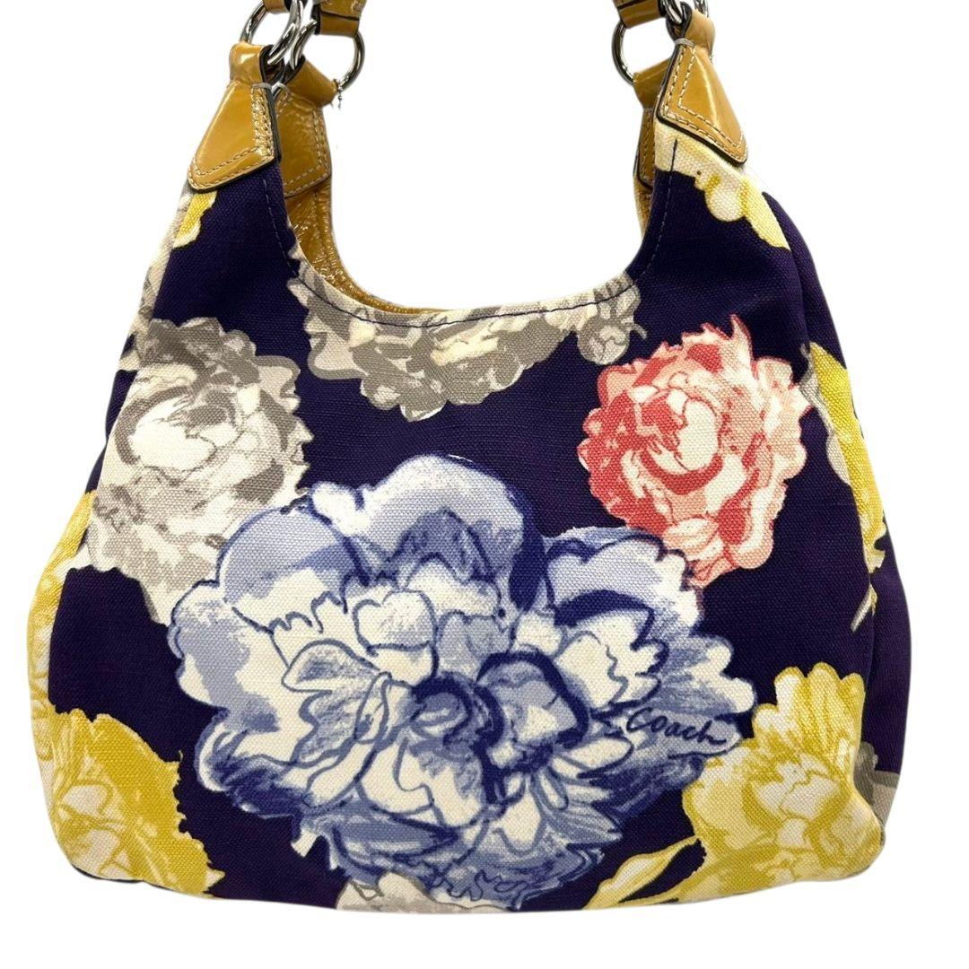 コーチ ハンドバッグ 黄 ポピー フローラル キャンバス マディソン 本革 U9 23351 肩掛け可 肩かけ可 トートバッグ ショルダーバッグ パープル イエロー シルバー金具 パテントレザー ロゴタグ COACH マギー ワンショル