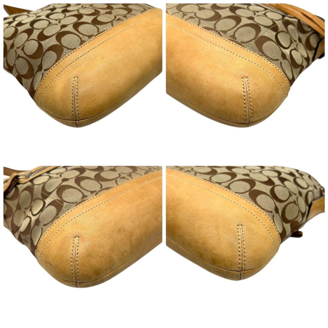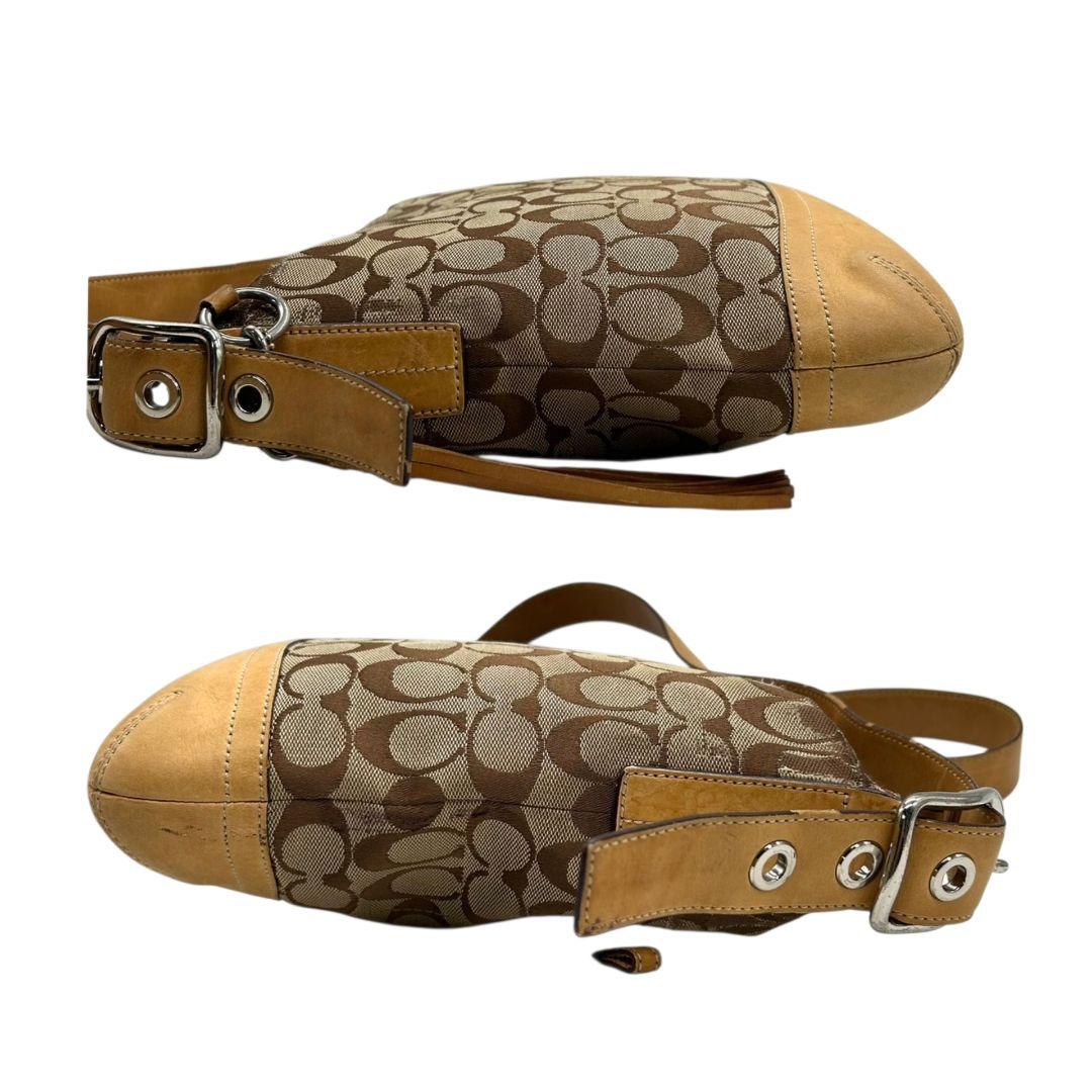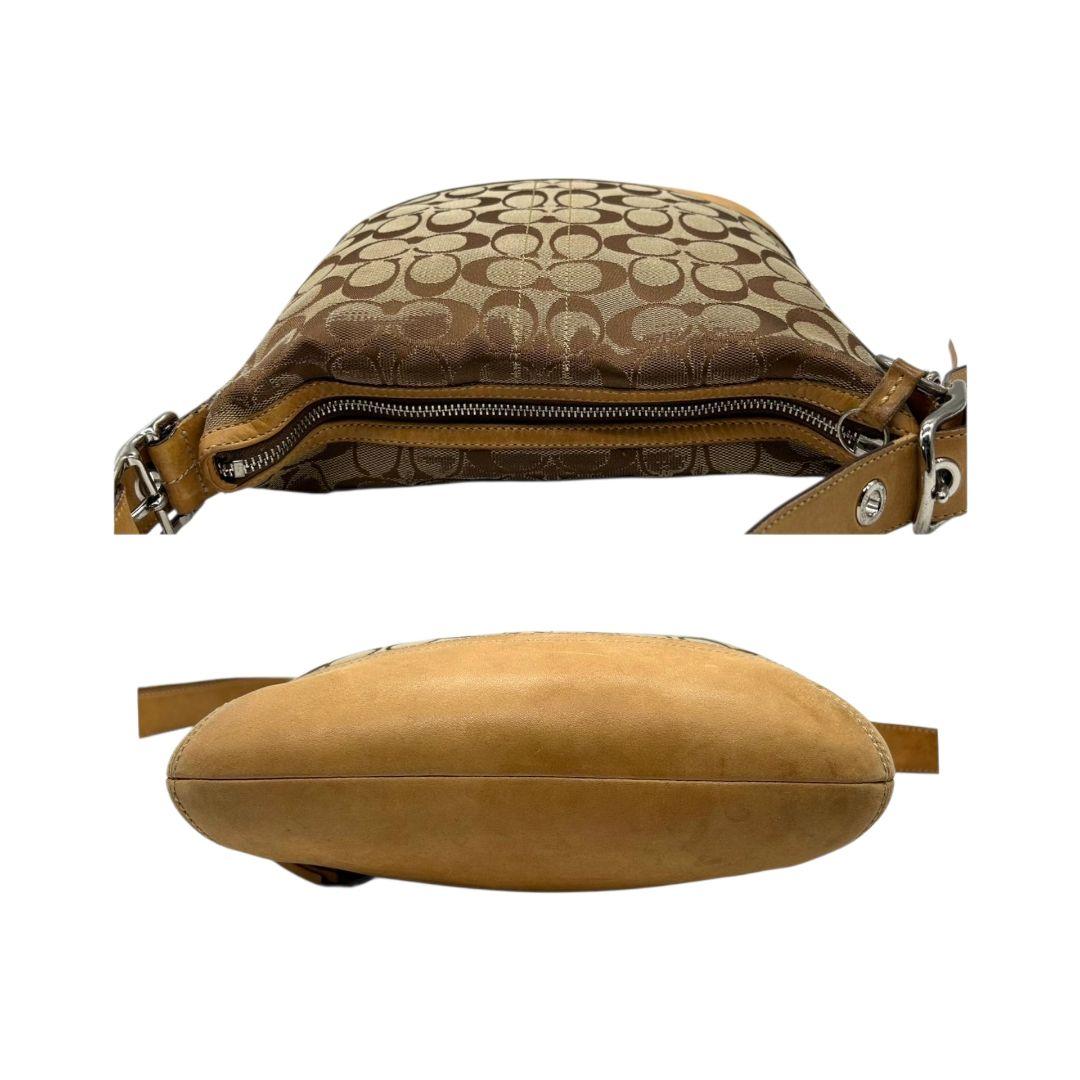 コーチ COACH ショルダーバッグ ブラウン 茶 シグネチャー ホーボー ソフトスリムダッフル 斜め掛け可 ワンショルダー キャンバス レザー 本革 タッセル シルバー金具 ロゴタグ 9362 U9