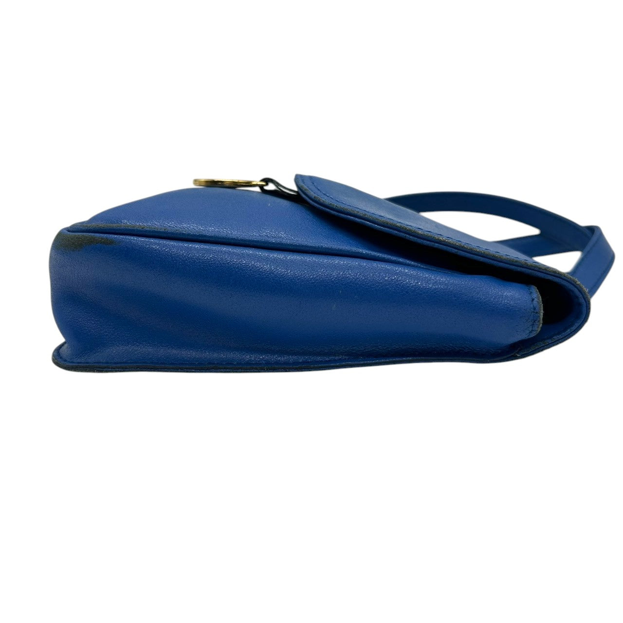 ランセル LANCEL ショルダーバッグ ポシェット ミニバッグ ヴィンテージ ビンテージ レザー 本革 ブルー 青 ゴールド金具 ロゴチャーム フラップ レディース クラシック レトロ 斜め掛け可 肩掛け おしゃれ 可愛い クリーニング済み s39