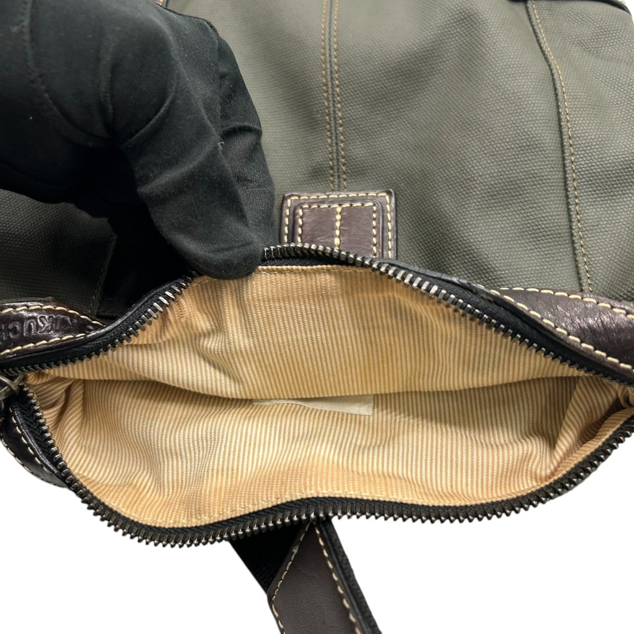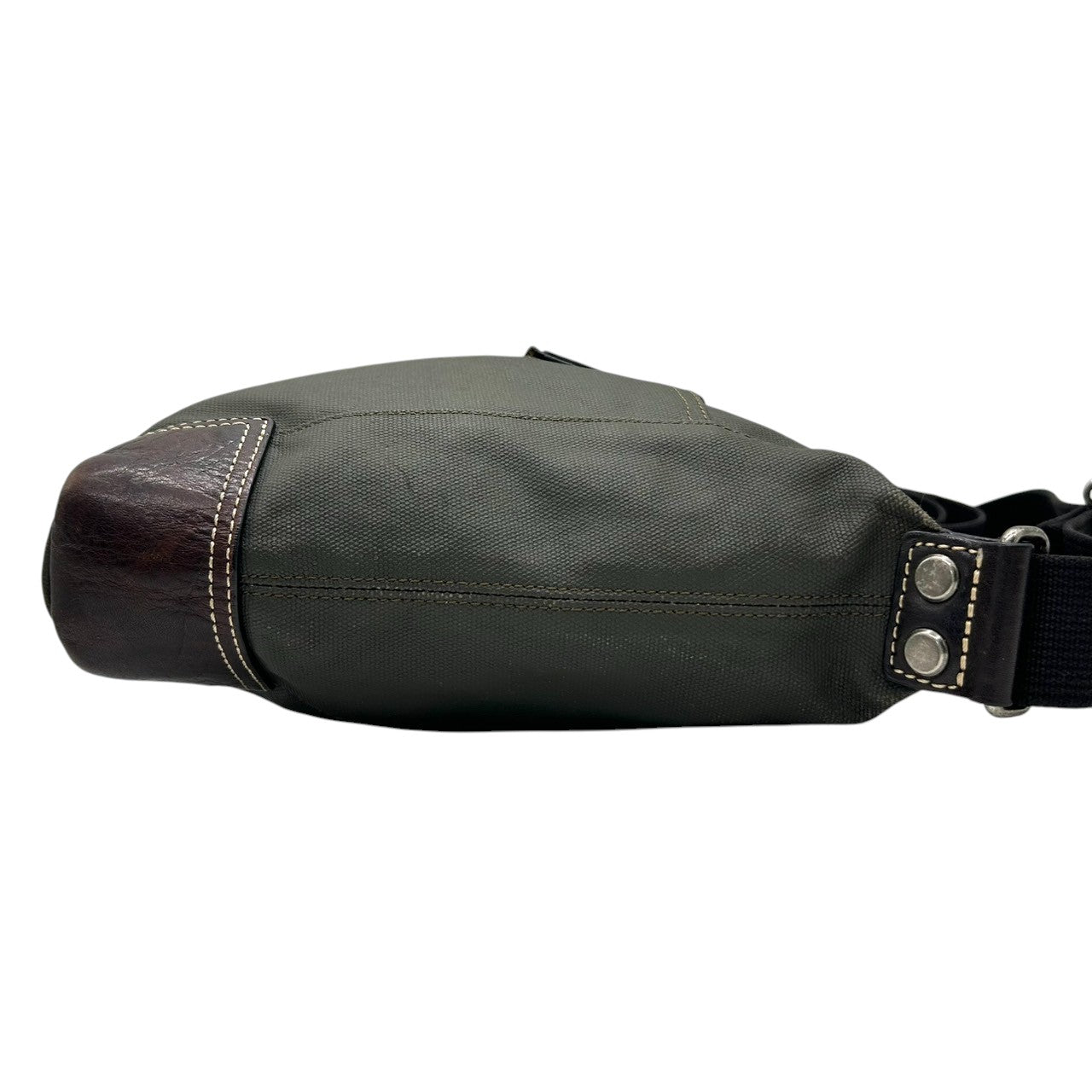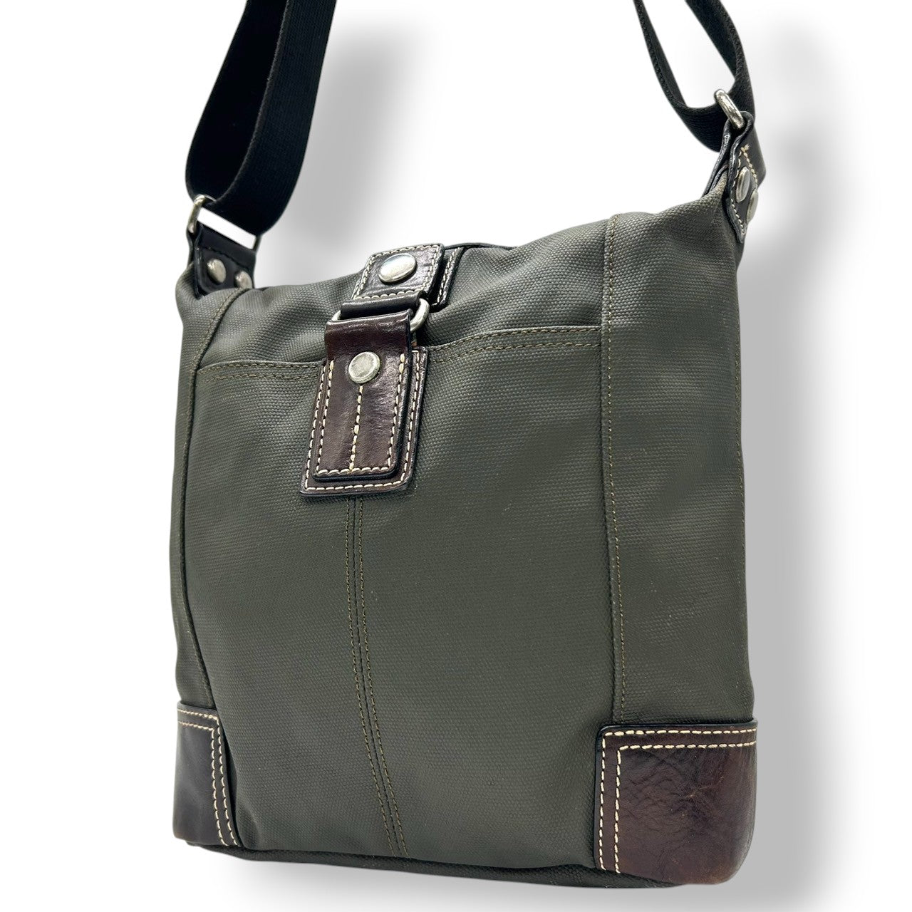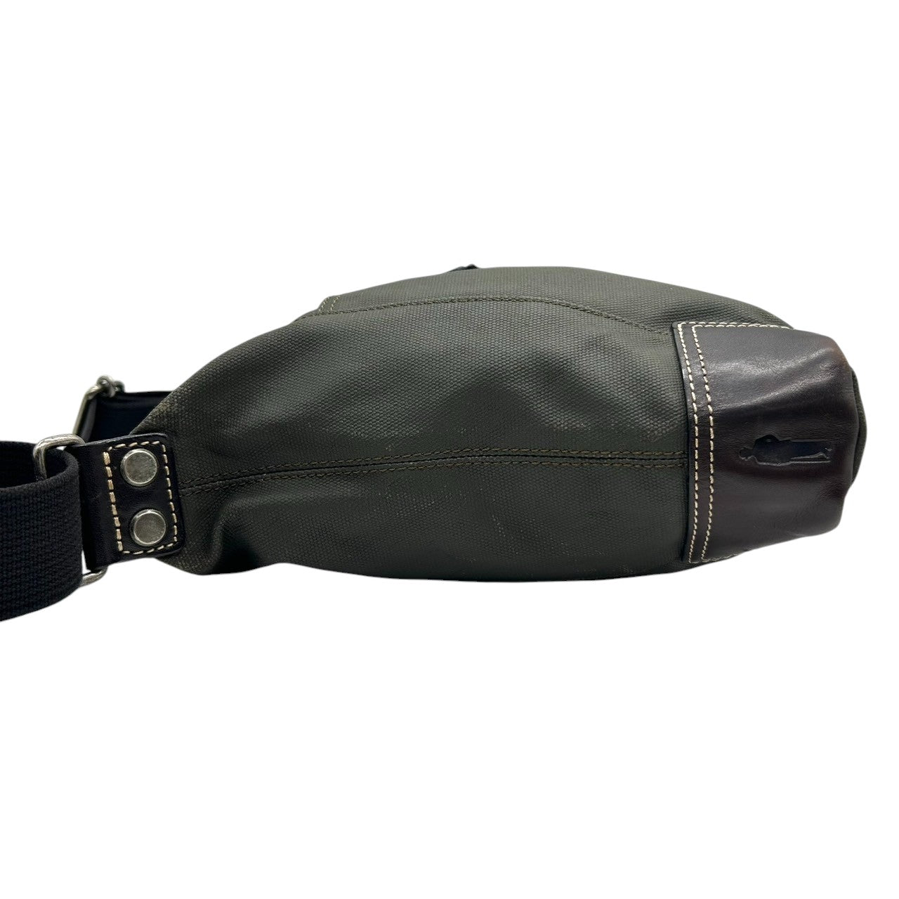 【美品】タケオキクチ TAKEO KIKUCHI ショルダーバッグ ナイロン レザー モスグリーン ブラウン メンズ 斜め掛け ACE社製 軽量 カジュアル ビジネス 通勤 通学 スタイリッシュ 機能的 クリーニング済み s39