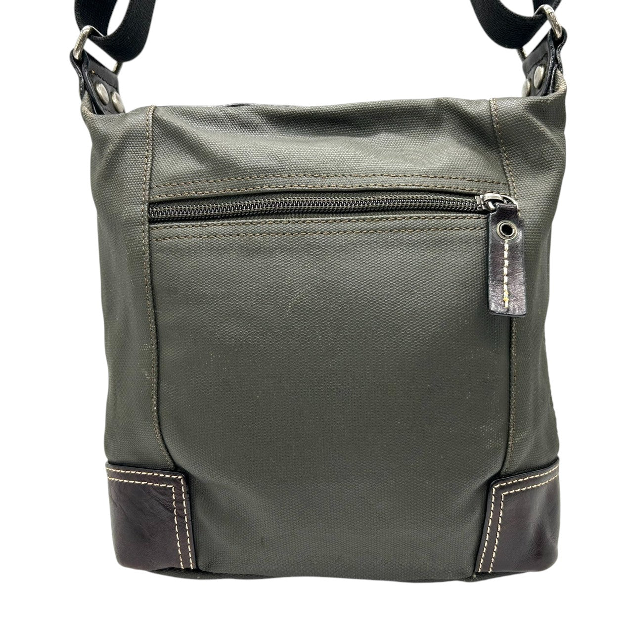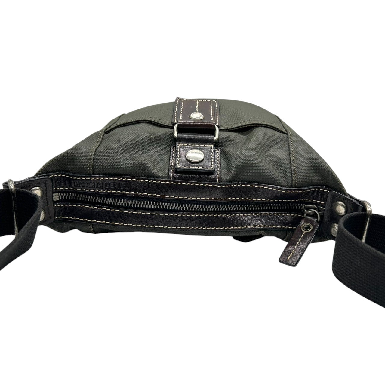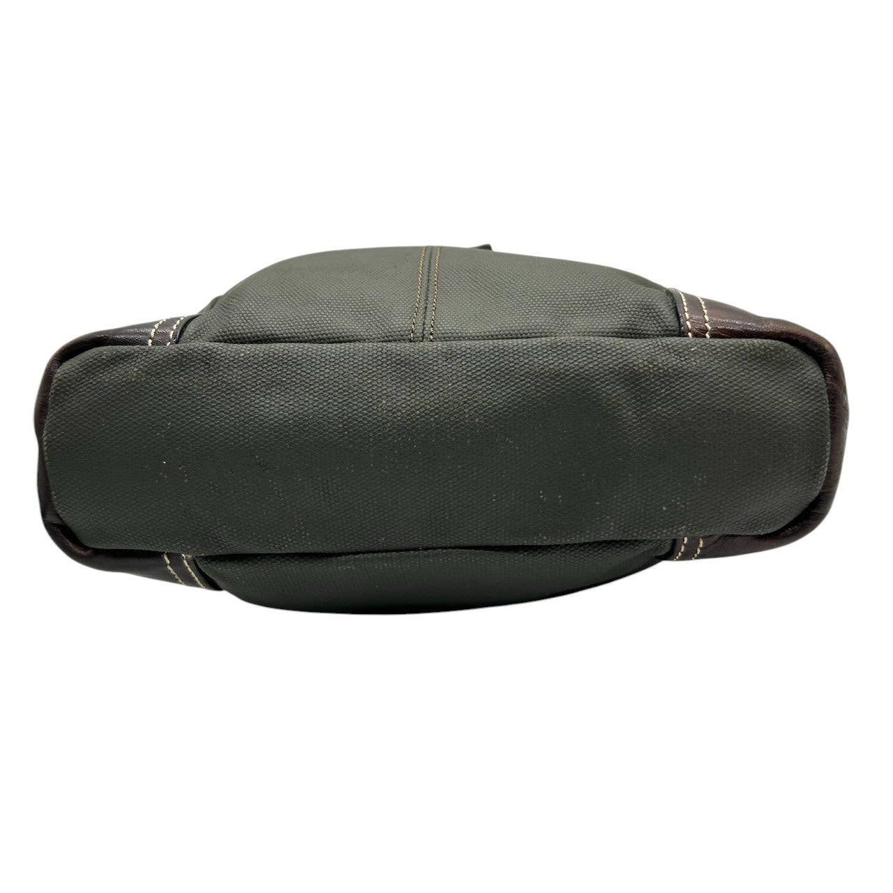 【美品】タケオキクチ TAKEO KIKUCHI ショルダーバッグ ナイロン レザー モスグリーン ブラウン メンズ 斜め掛け ACE社製 軽量 カジュアル ビジネス 通勤 通学 スタイリッシュ 機能的 クリーニング済み s39