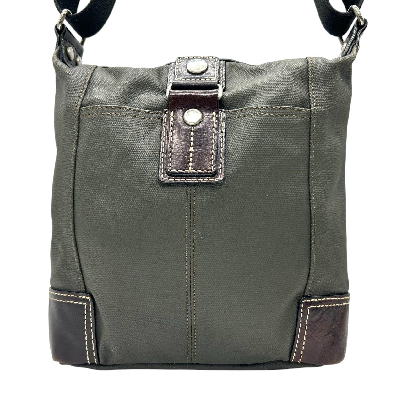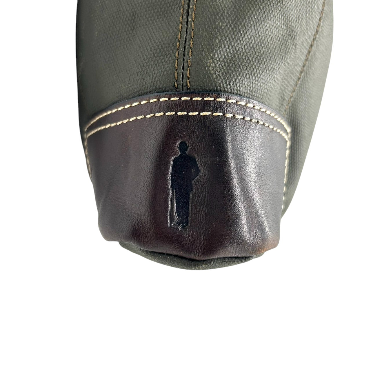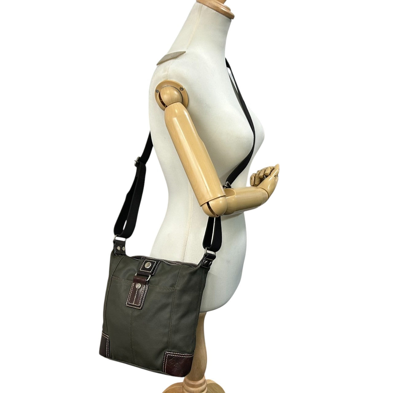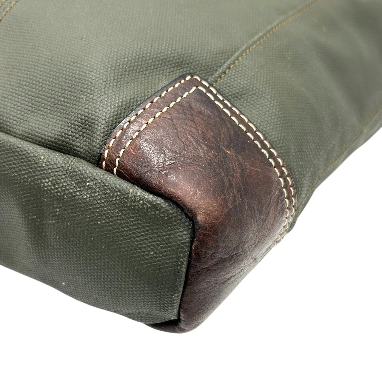 【美品】タケオキクチ TAKEO KIKUCHI ショルダーバッグ ナイロン レザー モスグリーン ブラウン メンズ 斜め掛け ACE社製 軽量 カジュアル ビジネス 通勤 通学 スタイリッシュ 機能的 クリーニング済み s39
