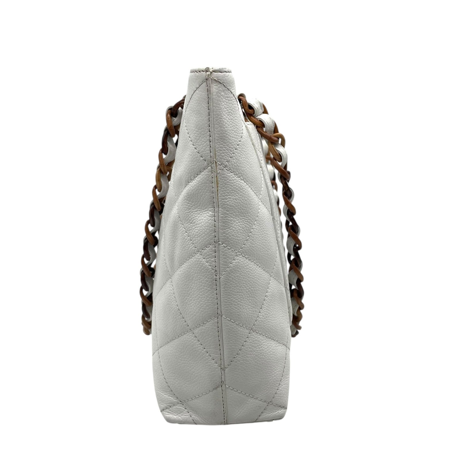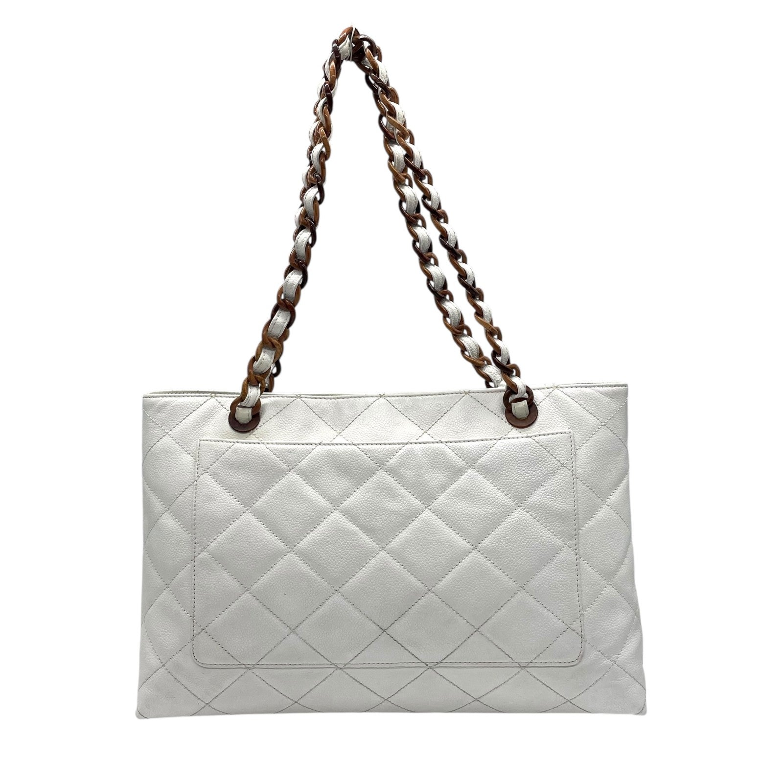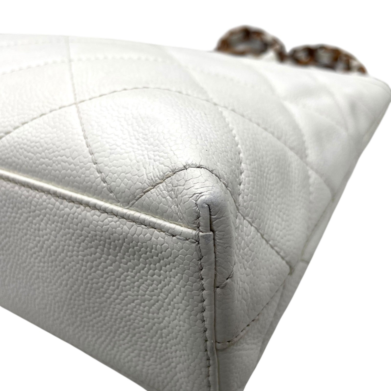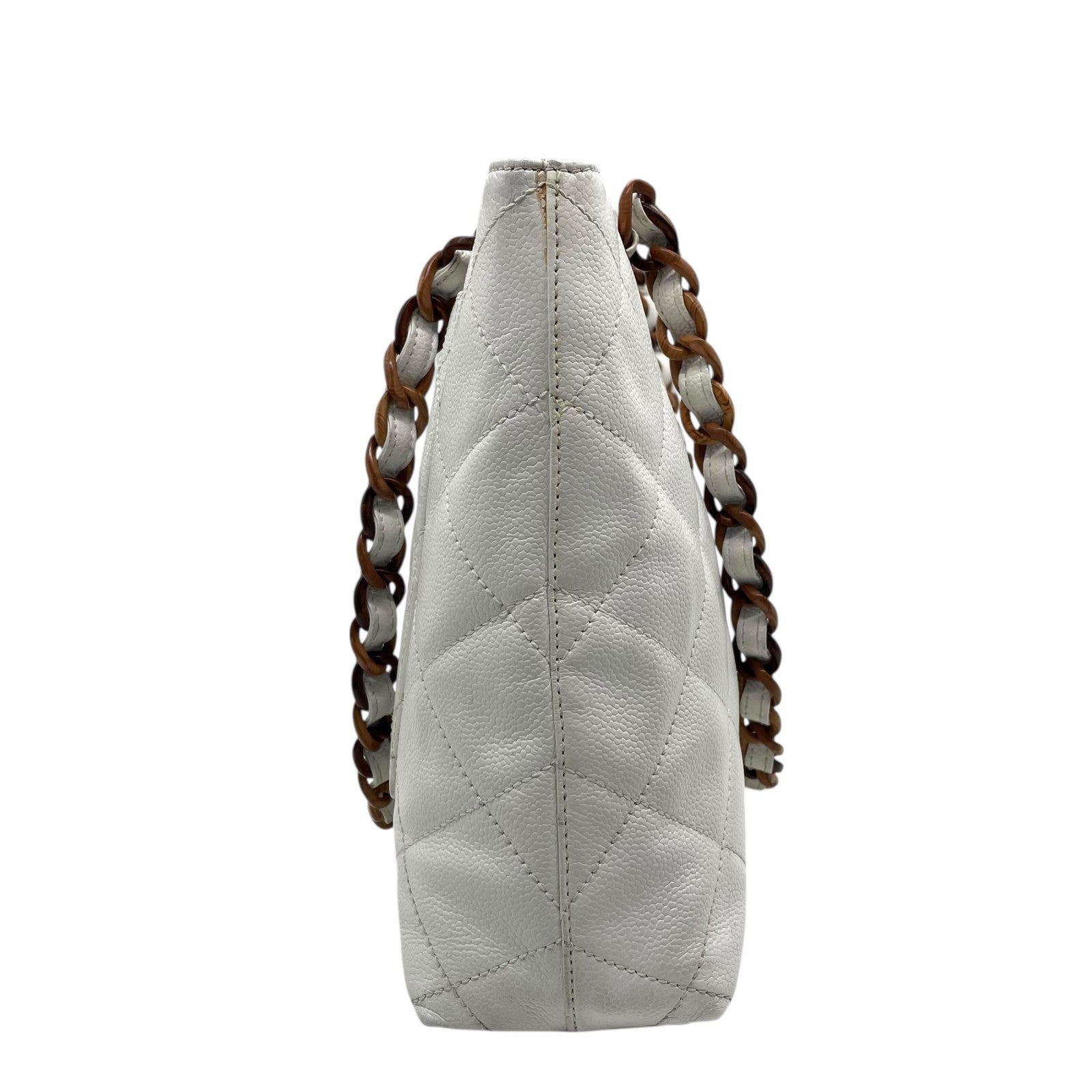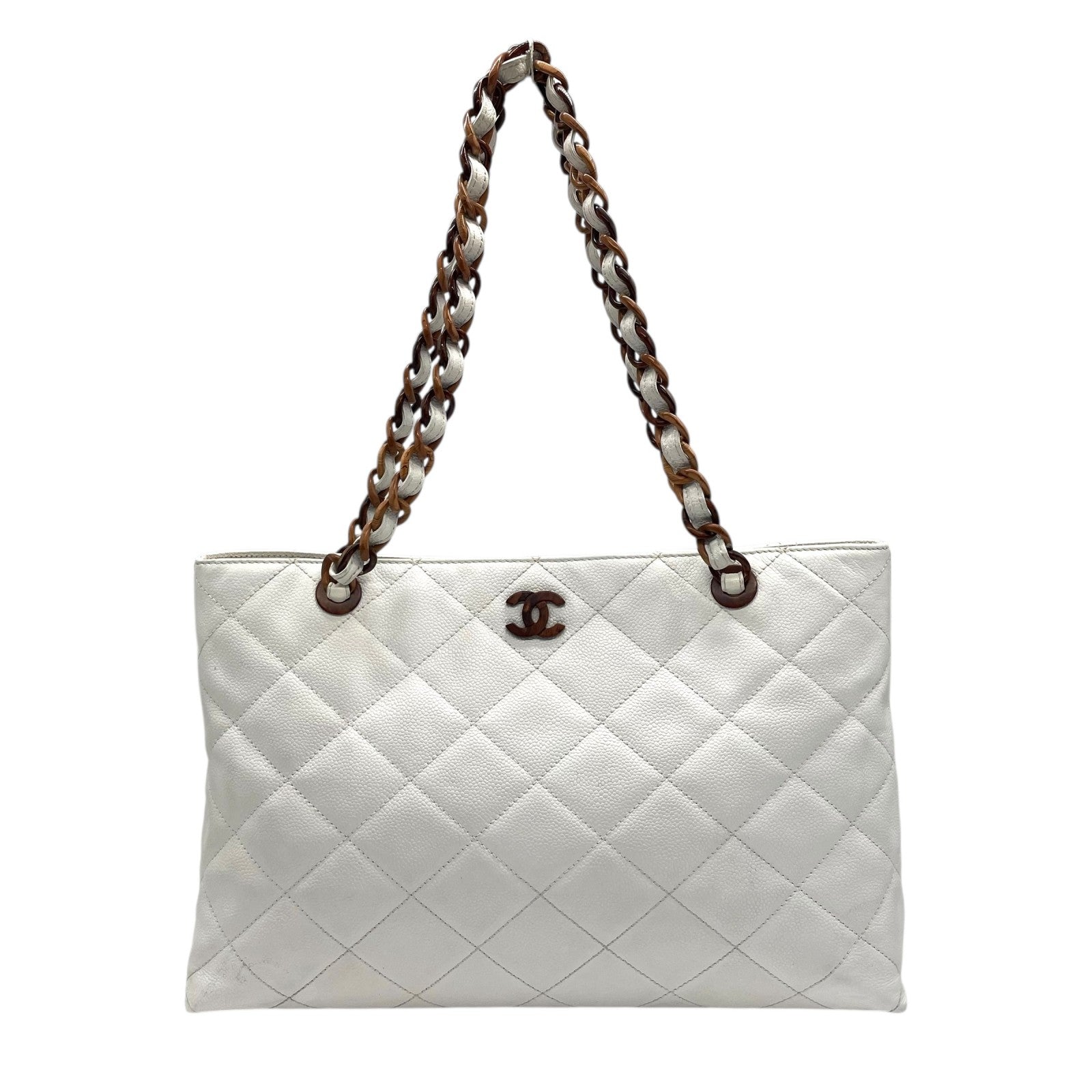 シャネル CHANEL トートバッグ キャビアスキン マトラッセ ココマーク 白 ホワイト ブラウンチェーン シルバー金具 C