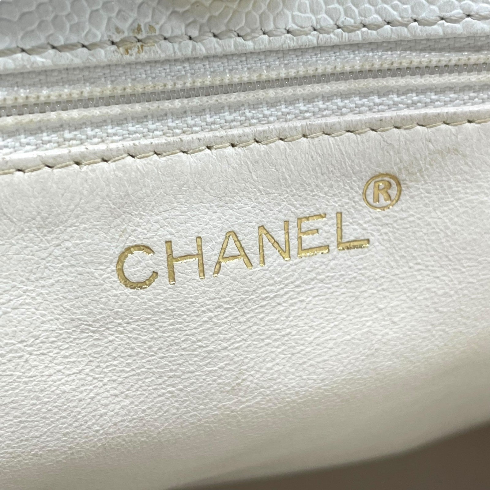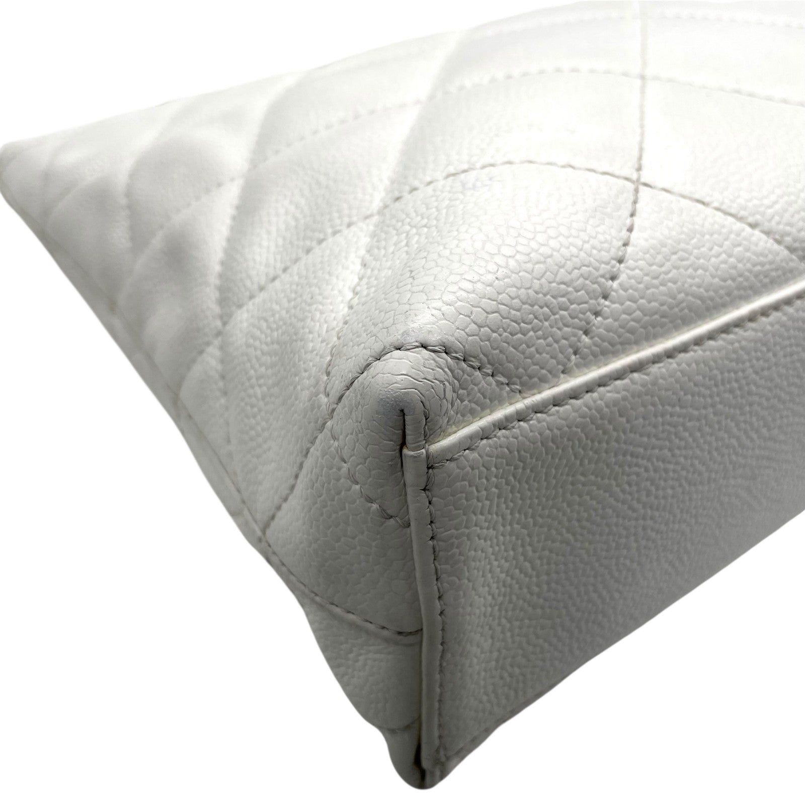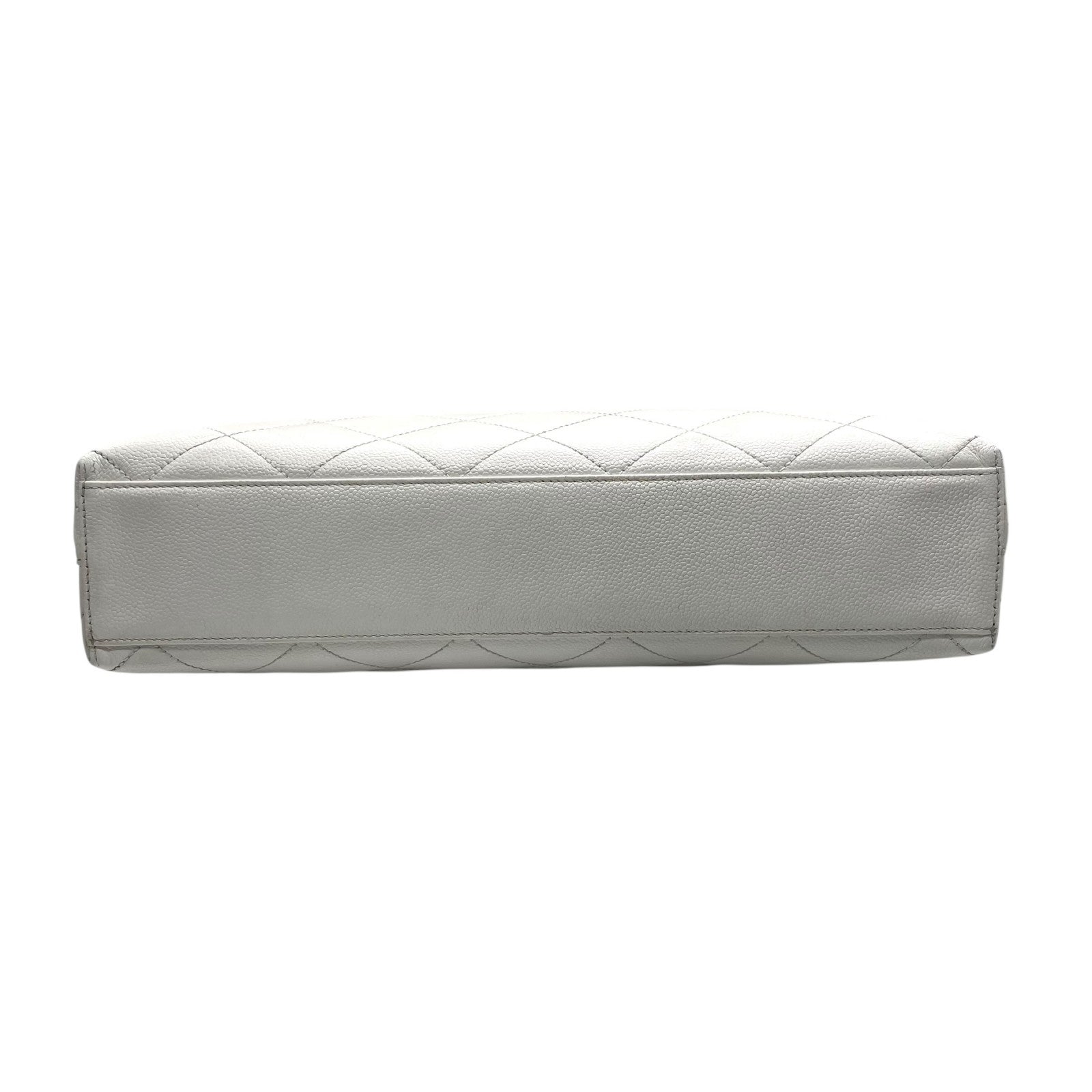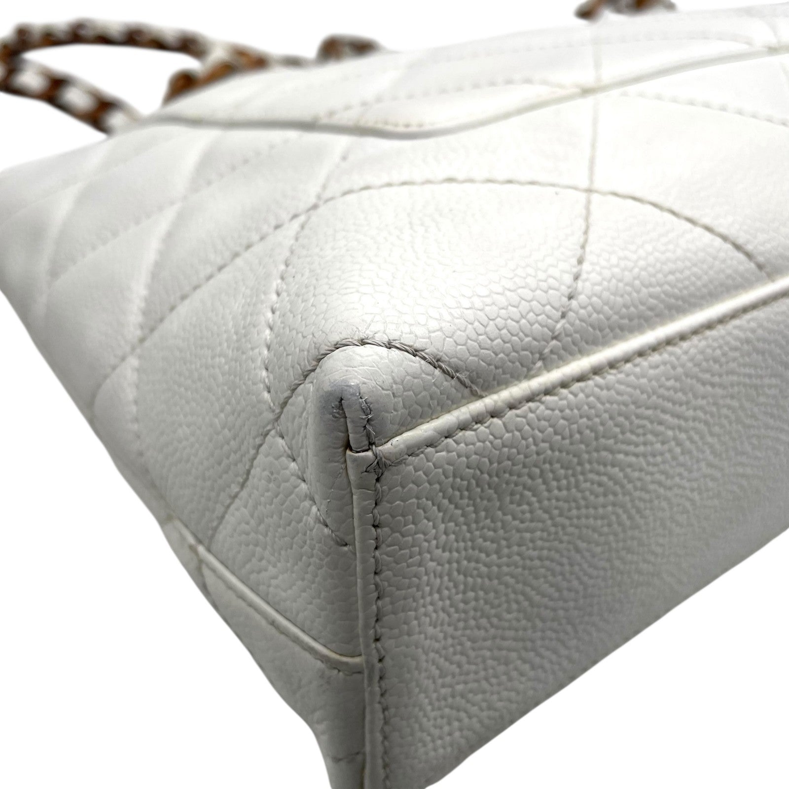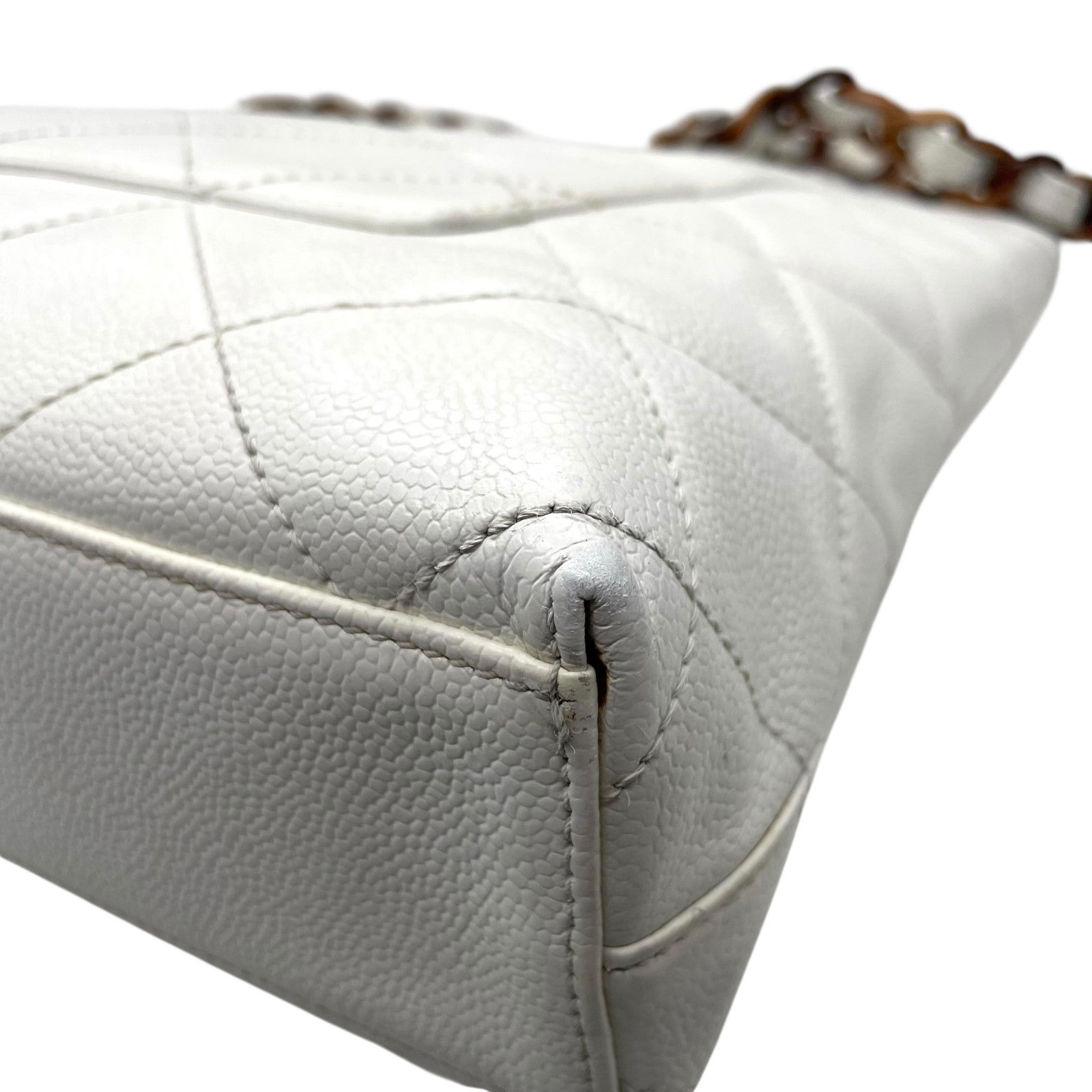 シャネル CHANEL トートバッグ キャビアスキン マトラッセ ココマーク 白 ホワイト ブラウンチェーン シルバー金具 C