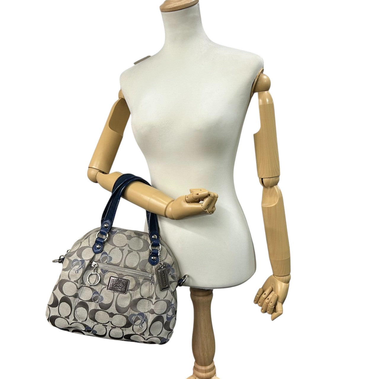 コーチ COACH 2WAY ハンドバッグ ショルダーバッグ ポピー シグネチャー スポットライト 18704 キャンバス パテントレザー グレー ネイビー レディース エレガント フェミニン 定番人気モデル 肩掛け 斜め掛け可 クリーニング済み s29