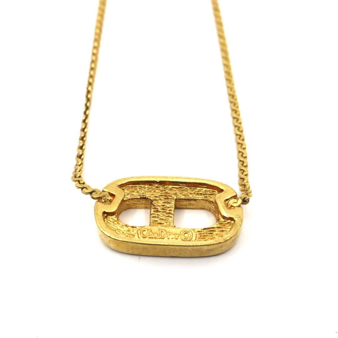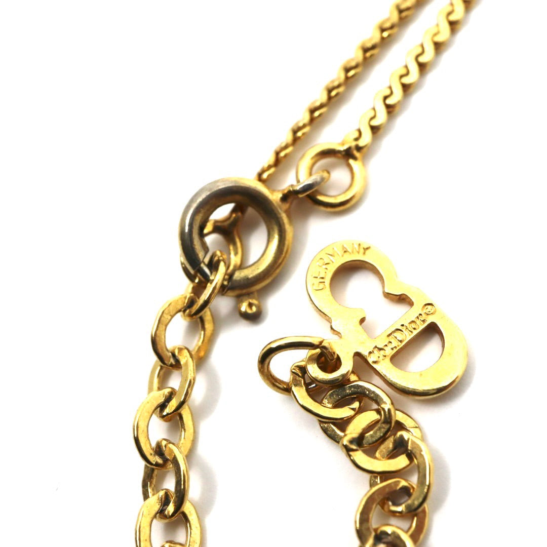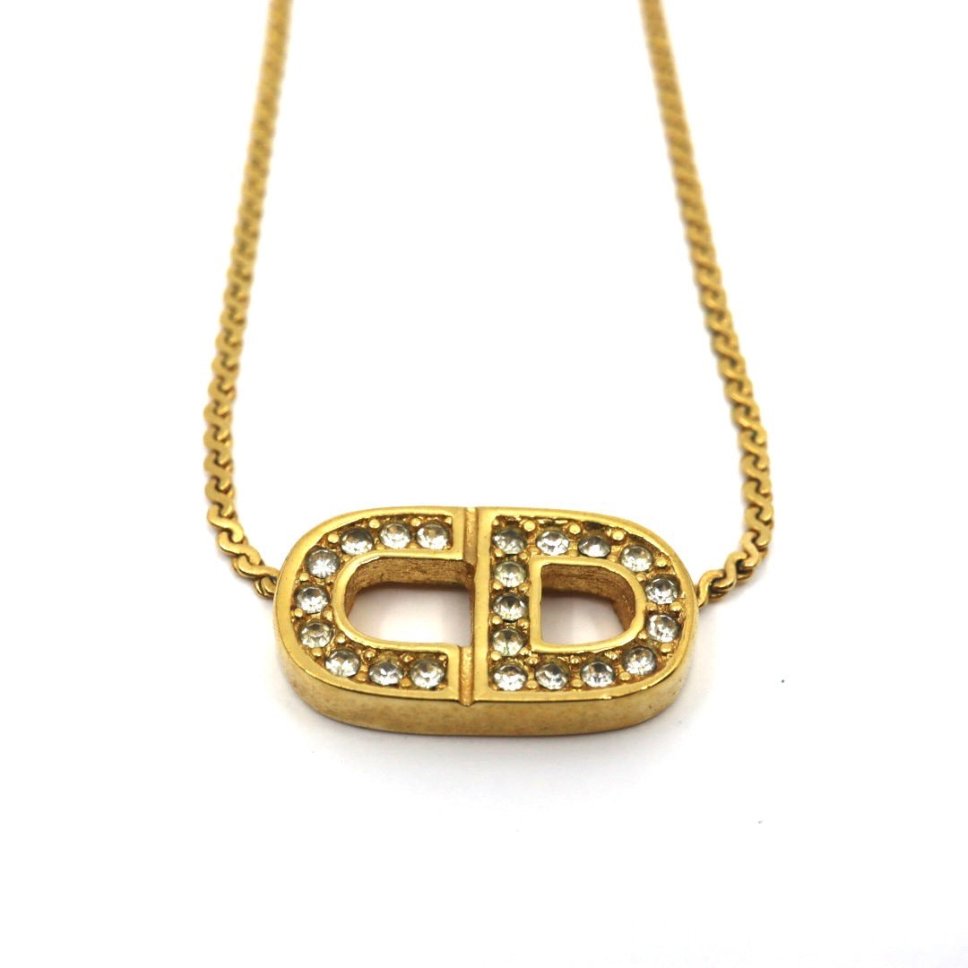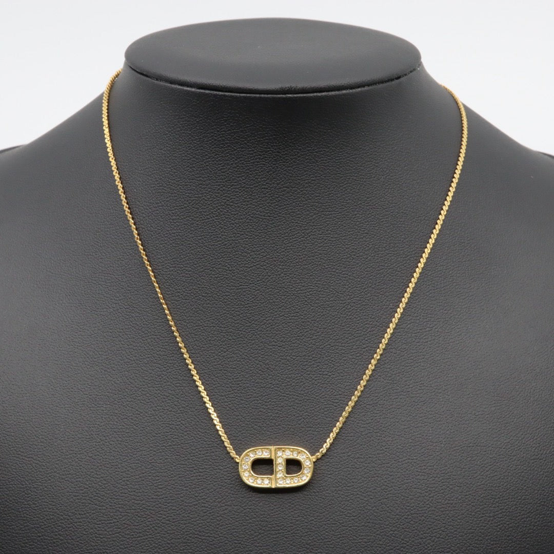 クリスチャンディオール Christian Dior ヴィンテージ ネックレス CDロゴ ラインストーン 金 ゴールドカラー アクセサリー I2