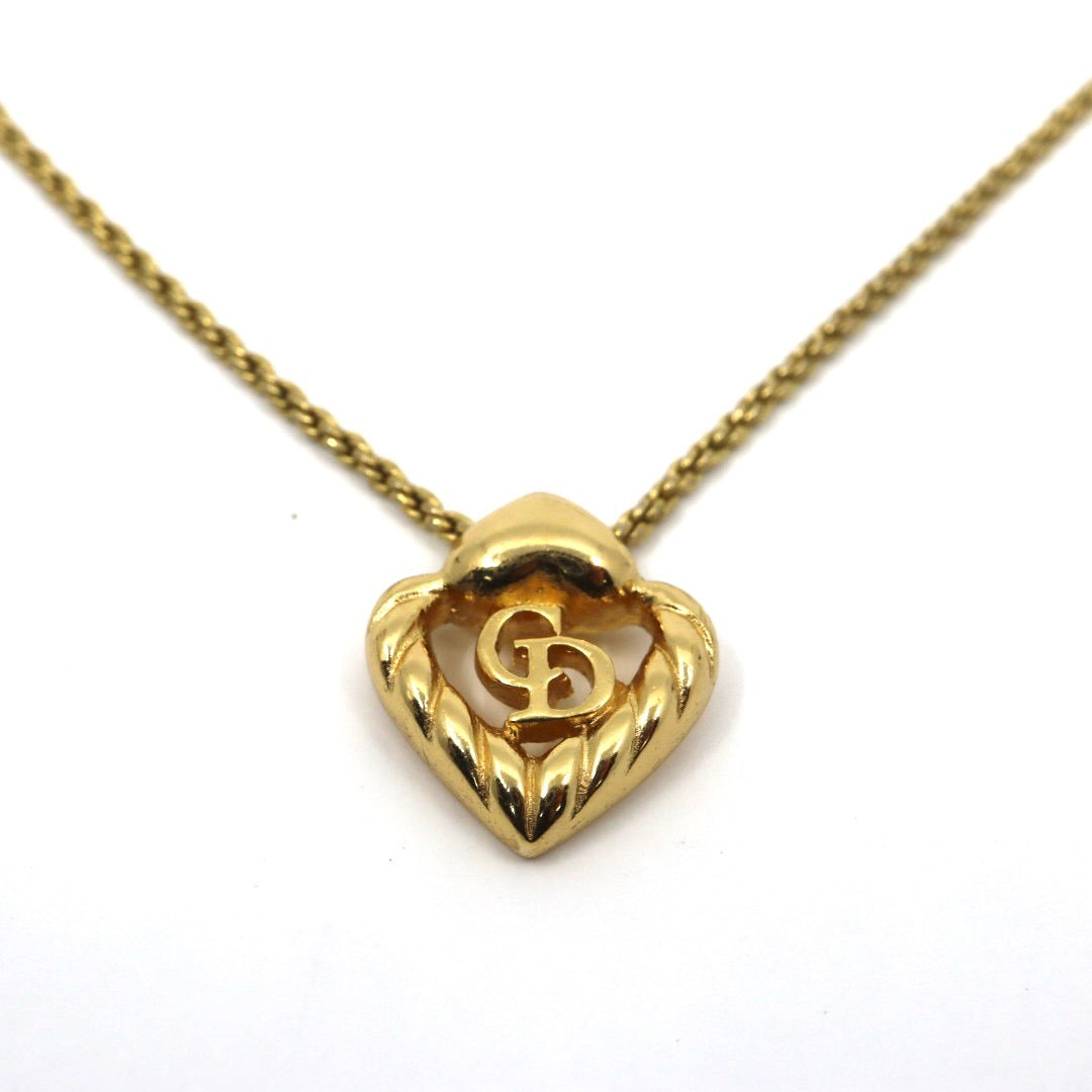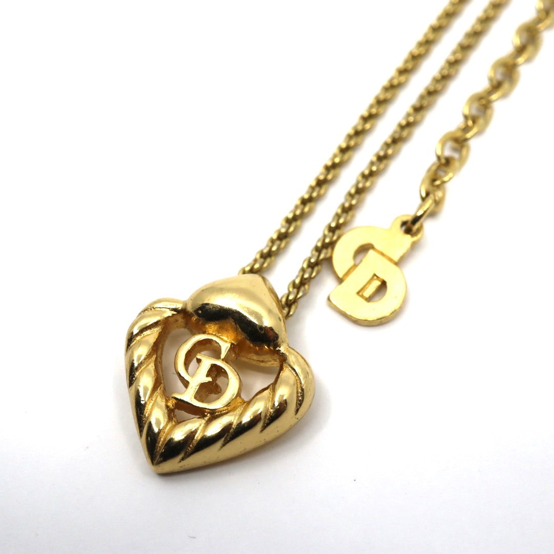 ディオール Dior ヴィンテージ ネックレス ハート モチーフ CDロゴ 金 ゴールドカラー アクセサリー I2