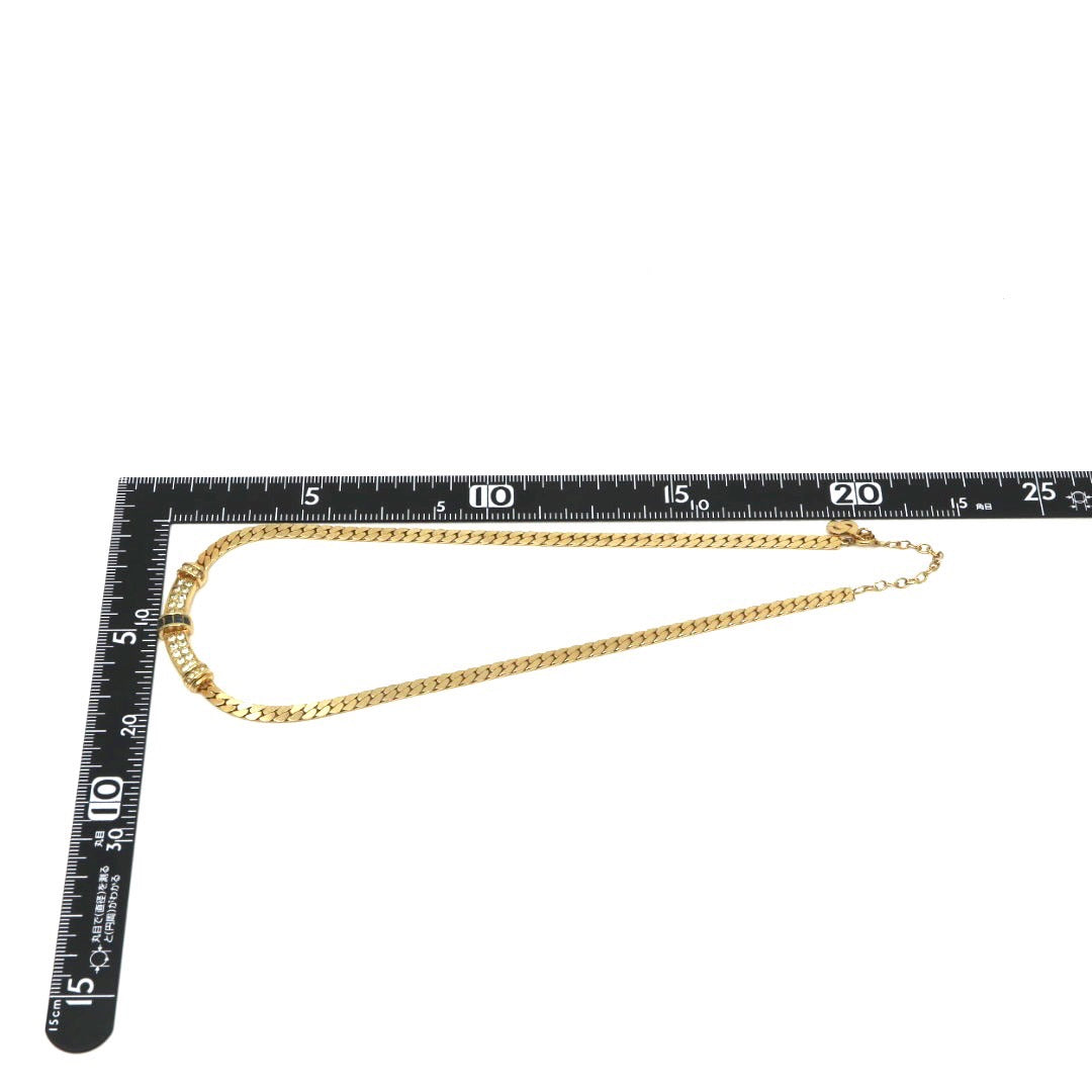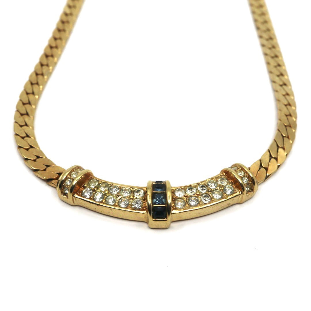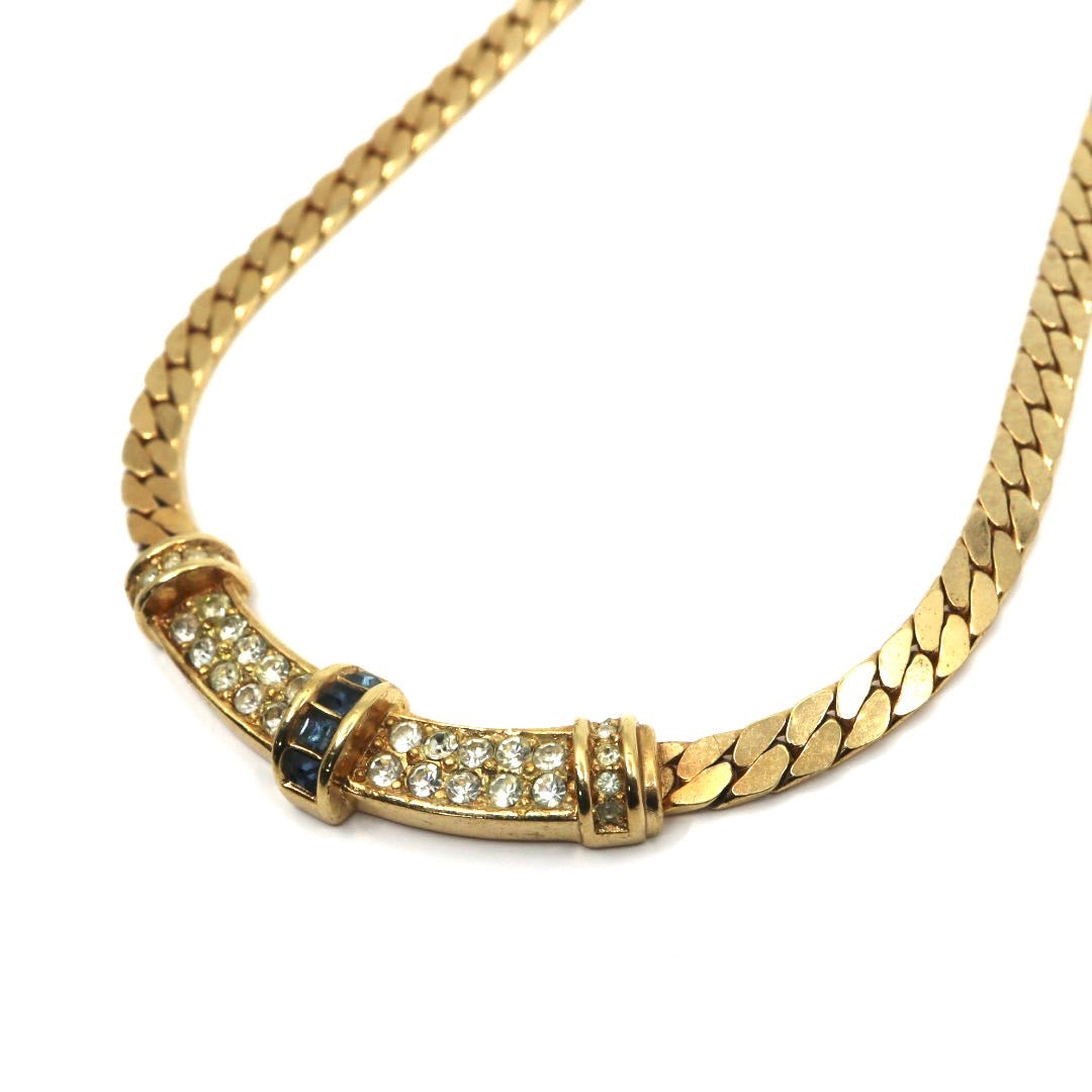 ディオール Dior ヴィンテージ ネックレス 金 ゴールド ラインストーン×ブルー クラシカル 喜平チェーン I2