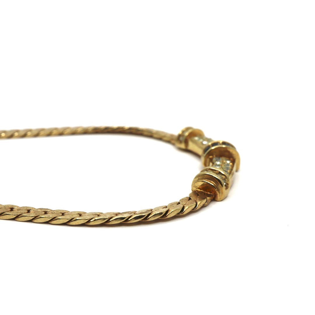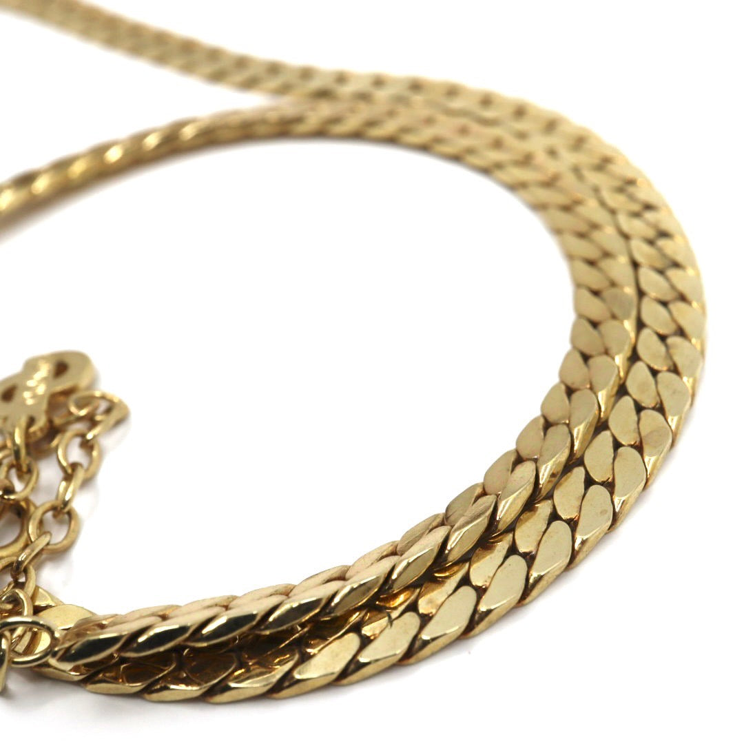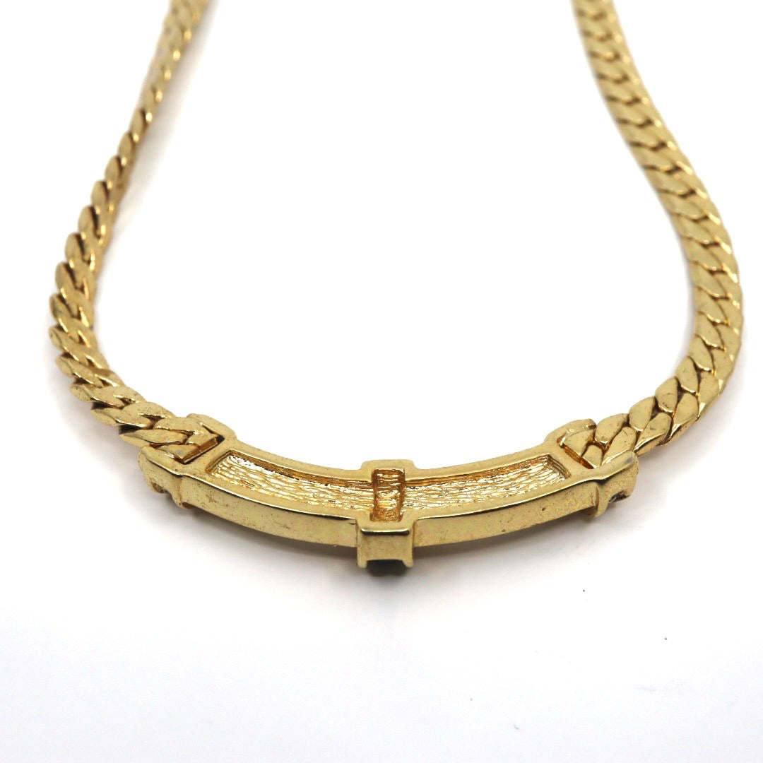 ディオール Dior ヴィンテージ ネックレス 金 ゴールド ラインストーン×ブルー クラシカル 喜平チェーン I2
