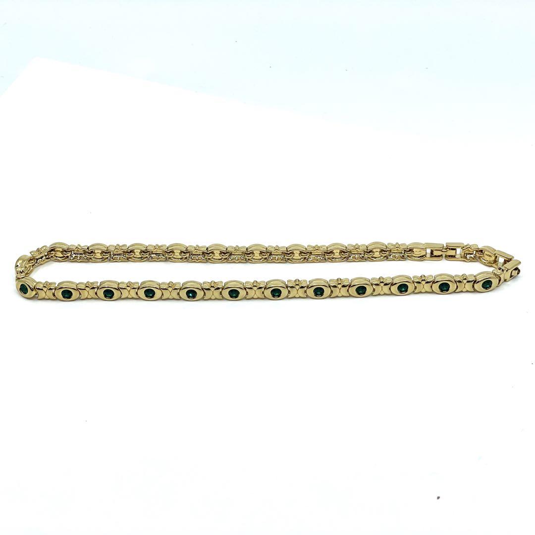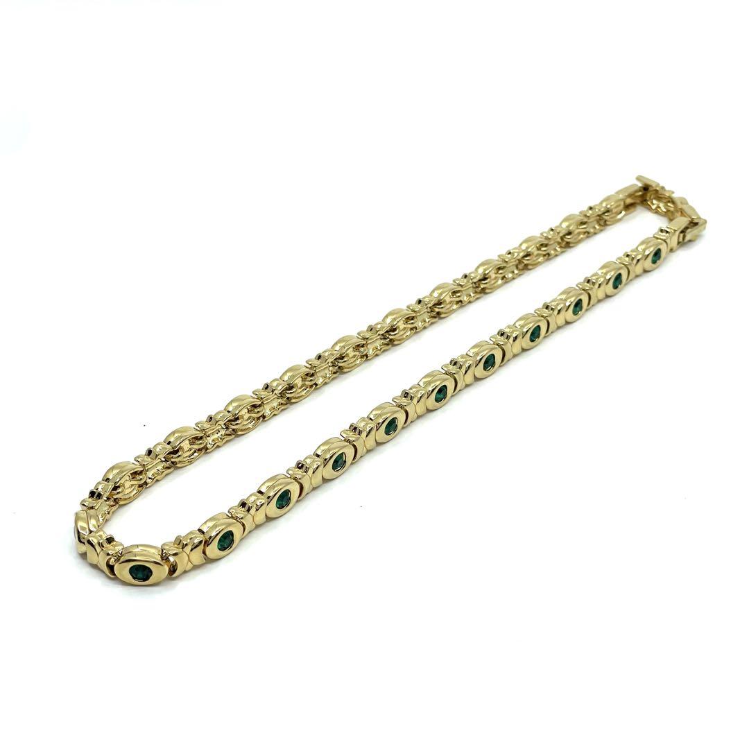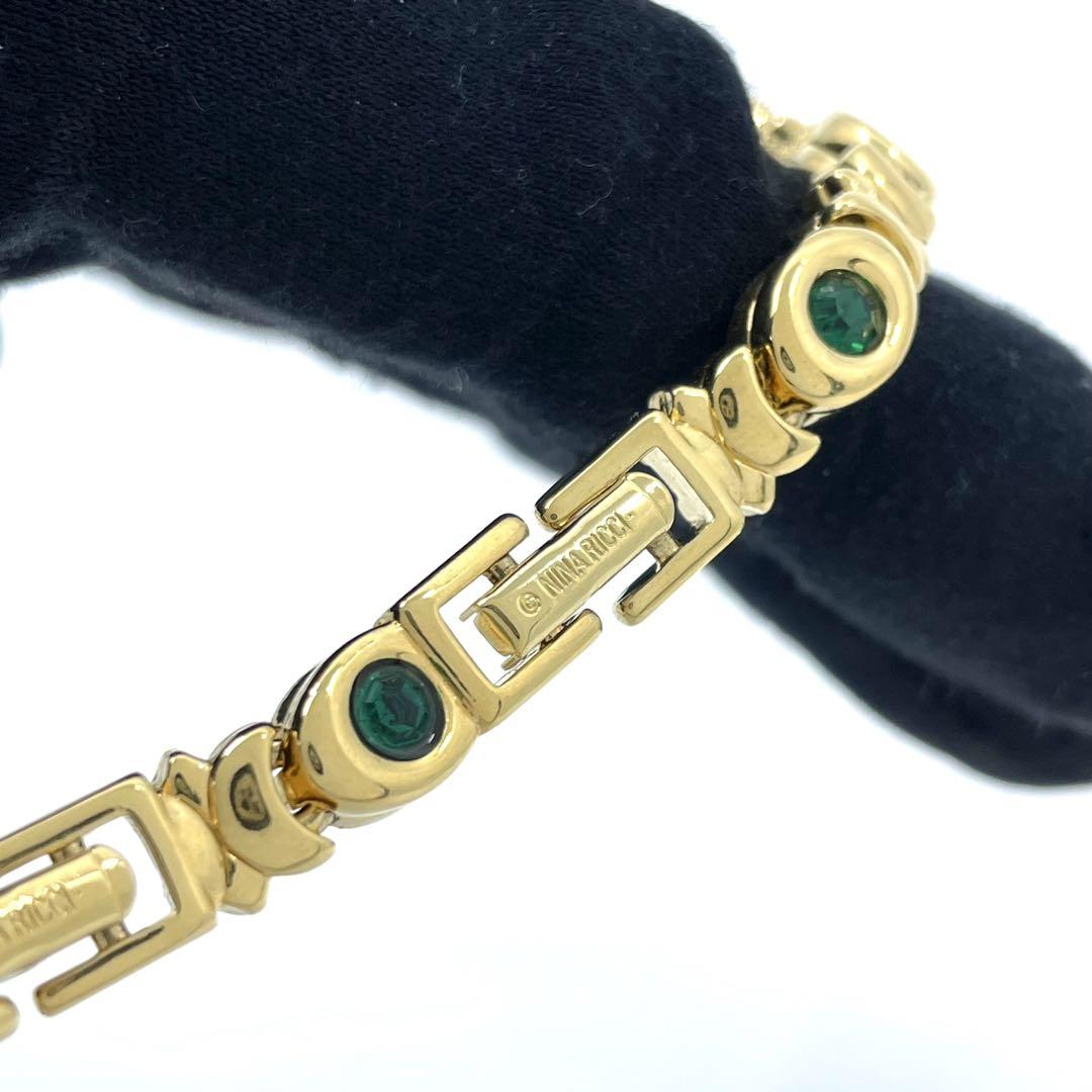 美品 ニナリッチ NINARICCI ゴールド チェーンネックレス グリーンストーン 高級 冠婚葬祭 フォーマル アクセサリー ロゴ刻印 レディース