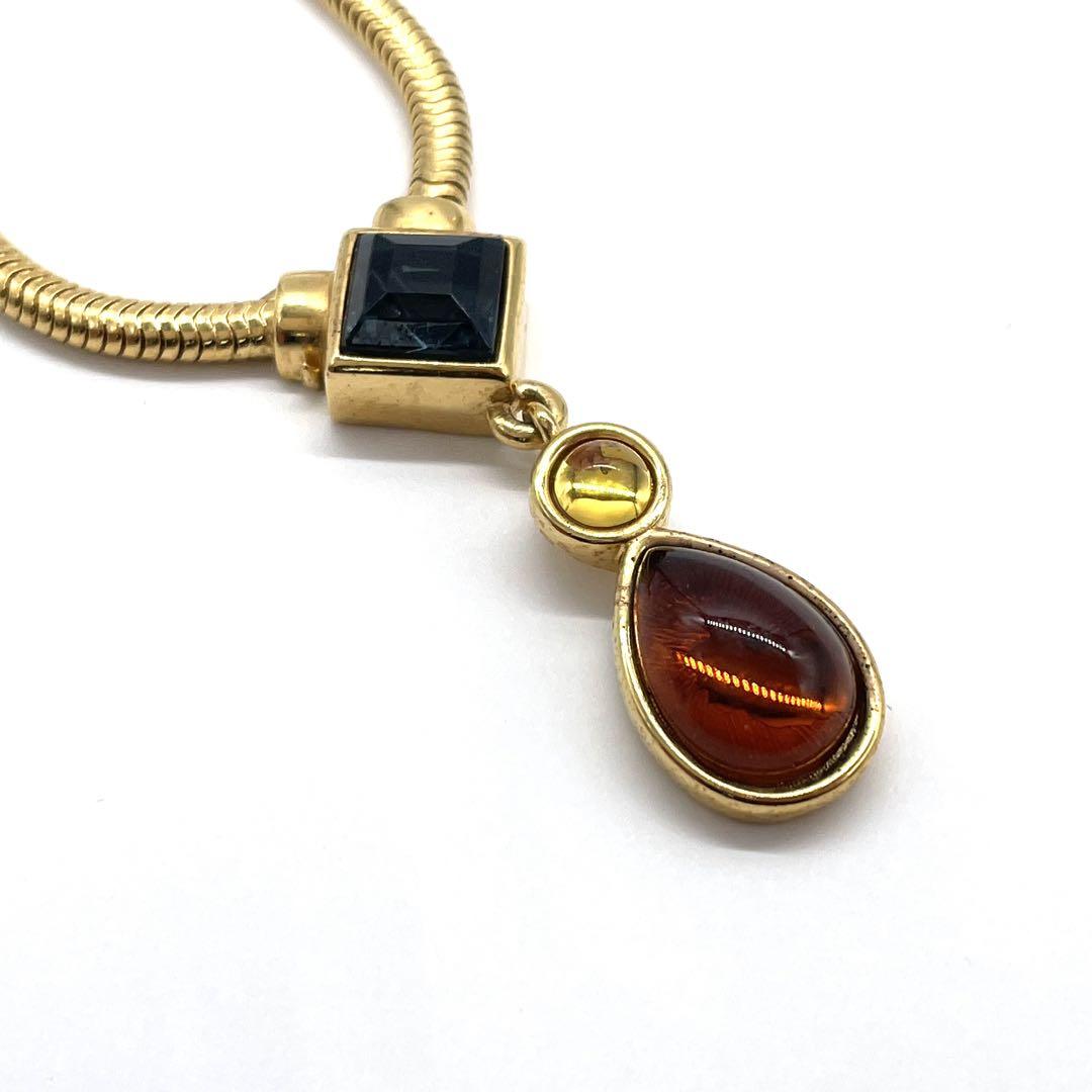 美品 モネ MONET ネックレス i6 カラーストーン ゴールド オレンジ ネイビー レディース アクセサリー ゴールド金具 ロゴ刻印 パリ 高級