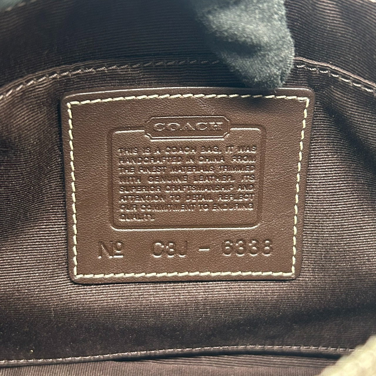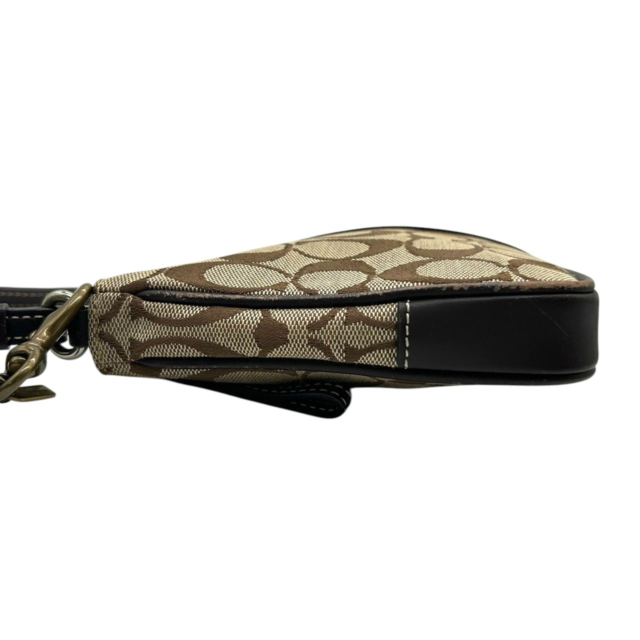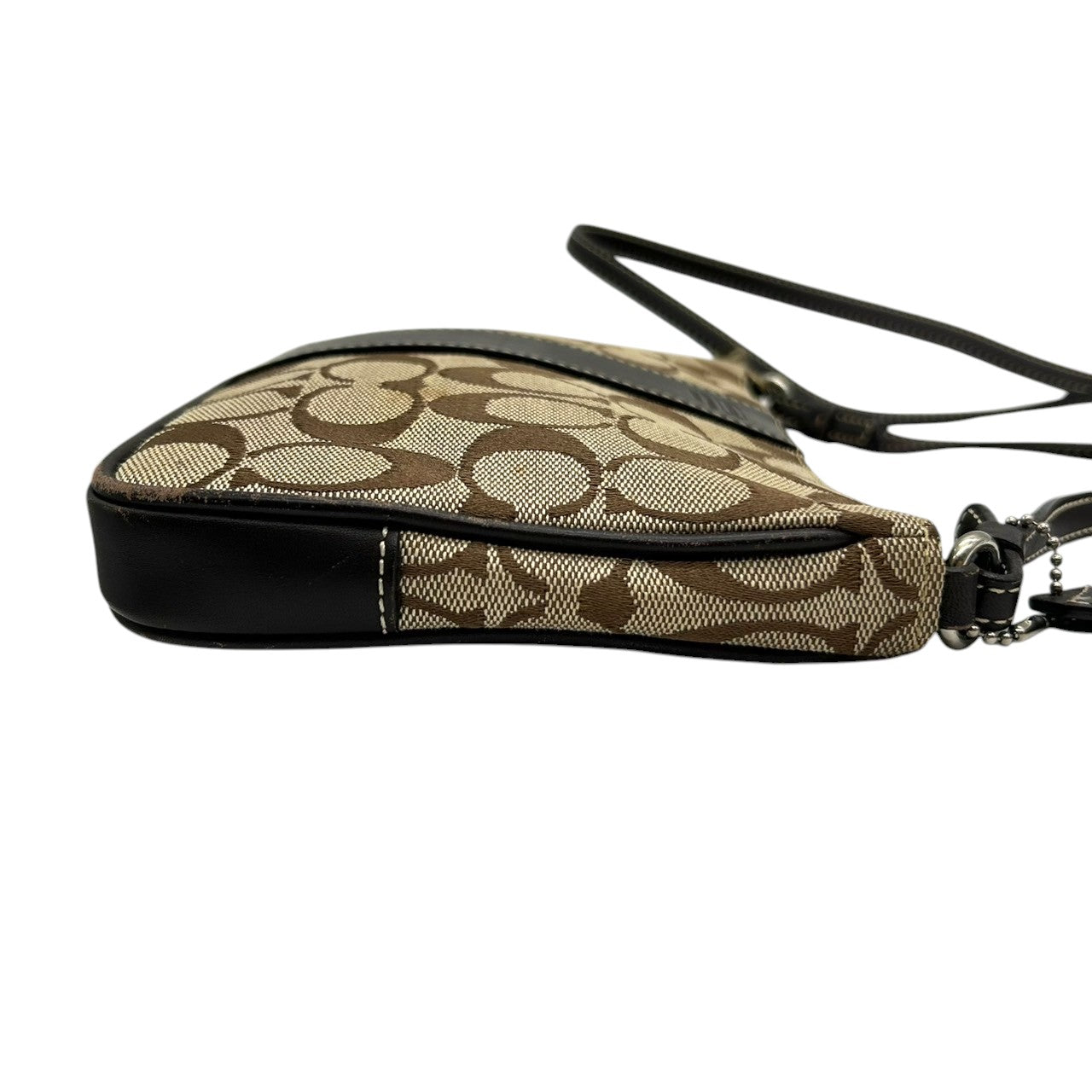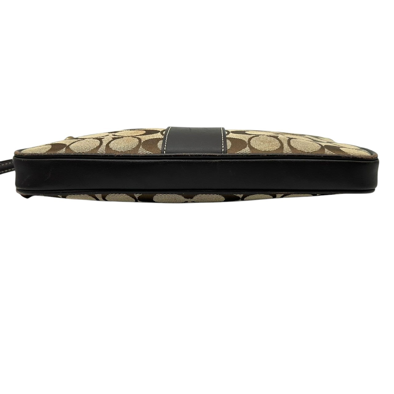 【COACH】コーチ ショルダーバッグ アクセサリーポーチ ポシェット 斜め掛け可 シグネチャー キャンバス レザー ブラウン ベージュ レディース コンパクト クラシックデザイン 人気モデル C6J-6338 フラワーチャーム付き クリーニング済み E8