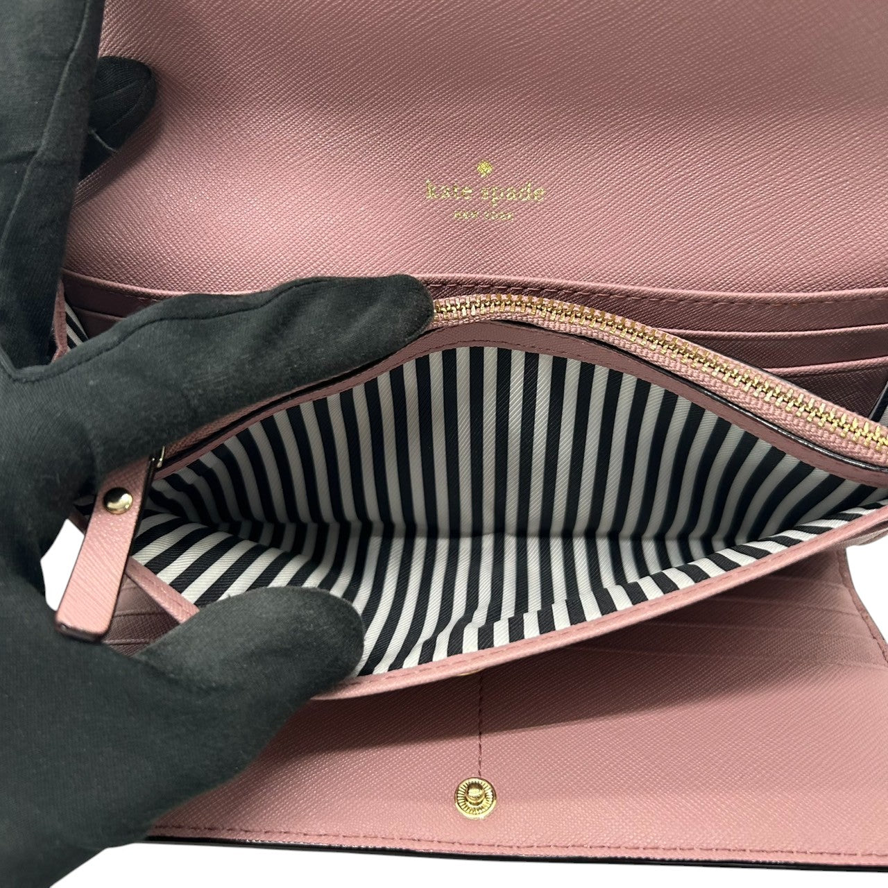 【美品/箱付き】Kate spade ケイトスペード 長財布 ウォレット 二つ折り フラップ PVC サフィアーノレザー ピンク シルバーロゴ レディース エレガント フェミニン かわいい 大容量 カード収納 人気モデル クリーニング済み W2