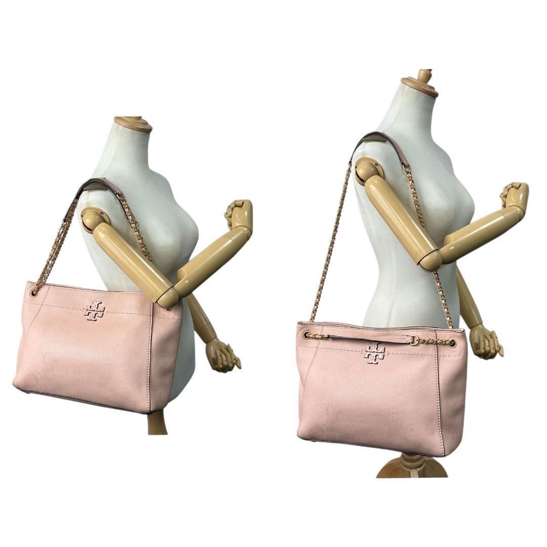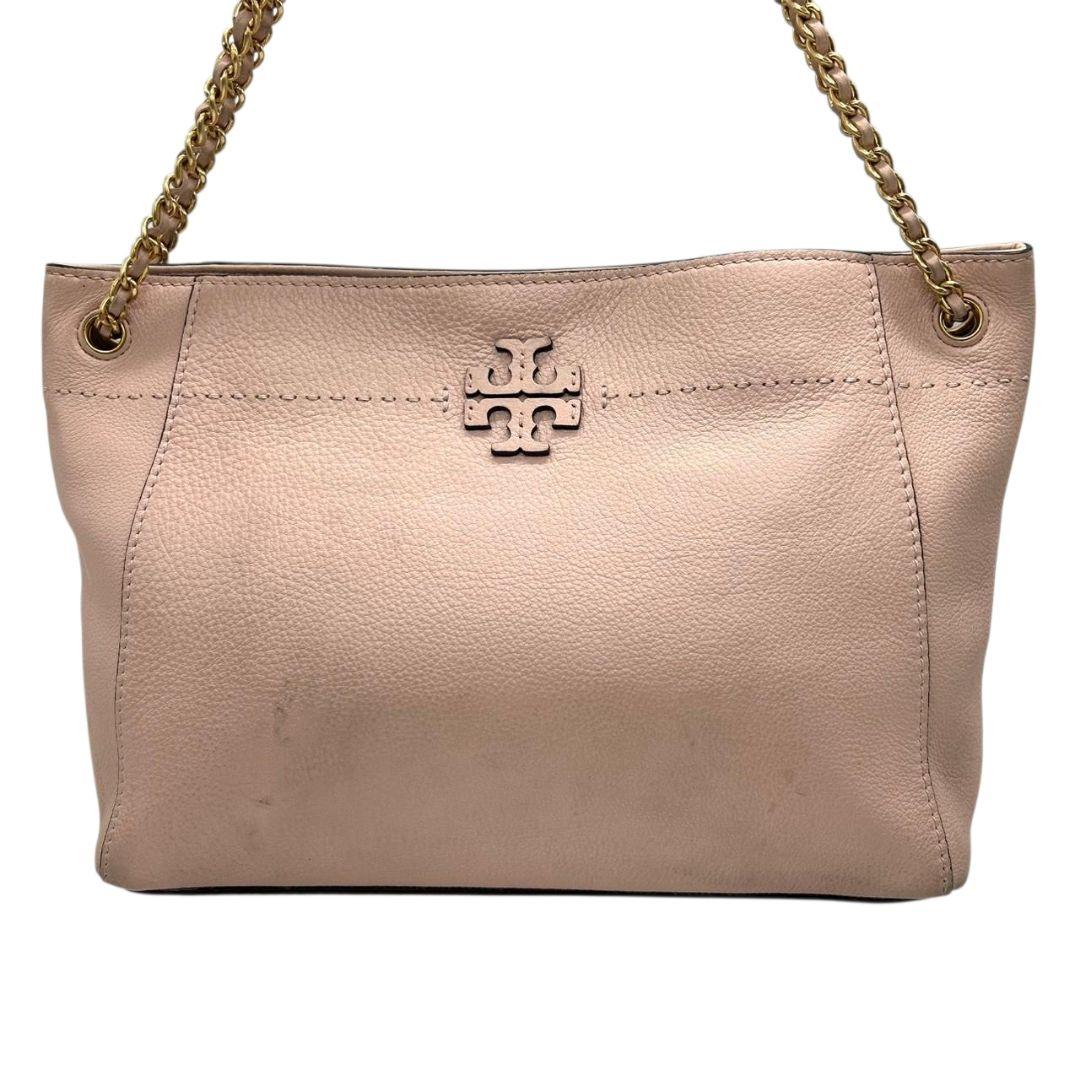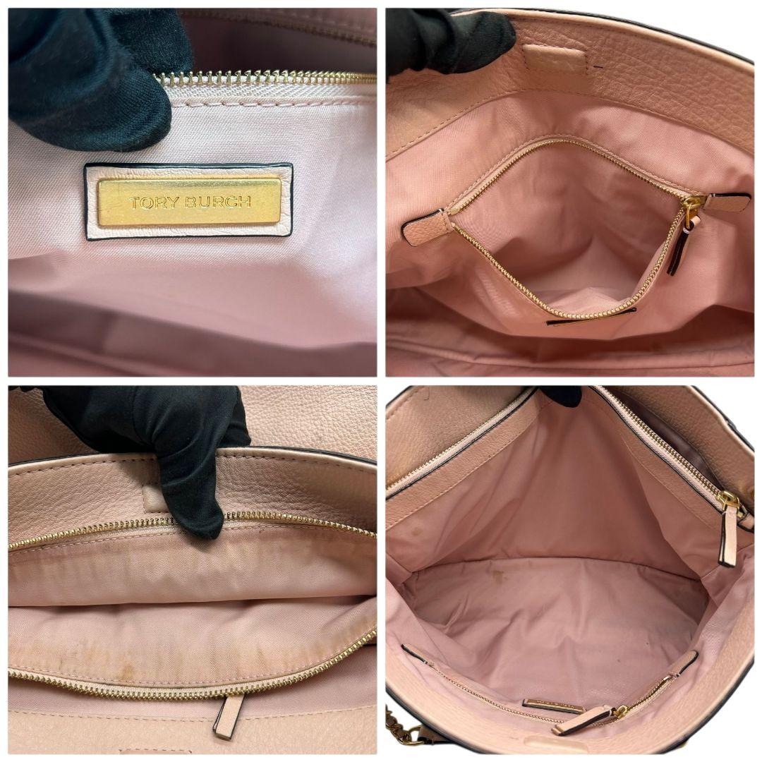 トリーバーチ デカロゴ 2way レザー トートバッグ ピンク 自立可 斜め掛け可 ワンショルダー ハンドバッグ ショルダーバッグ ゴールド金具 本革