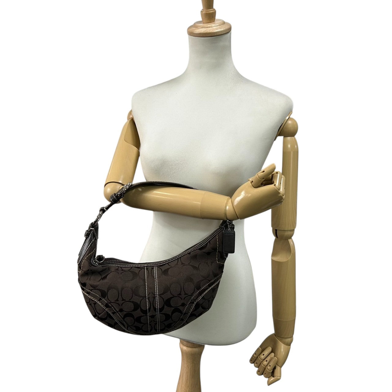 【美品】コーチ COACH ハンドバッグ 10073 シグネチャー ワンショルダーバッグ 肩掛け レディース キャンバス レザー ブラウン ダークブラウン ホワイトステッチ シグネチャー Y2K 00s vintage s2