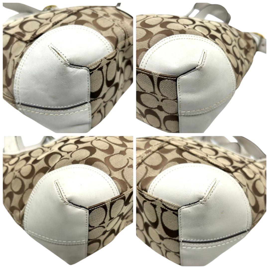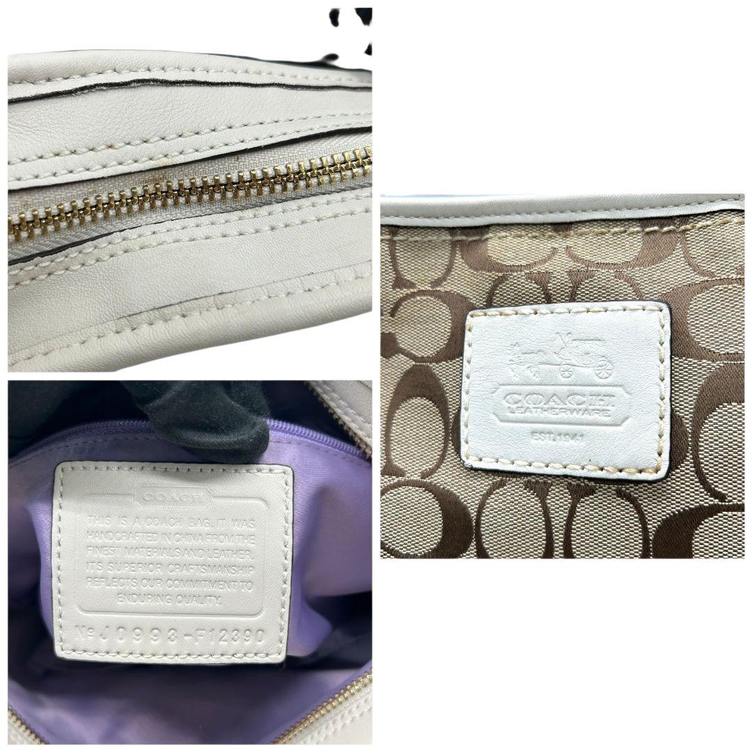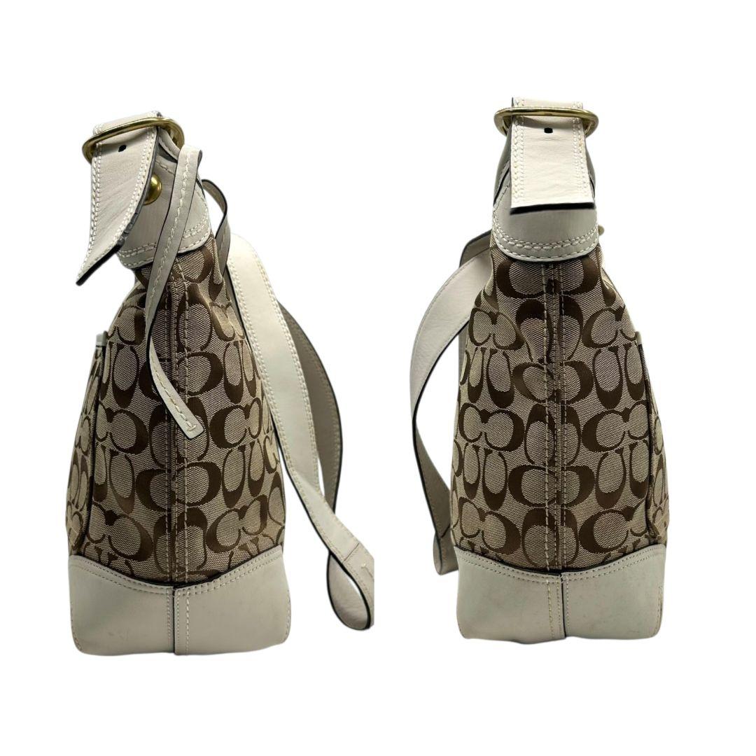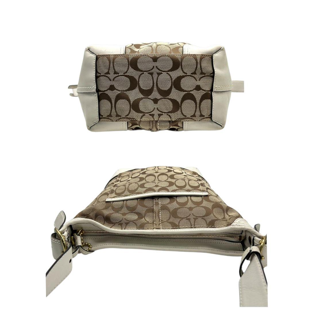 コーチ ショルダーバッグ 茶 白 シグネチャー ホーボー ワンショル s96 12390 自立可 斜め掛け可 ブラウン ホワイト ゴールド金具 ロゴプレート レザー 本革 COACH