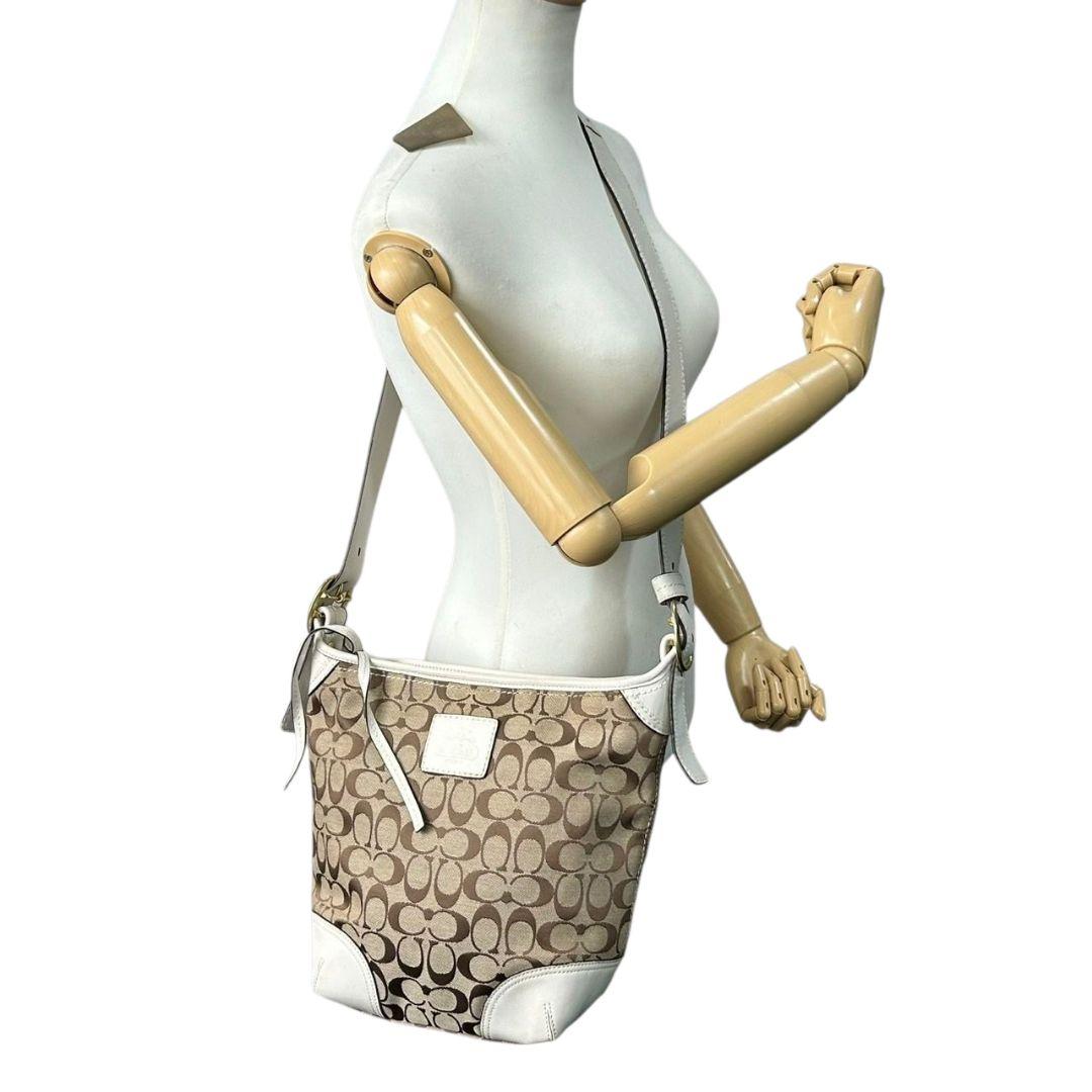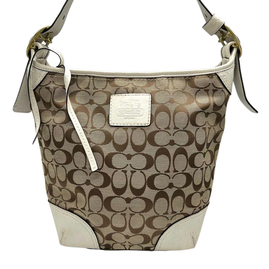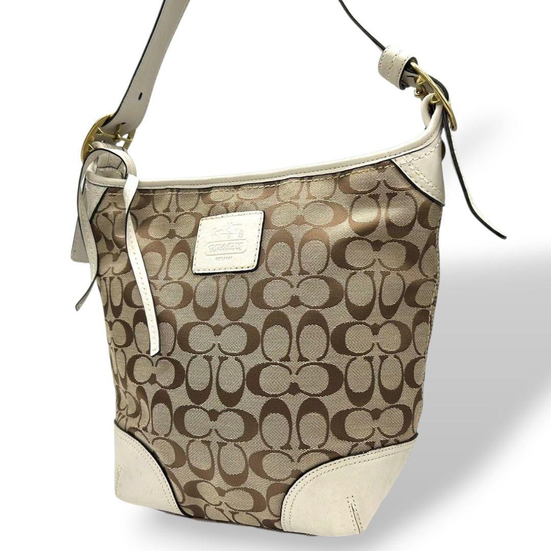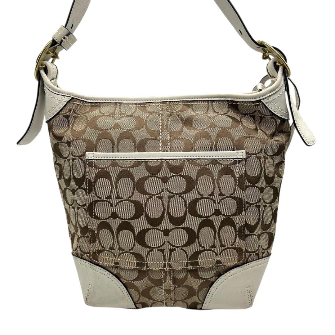 コーチ ショルダーバッグ 茶 白 シグネチャー ホーボー ワンショル s96 12390 自立可 斜め掛け可 ブラウン ホワイト ゴールド金具 ロゴプレート レザー 本革 COACH