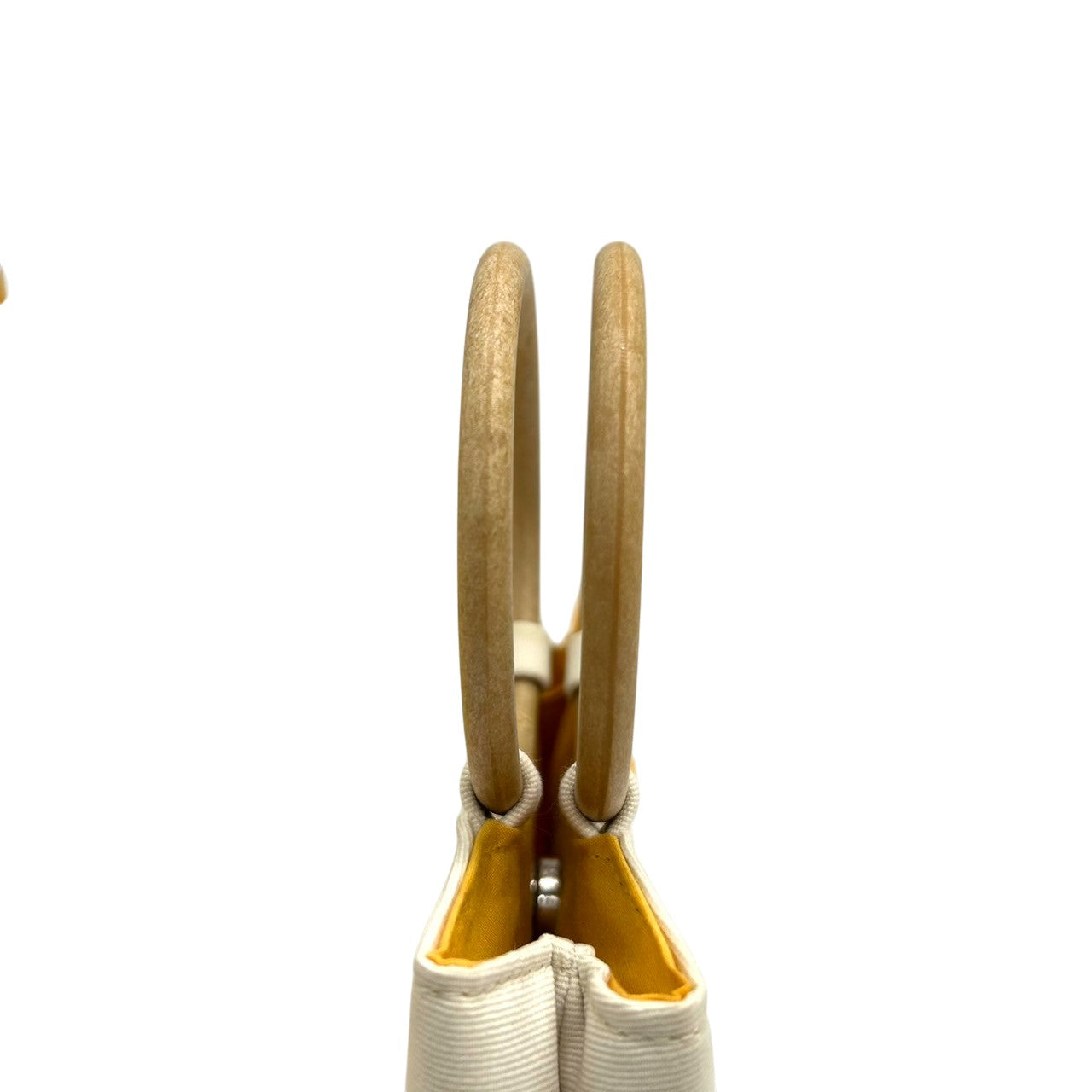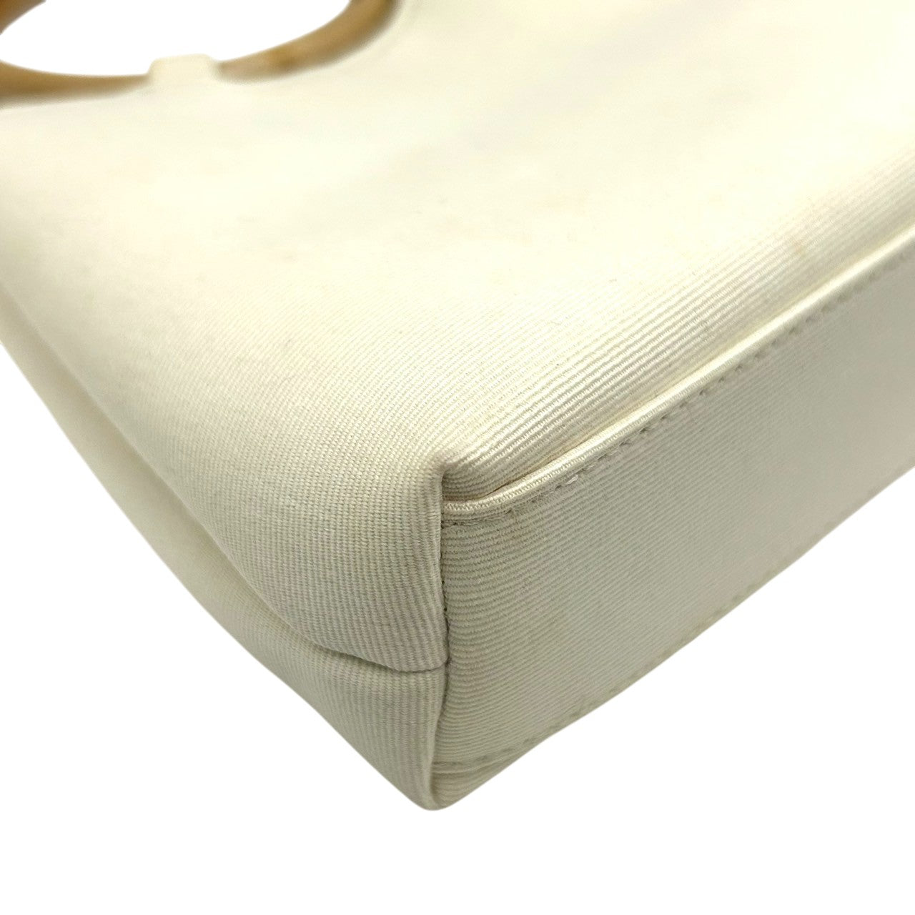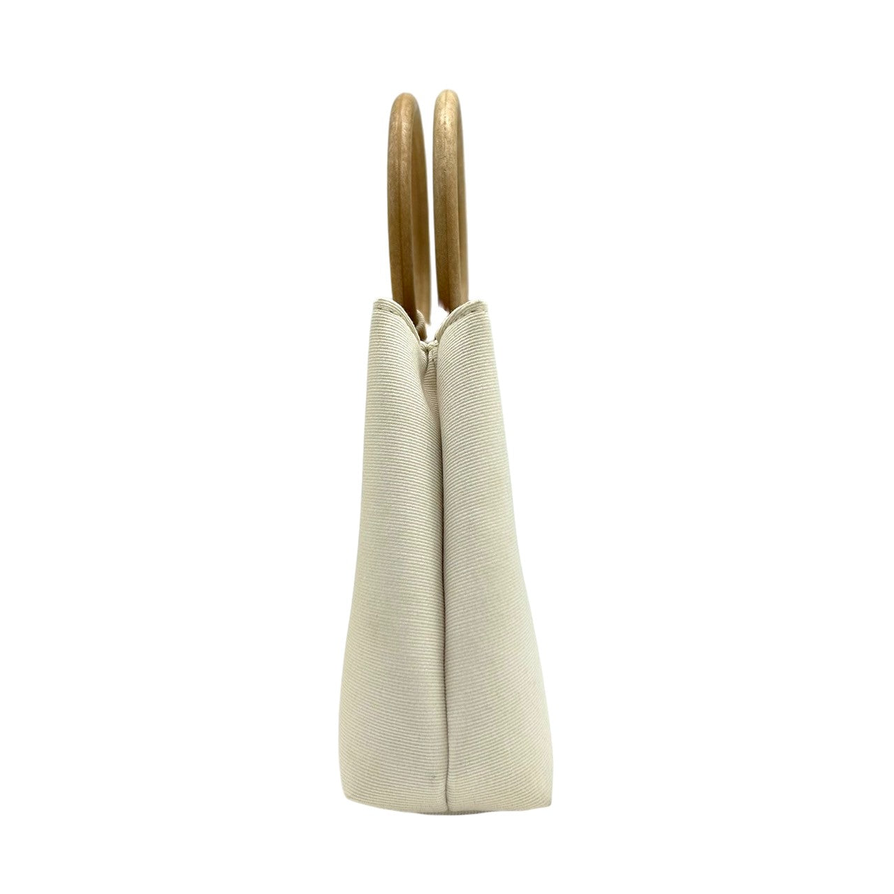 【美品/箱付き】ニナリッチ NINA RICCI ハンドバッグ ミニバッグ キャンバス ウッドハンドル リングハンドル ホワイト 白 リボンモチーフ レディース エレガント フェミニン パーティ コンパクト 自立可 クリーニング済み H