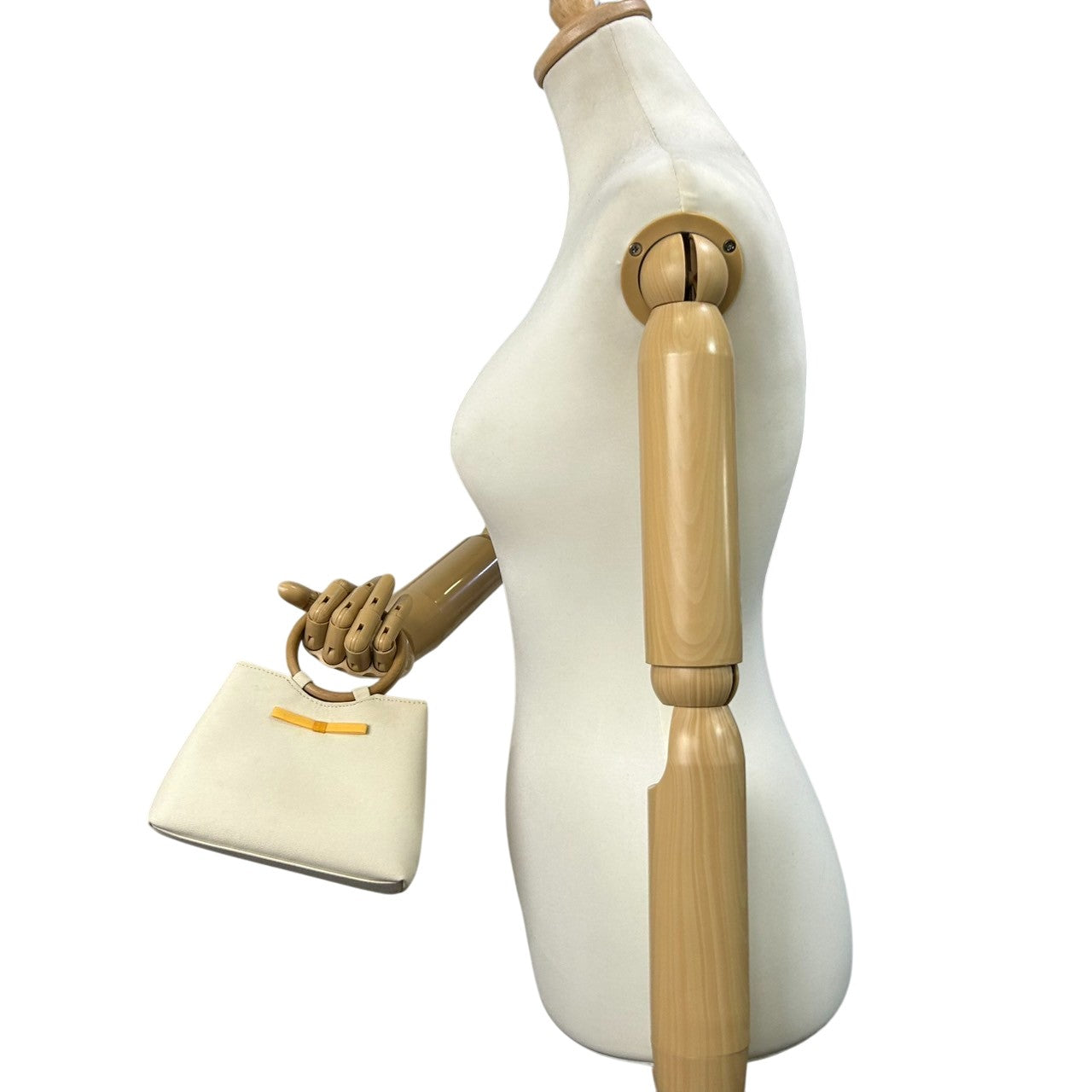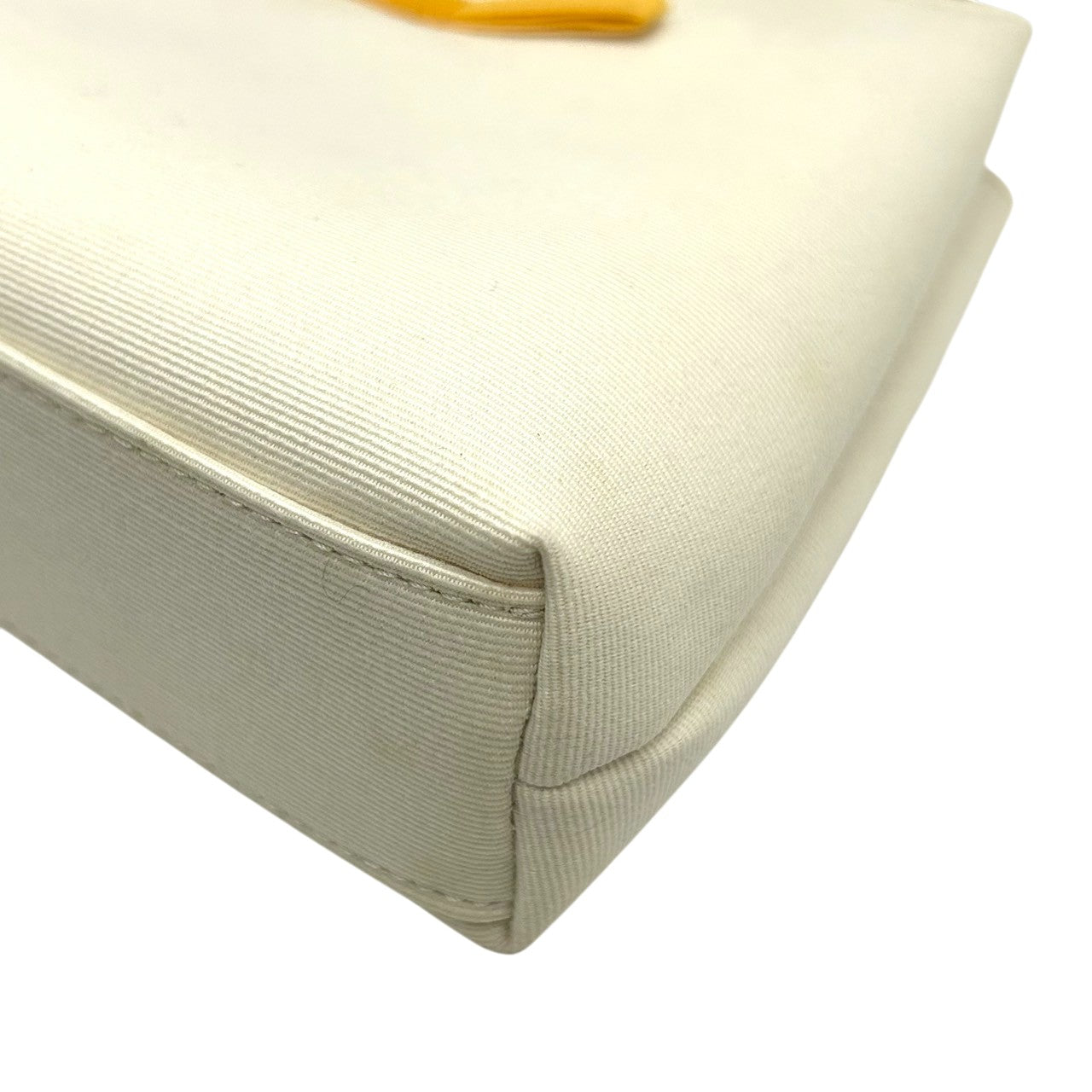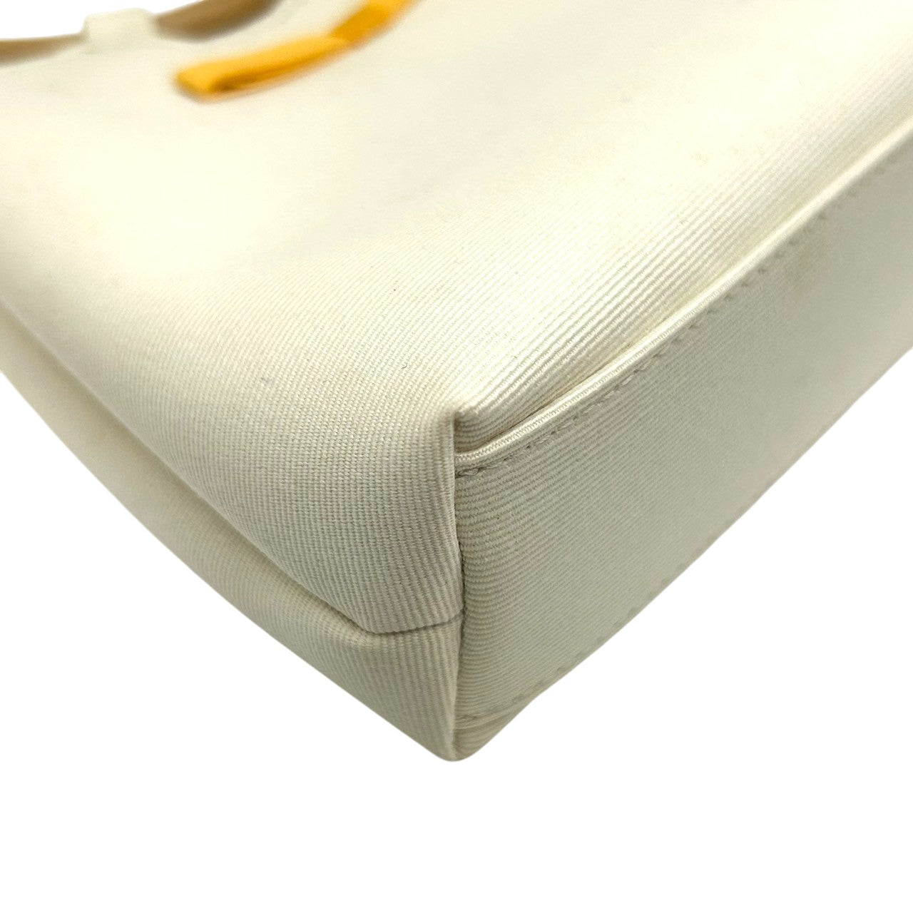 【美品/箱付き】ニナリッチ NINA RICCI ハンドバッグ ミニバッグ キャンバス ウッドハンドル リングハンドル ホワイト 白 リボンモチーフ レディース エレガント フェミニン パーティ コンパクト 自立可 クリーニング済み H