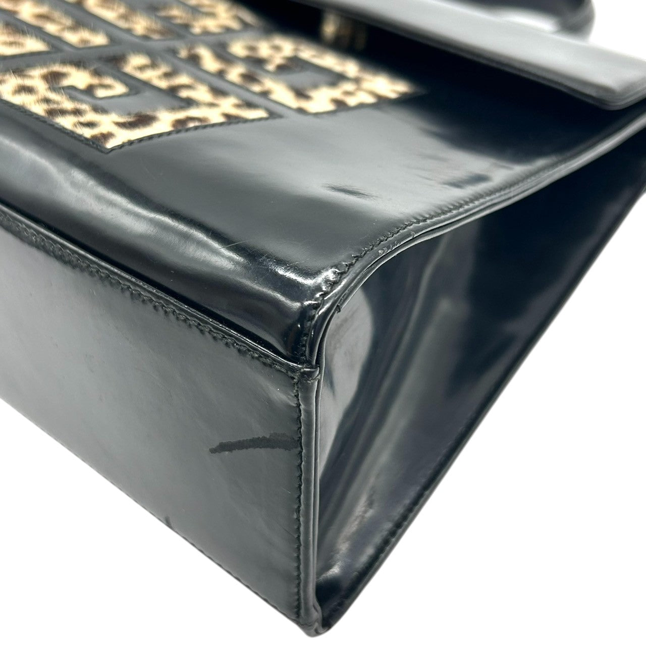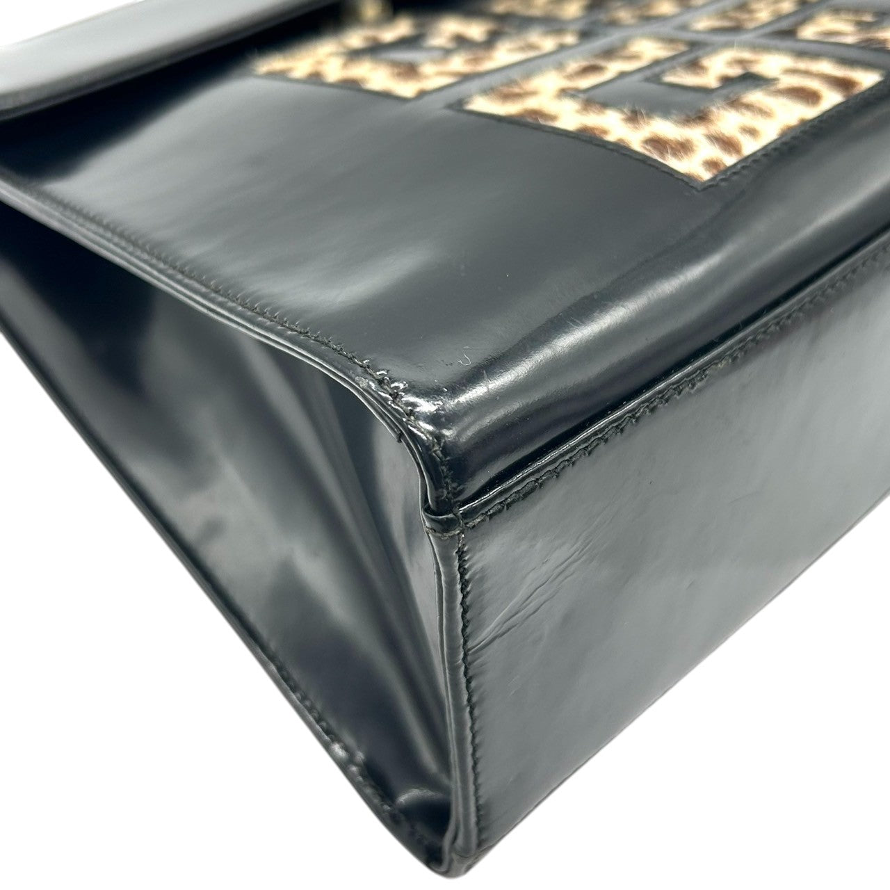 ジバンシー ジバンシィ GIVENCHY ハンドバッグ ヴィンテージ 4Gロゴ レオパード ハラコ レザー 本革 ブラック 黒 ゴールド金具 レディース フォーマル パーティバッグ クラシック エレガント 自立可 クリーニング済み s48