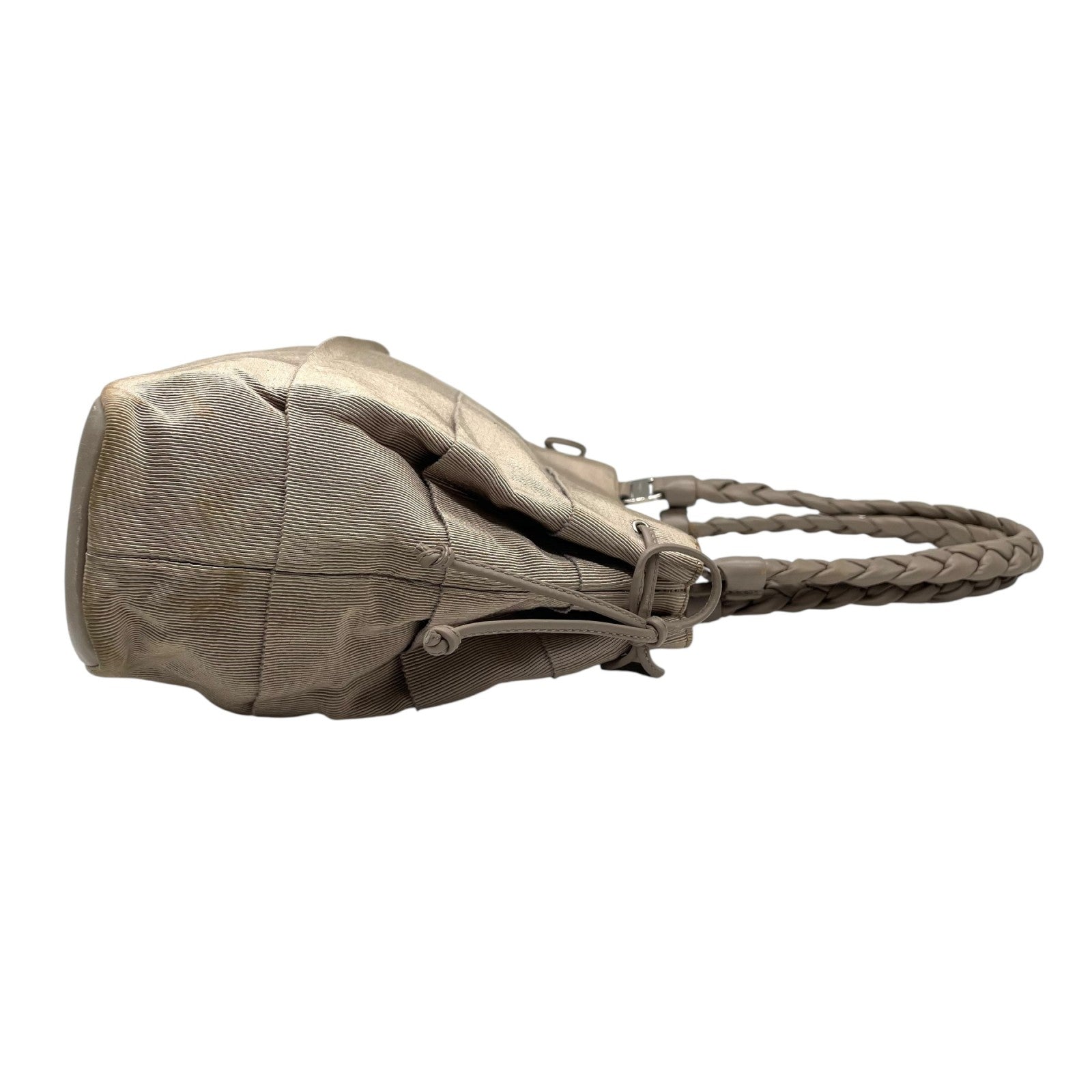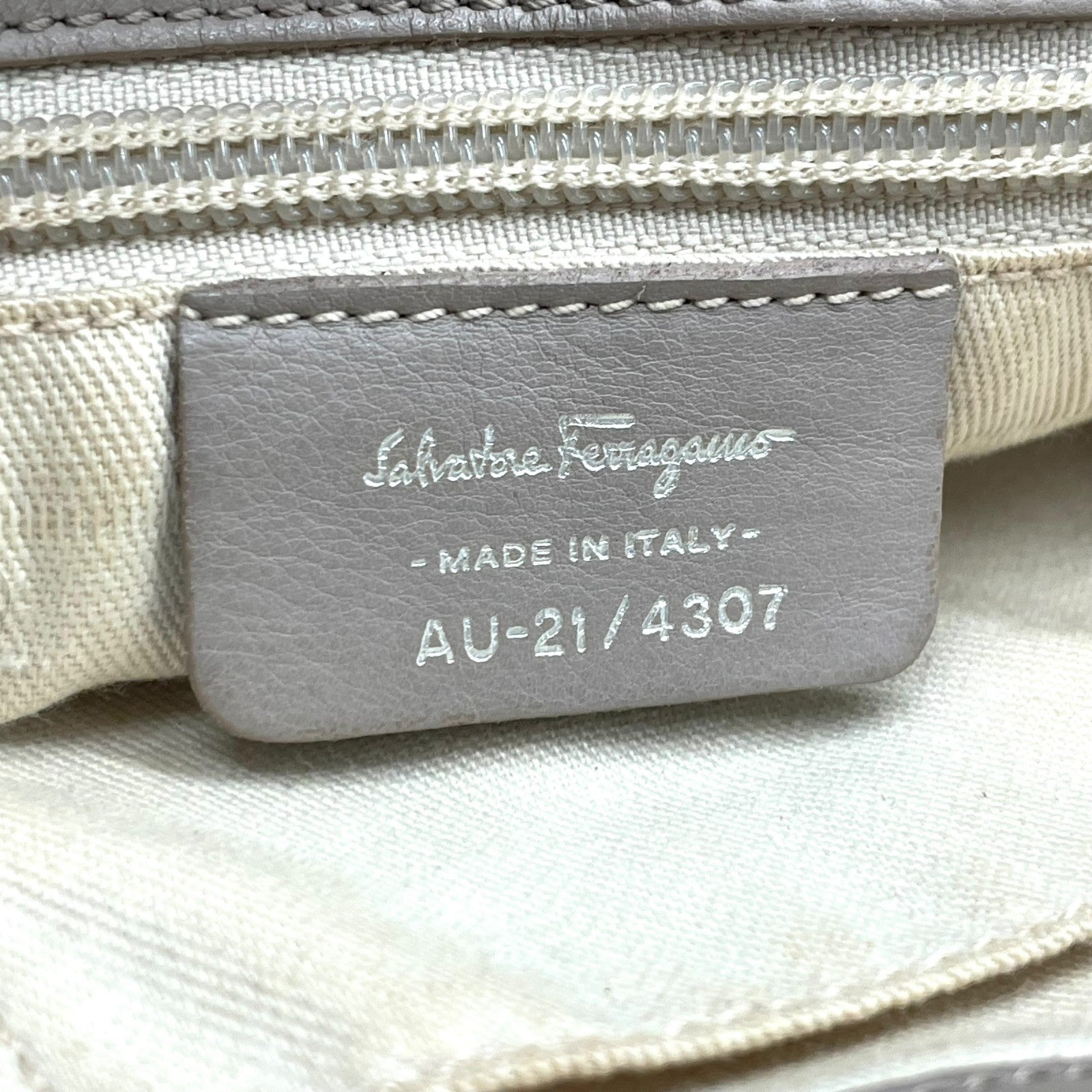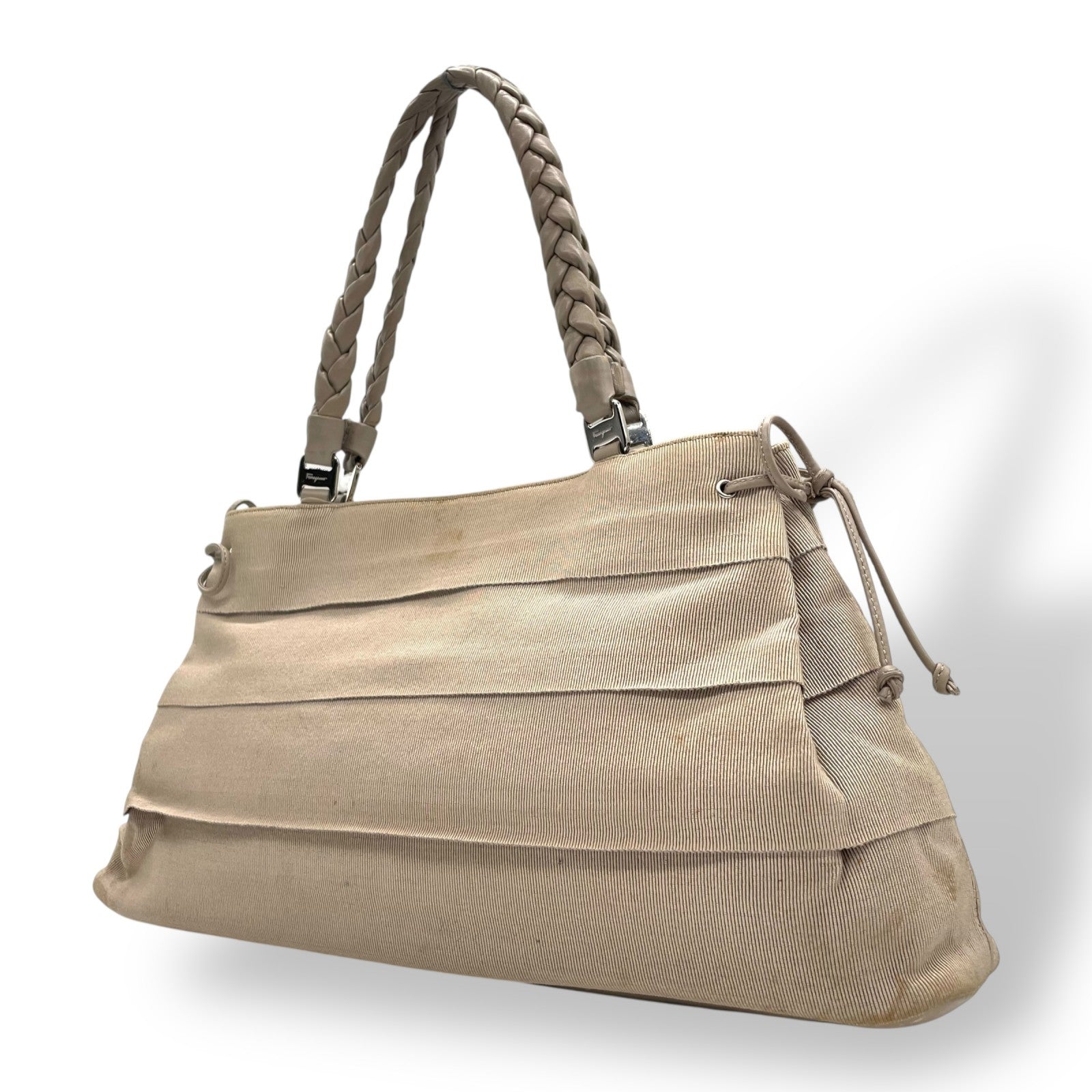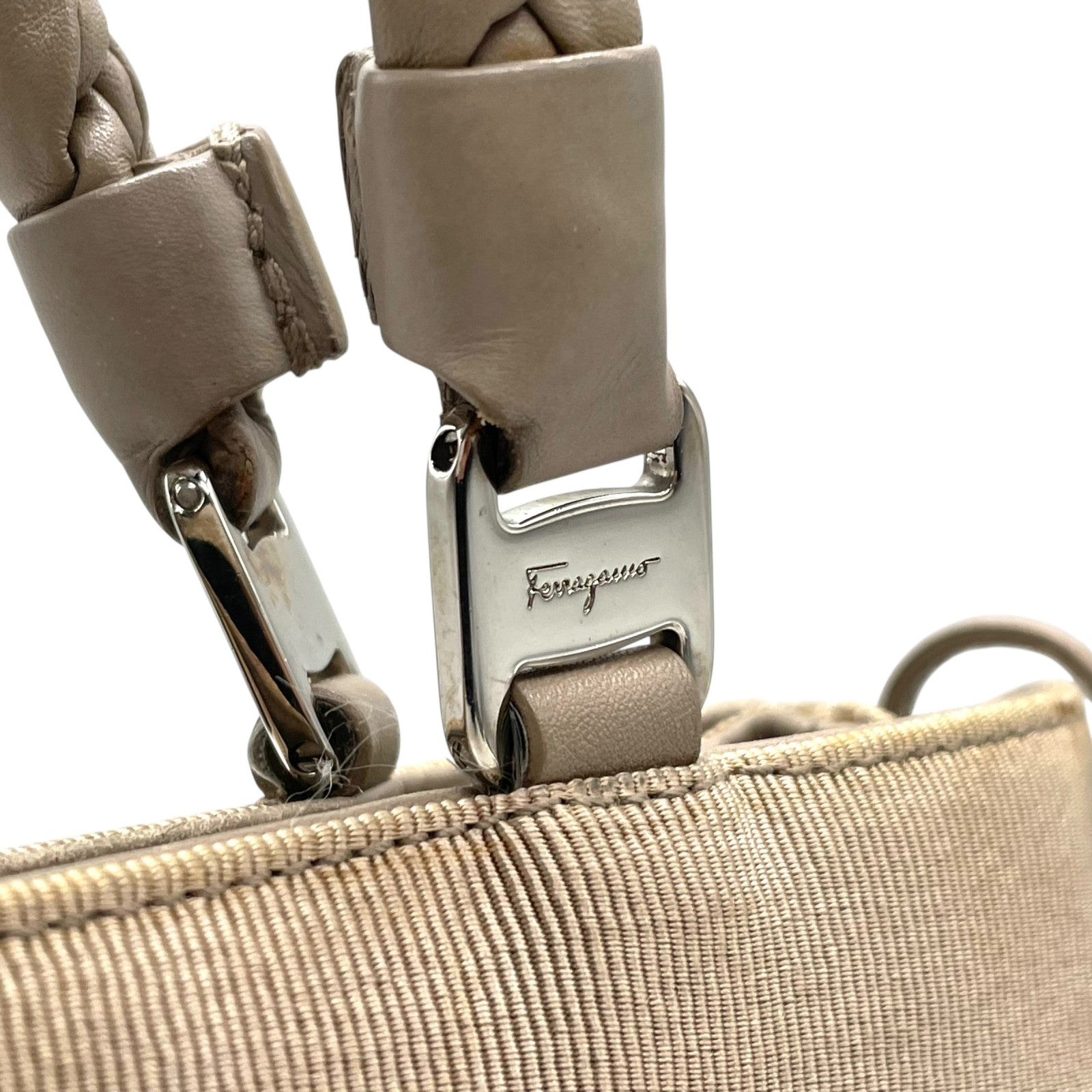サルヴァトーレフェラガモ ハンドバッグ 編み込みレザーハンドル グレー キャンバス トートバッグ 肩掛け可能 K2