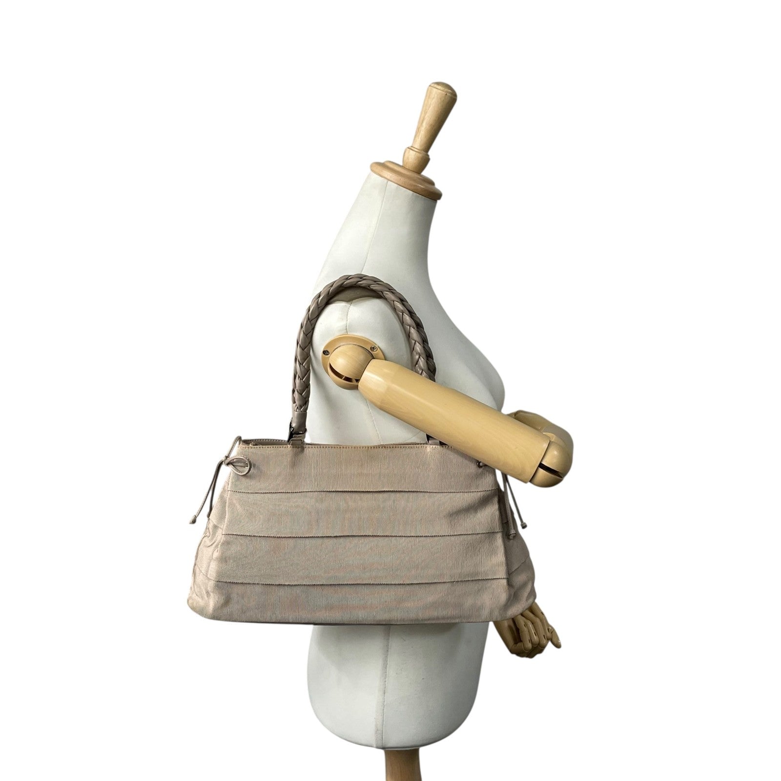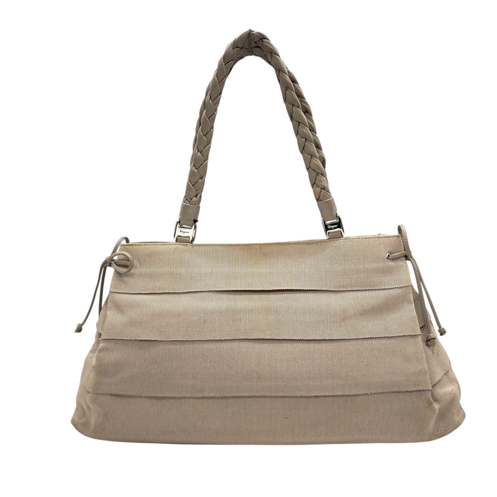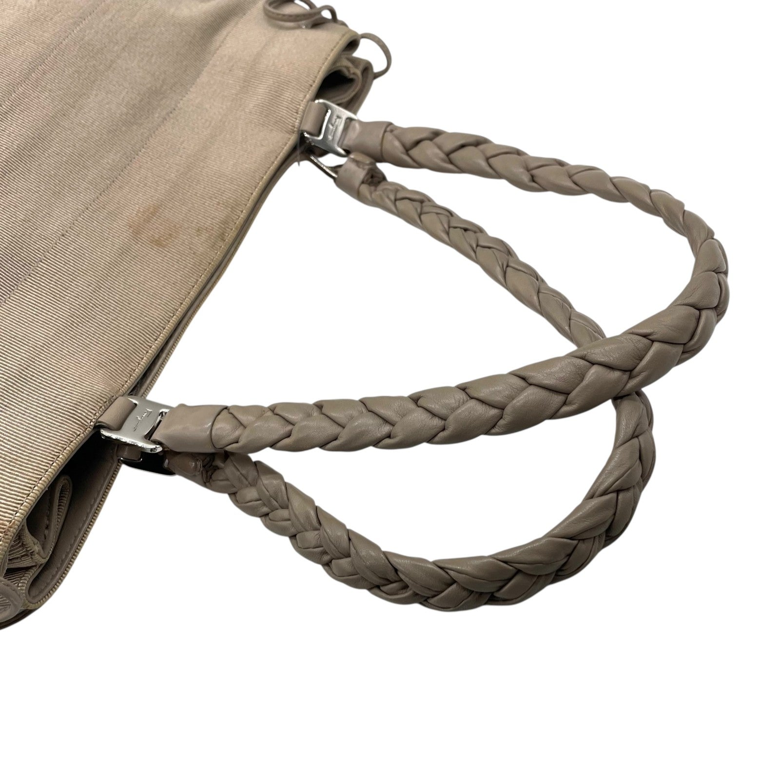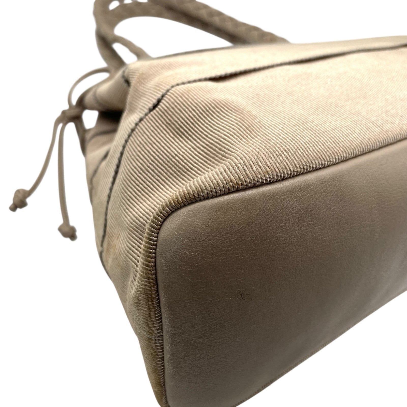 サルヴァトーレフェラガモ ハンドバッグ 編み込みレザーハンドル グレー キャンバス トートバッグ 肩掛け可能 K2