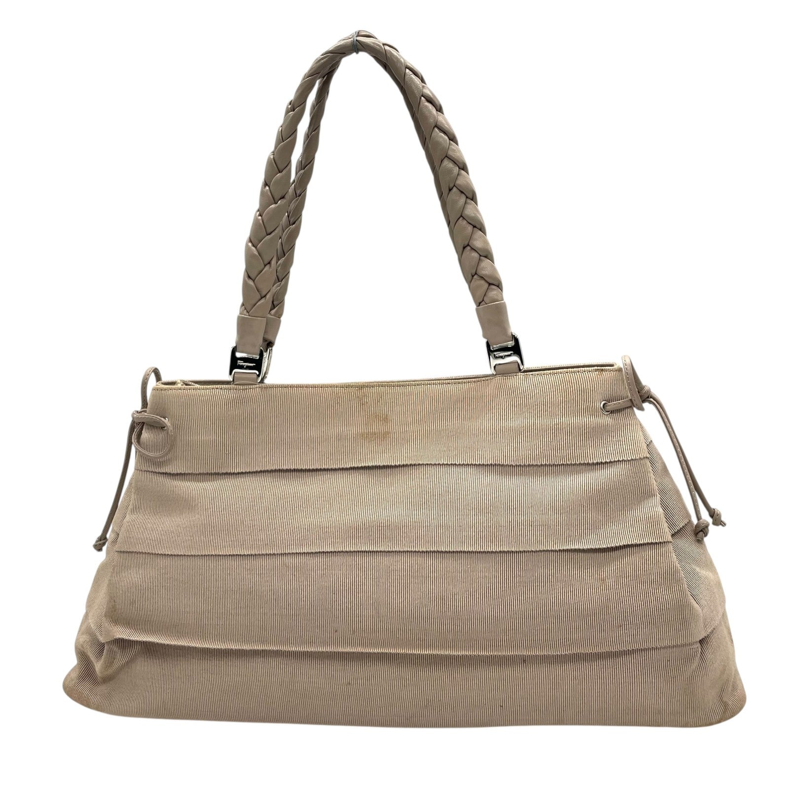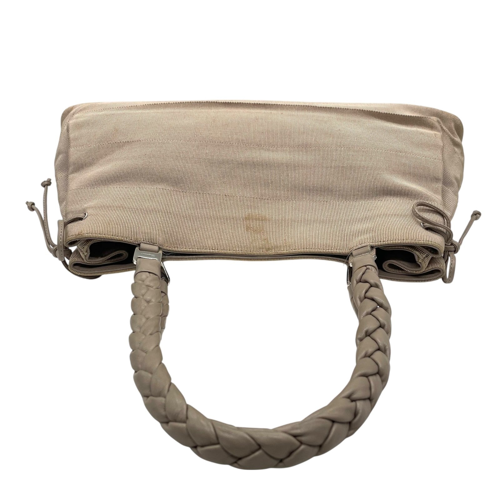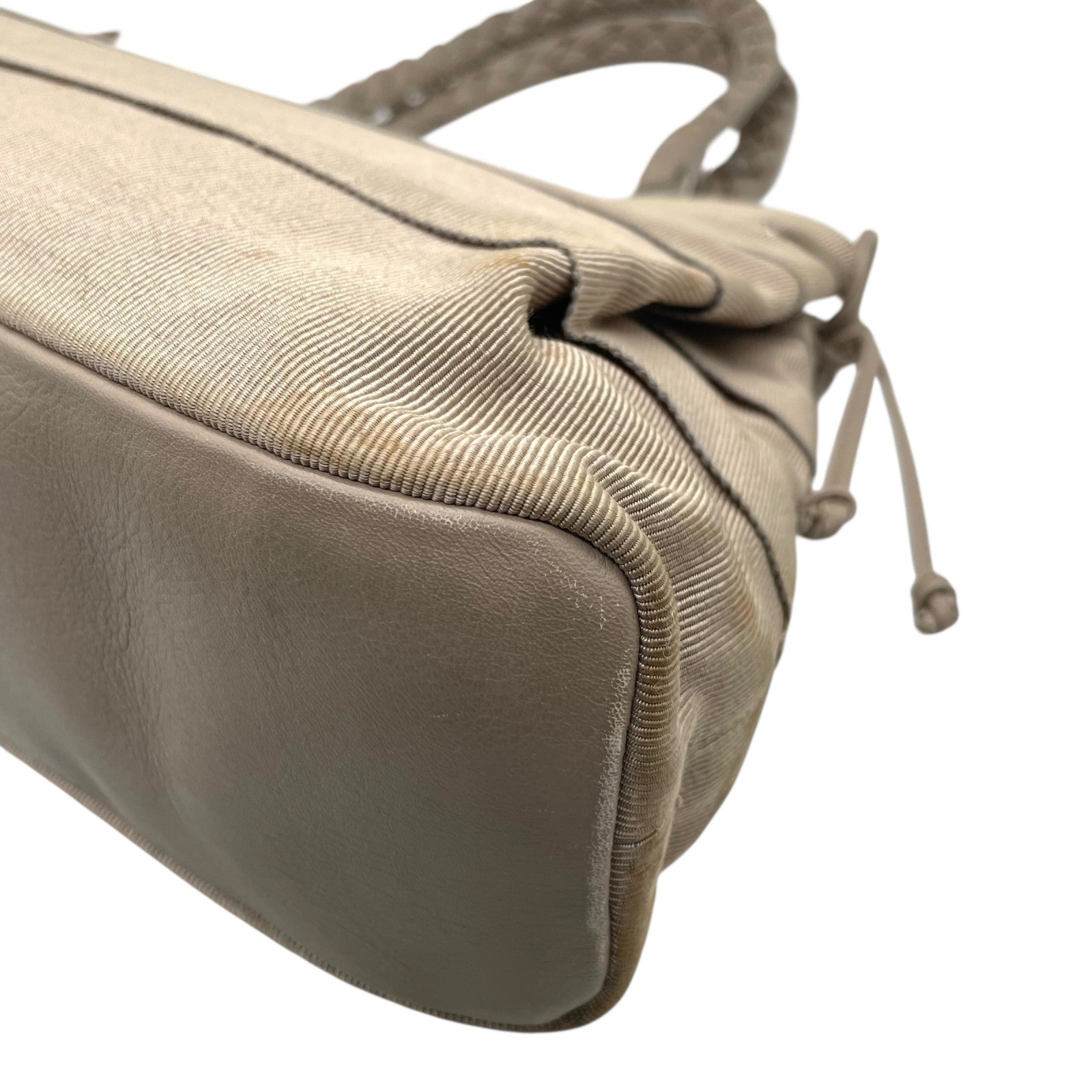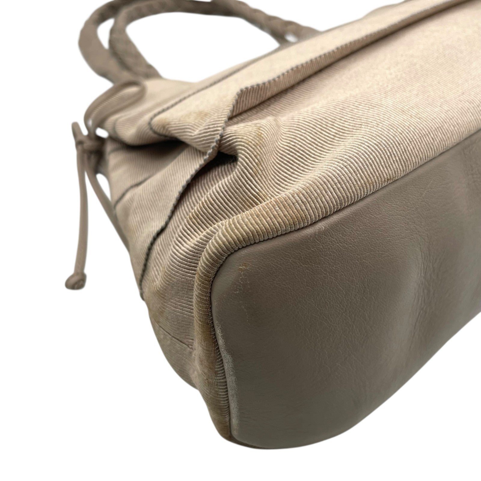 サルヴァトーレフェラガモ ハンドバッグ 編み込みレザーハンドル グレー キャンバス トートバッグ 肩掛け可能 K2
