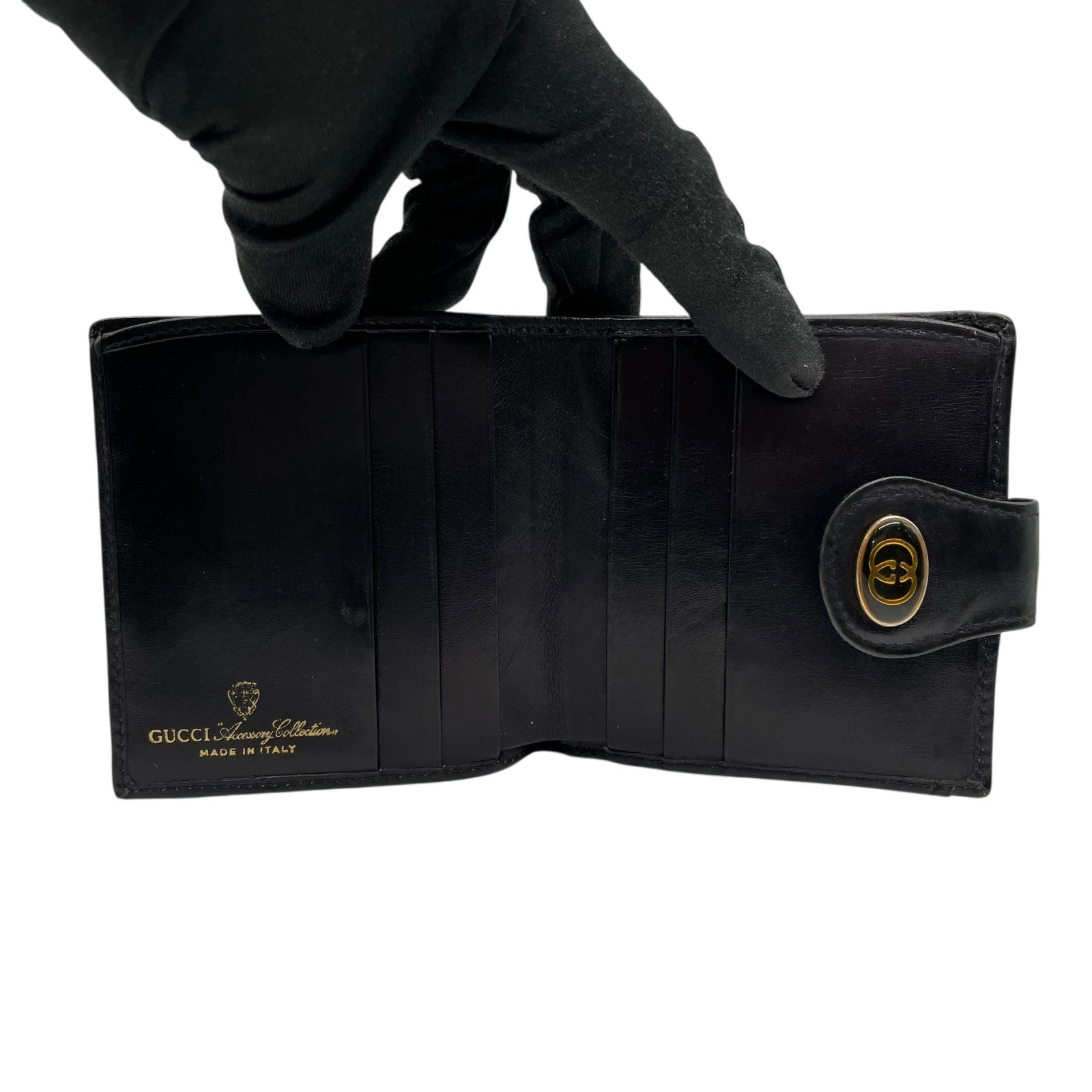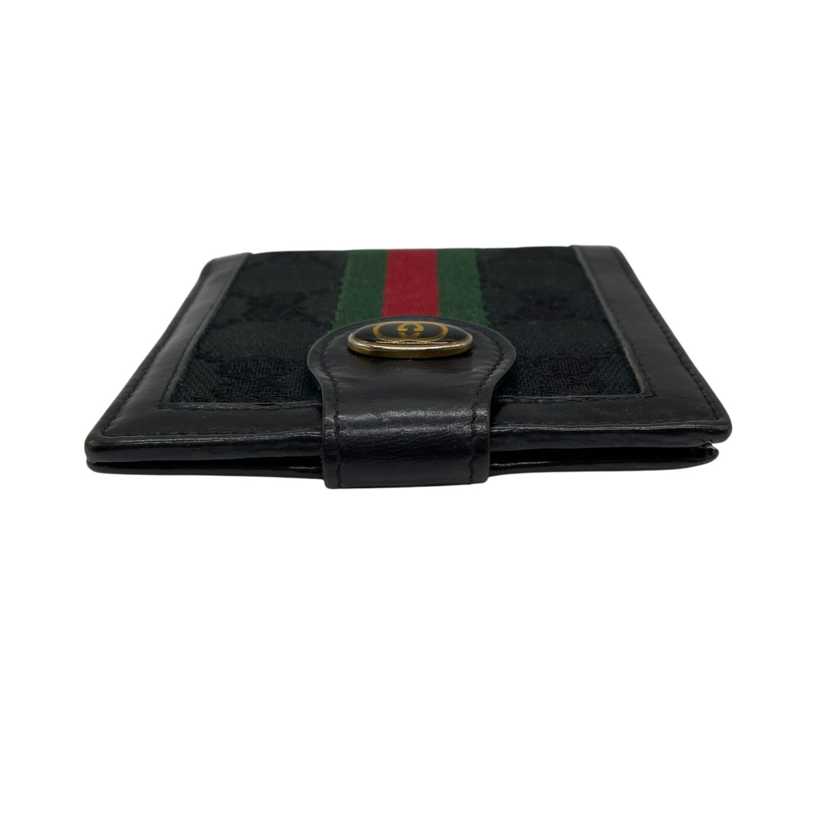 グッチ GUCCI シェリーライン 二つ折り財布 GGキャンバス レザー 黒 ブラック ゴールド金具 ヴィンテージ W4